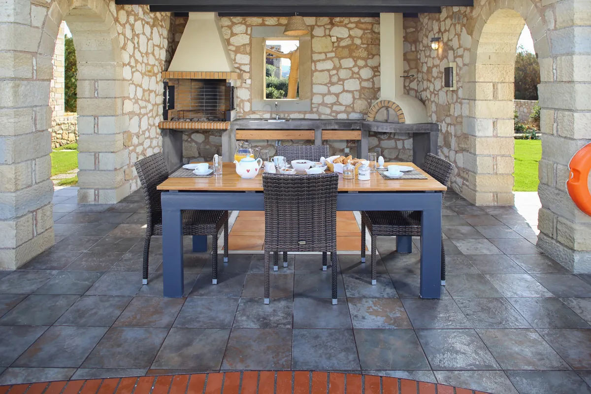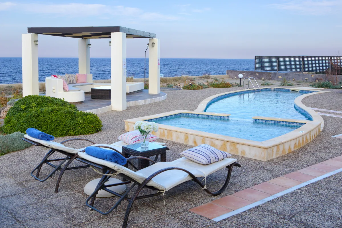 Dieses traditionelle Ferienhaus verfügt über einen phänomenalen Unterhaltungsbereich im Freien mit einem Swimmingpool, einem überdachten Sitzbereich, Sonnenliegen und einer Außenküche, einem Grill und einem Essbereich. Das umweltfreundliche Design des Ferienhauses fügt sich perfekt in die lokale Umgebung ein. Dank seiner Lage direkt am Meer ist die Aussicht atemberaubend, was das Ferienhaus Aquamarine zur perfekten Wahl für einen einmaligen Kurzurlaub macht.