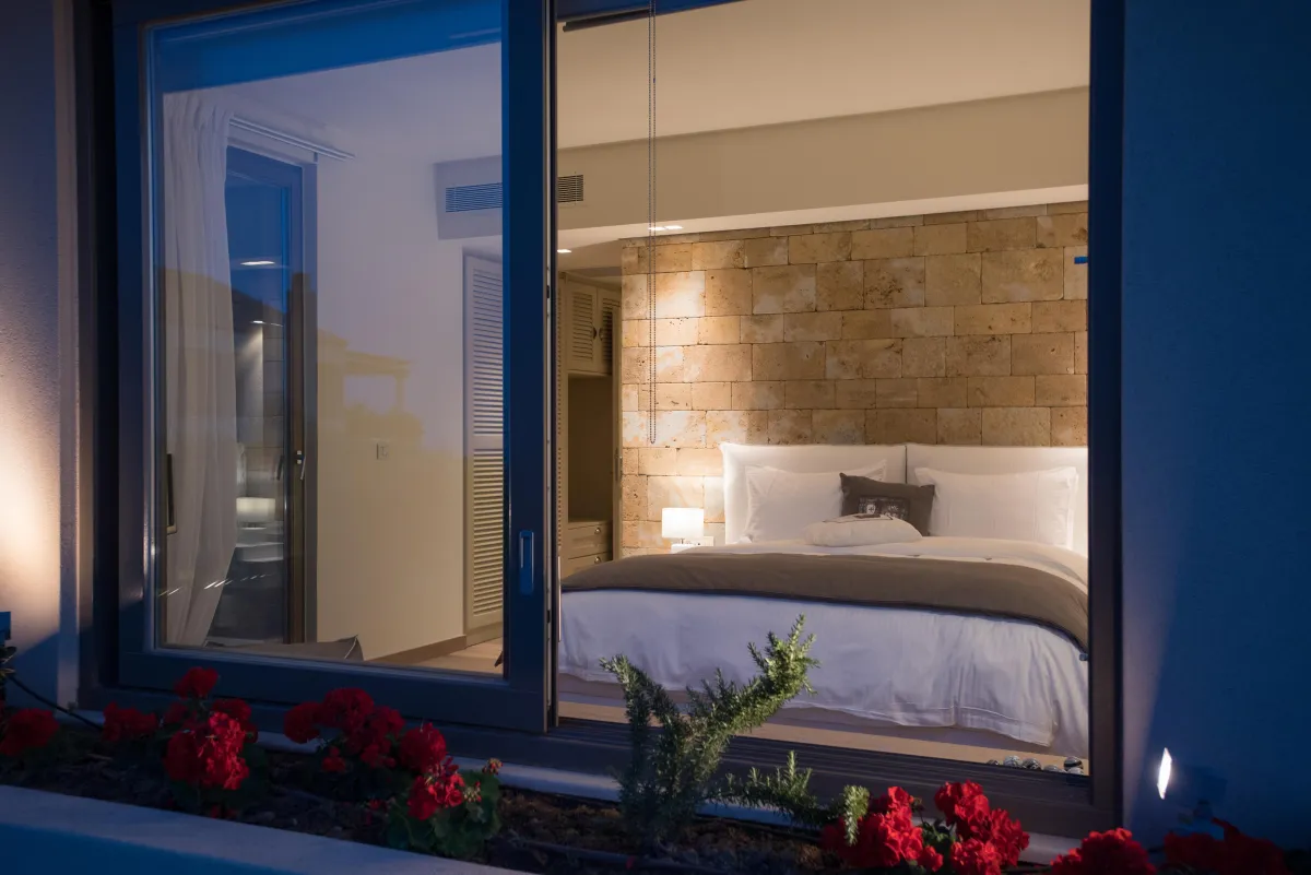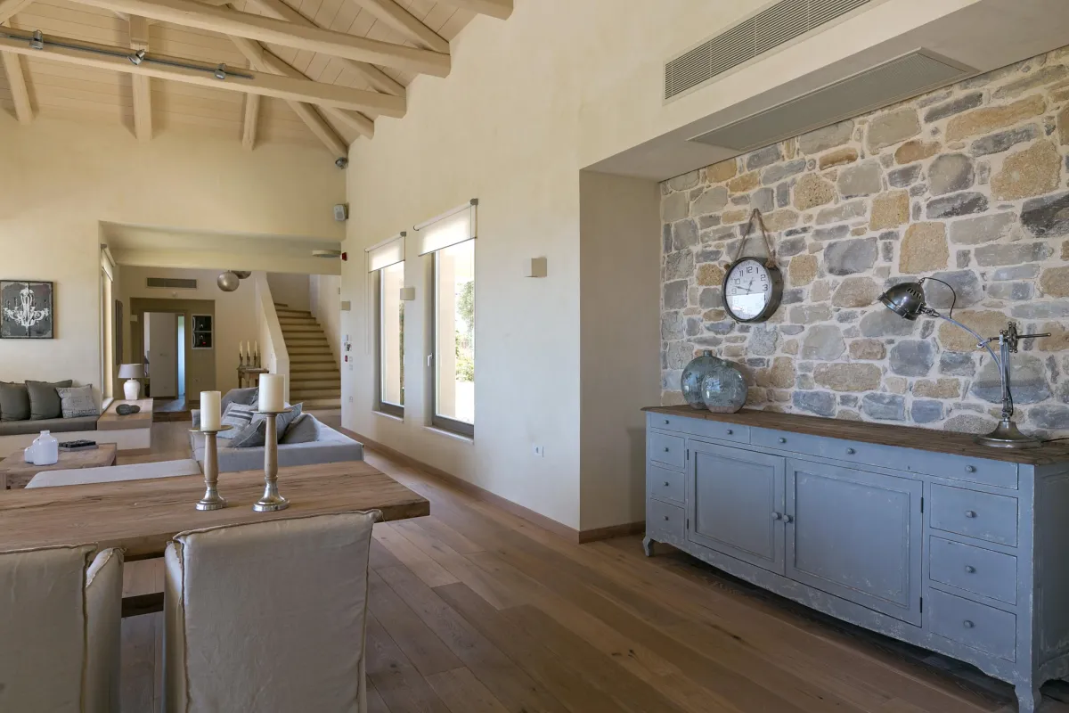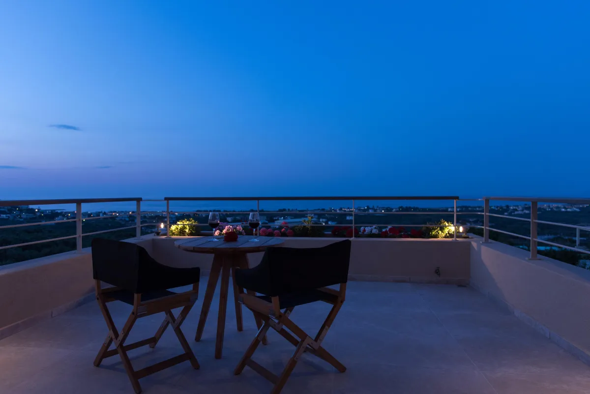 Faszinierende Ausblicke und Sonnenuntergänge werden Sie dazu bringen, Ihre Zeit hauptsächlich auf der privaten Sonnenterrasse oder unter der überdachten Pergola-Terrasse zu verbringen, wo Sie neben dem unendlichen Pool sommerliche Drinks genießen können. In einer Reihe gemütlicher Ecken zum Entspannen fühlen Sie sich jedoch auch in der Villa auf höchstem Niveau, wie der Weinkeller mit einer exklusiven kretischen Weinsammlung.