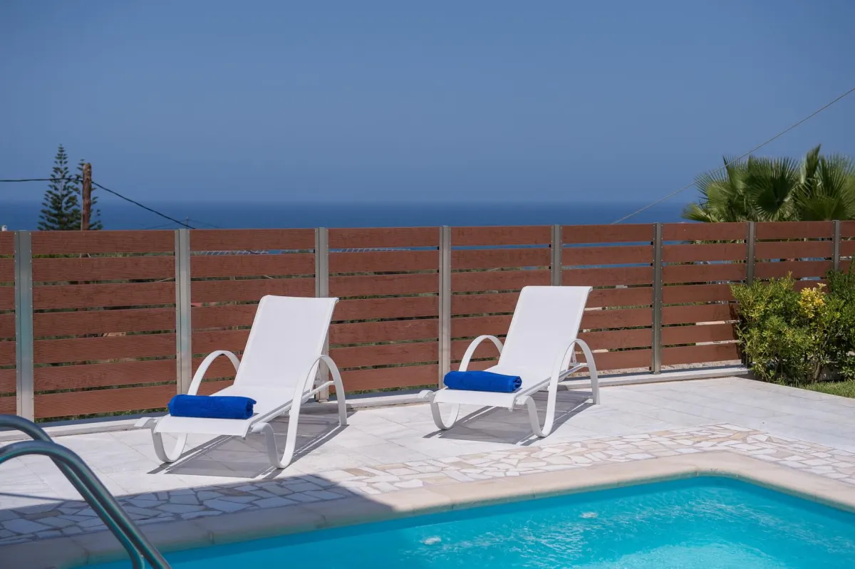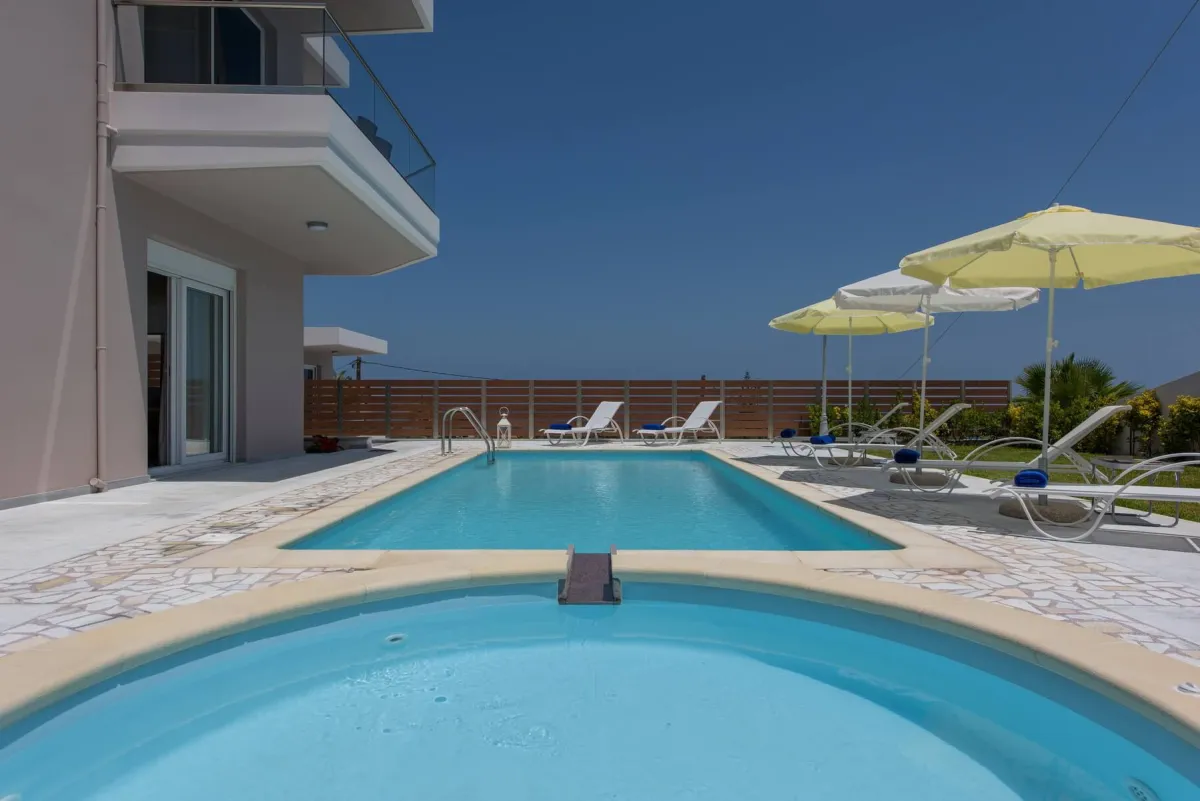 Gelegen über der weitläufigen Küste von Stalos, nahe der malerischen Stadt Chania, kombiniert die Villa Rosemary einen Luxusurlaub mit Familienkonzept. Sie gehört zu dem „Koukos Villen Komplex“ und befindet sich in einem ruhigen Gebiet, umgeben von Olivenbäumen und nur 5 Minuten zu Fuß von dem organisierten Sandstrand mit dem klaren blauen Wasser von Stalos. Die zweistöckige Villa kann in ihren 2 komfortablen Schlafzimmern bis zu 7 Gäste beherbergen. Ein moderner offener Wohnraum mit einem Kamin, ein Essbereich, eine vollausgestattete Küche und ein drittes Badezimmer mit einem Hot Tub versprechen Eleganz und Luxus in einem. Der Außenbereich hält einen Essbereich mit BBQ und einen Esstisch mit 8 Stühlen und einem 3-sitzer parat, die sich um einen Privatpool mit Liegestühlen gruppieren, wo Sie sich entspannen, und die Kinder spielen können. Der Blick von den Balkonen reicht von der üppigen Umgebung bis zu dem endlosen Blau des Meeres von Kreta. Ein kostenloser Parkplatz steht zur Verfügung.