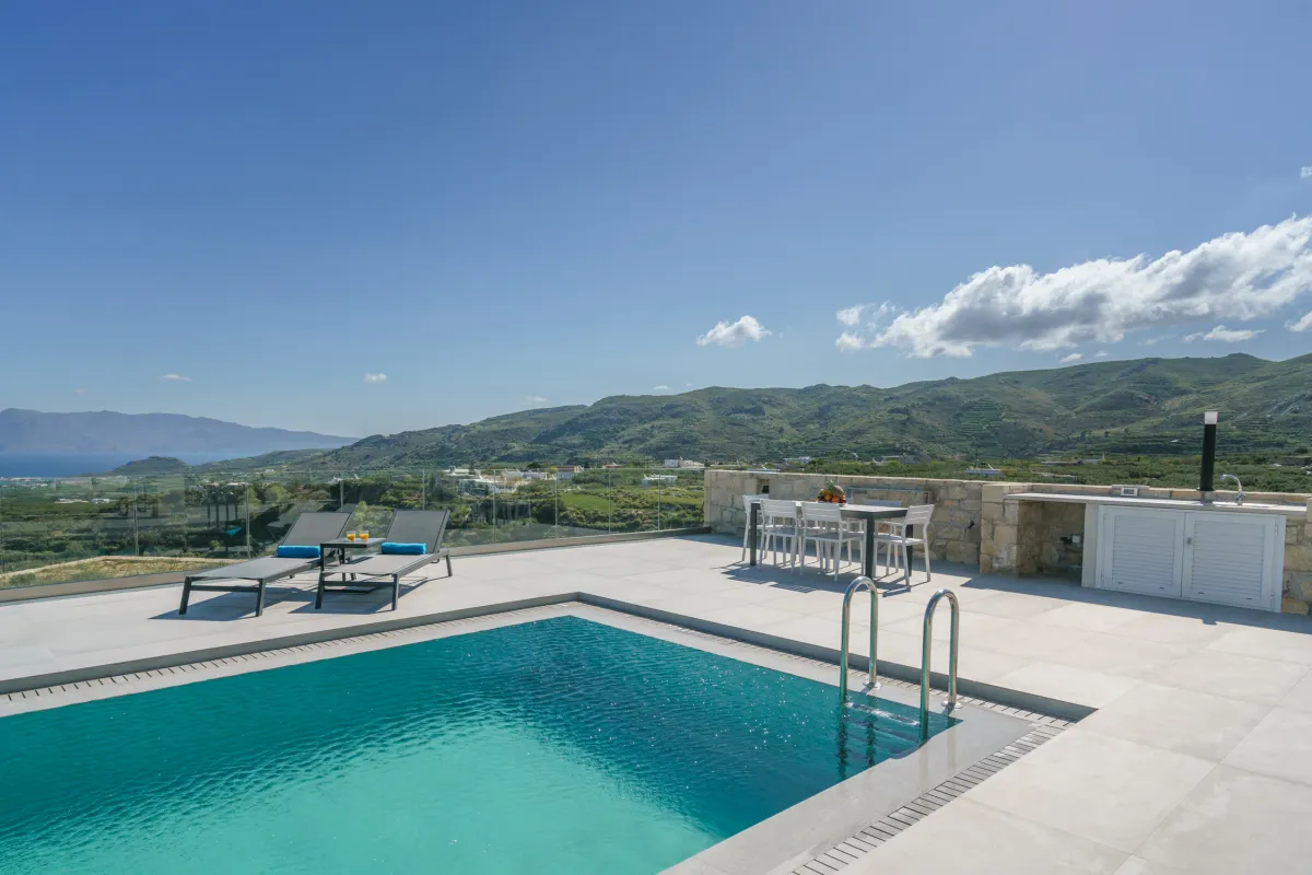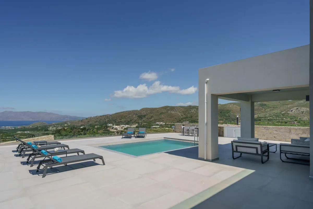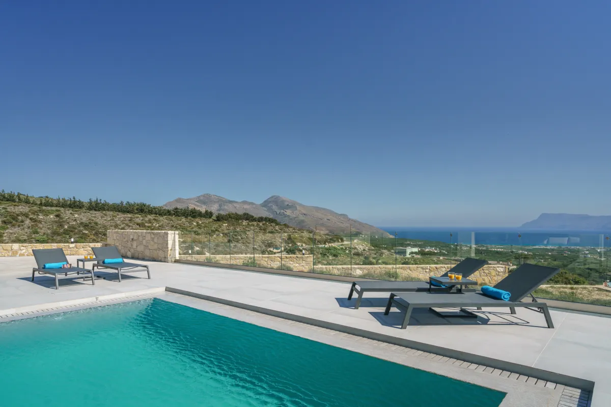 Diese griechische Luxusvilla befindet sich in der beliebten Ferienregion Chania, nahe Kissamos. Die Ferienunterkunft ist ideal für Familien und Freunde, um zu entspannen und die herrliche kretische Küste zu genießen.