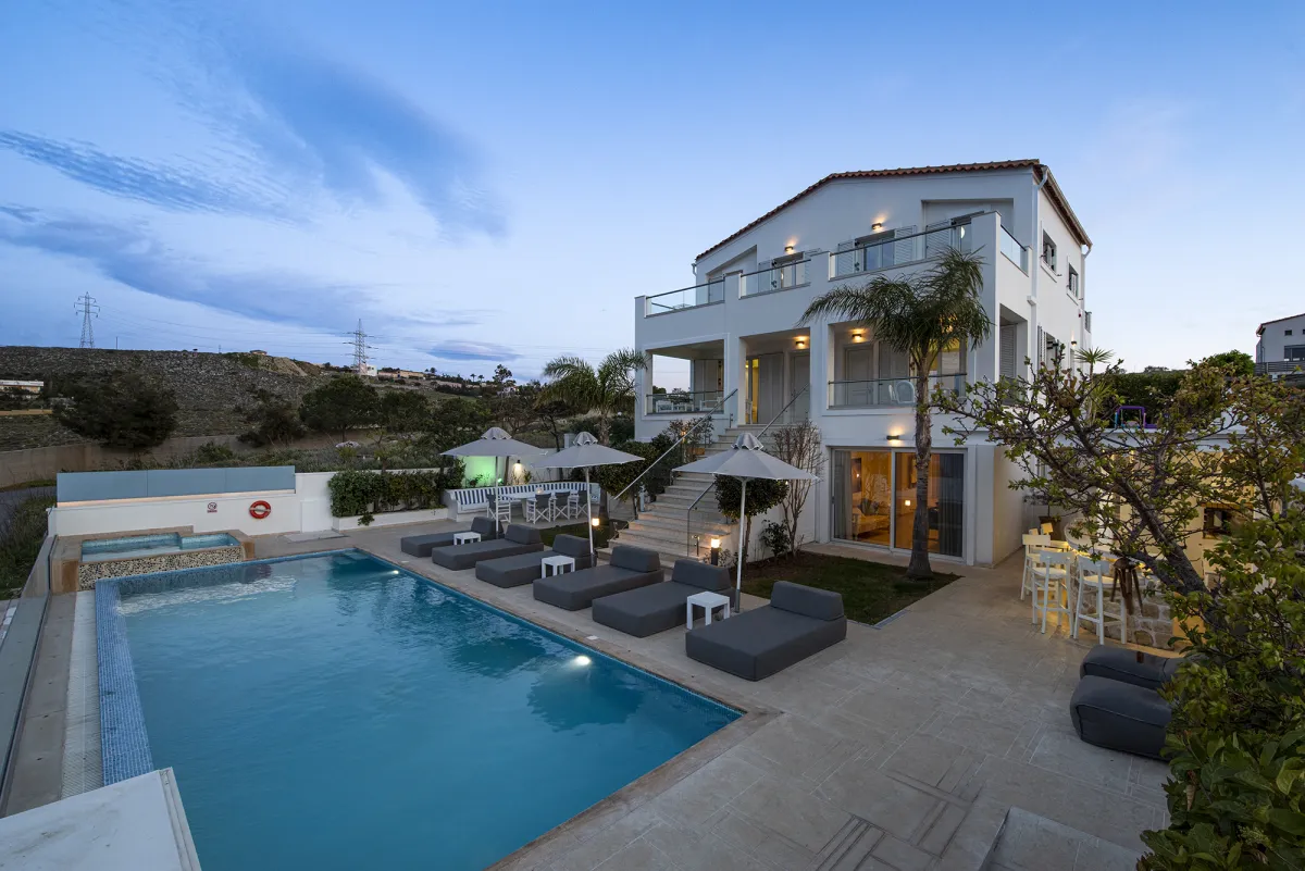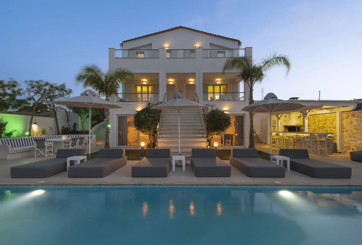 Villa Bella Elena bleibt unauslöschlich im Gedächtnis jedes Gastes, sobald er sich für einen Besuch entscheidet. Es verfügt über insgesamt 6 Schlafzimmer, 6 Badezimmer und einen Innenhof mit einem Kinderbecken und einem großen beheizten Pool für Erwachsene, der von stilvollen, modernen Sonnenliegen umgeben ist. Ein wunderschöner Garten rund um das Haus, komplett mit schönen Blumen und Bäumen, um Momente der Ruhe und Entspannung zu bieten, steht in Harmonie mit der umgebenden Natur. Außerdem gibt es einen voll funktionsfähigen Grill aus behauenem Stein und eine Bank aus weißem pentelischem Marmor. Es fügt sich nahtlos in einen schönen Wohnbereich im Freien und ein Esszimmer mit einzigartigem Design ein.