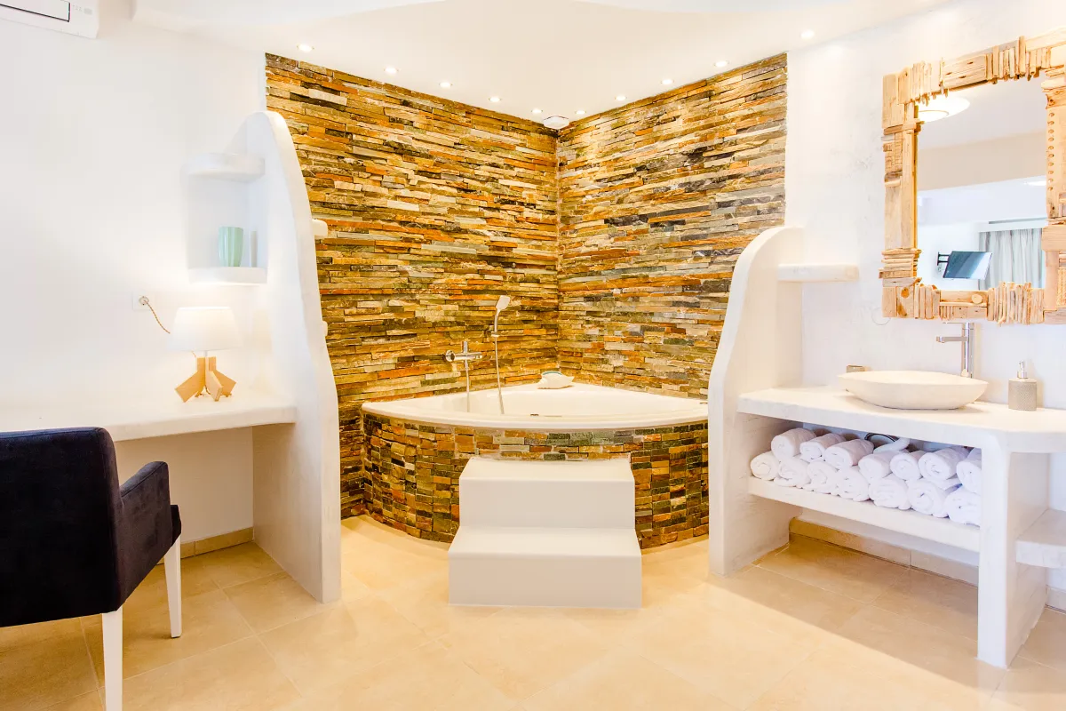 Villa Bella Elena hat drei Stockwerke und insgesamt 290 m2 Fläche. Es ist sorgfältig an zwei symmetrischen Stellen gebaut, so dass die Gäste ein gewisses Maß an Ruhe und Frieden genießen können. Zwei unabhängige Master-Suiten mit eingebauten Kingsize-Betten, privaten Badezimmern mit Whirlpools und ungehindertem Blick auf den Garten und die Pools befinden sich im Erdgeschoss.