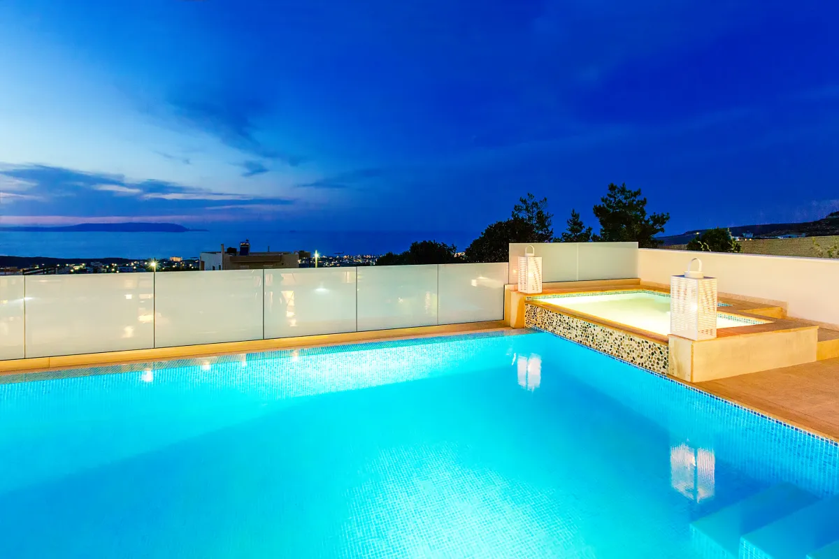 In idealer Lage, nur 10 Minuten von Heraklion entfernt, am Hang von Vrachokipos, garantiert diese moderne Villa Bella Elena den besten Rückzugsort für einen angenehmen und erholsamen Urlaub in völliger Abgeschiedenheit. Jeder Besucher wird sich immer an den Blick von der Residenz auf die Insel Dia und das grenzenlose Blau des kretischen Meeres erinnern.