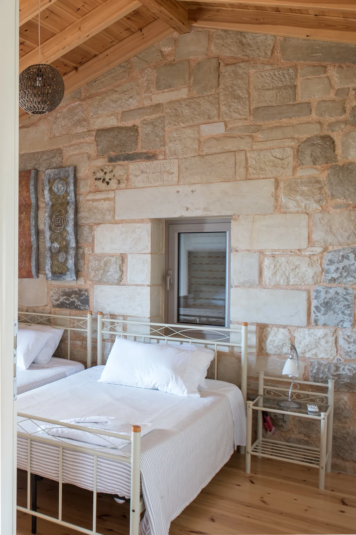 Villa Erato is a private vacation home away from home that belongs to the magnificent residencies Pantanassa Villas that combine modern facilities, tranquillity and uninterrupted views with proximimity to beach and city center. By day, you can explore western Crete’s spectacular beaches, by night, you can head out and rave ‘til dawn’. Its location is ideal to combine nightlife and culture, feeling you are spending vacation in a world on its own. The unit offers you privacy in a quiet and elevated spot from where you have easy access to the most respected restaurants of western Crete and the long sandy beach of Agia Marina with many beach bars and water sports options. Τhis well presented two bedroom villa can host up to 6 guest, providing absolute tranquility in a quiet neighborhood and enjoyable holiday experience with your private garden, swimming pool and BBQ facilities. Indoors the 2-level villa offers a master bedroom, 2 single beds bedroom, a convienient living room with fireplace and a fully equipped kitchen. Villa Erato offers a real sense of summer vacation with epic sunset and an outdoor pool from where you can get the party started, with incredible views over Chania's Bay. There are loads of activities down at the beach and intriguing history and culture you won't find easily anywhere else.