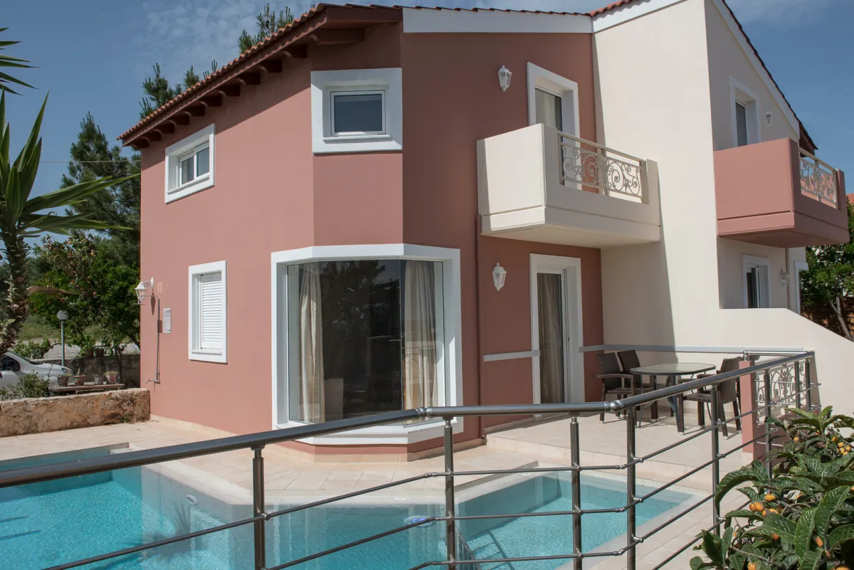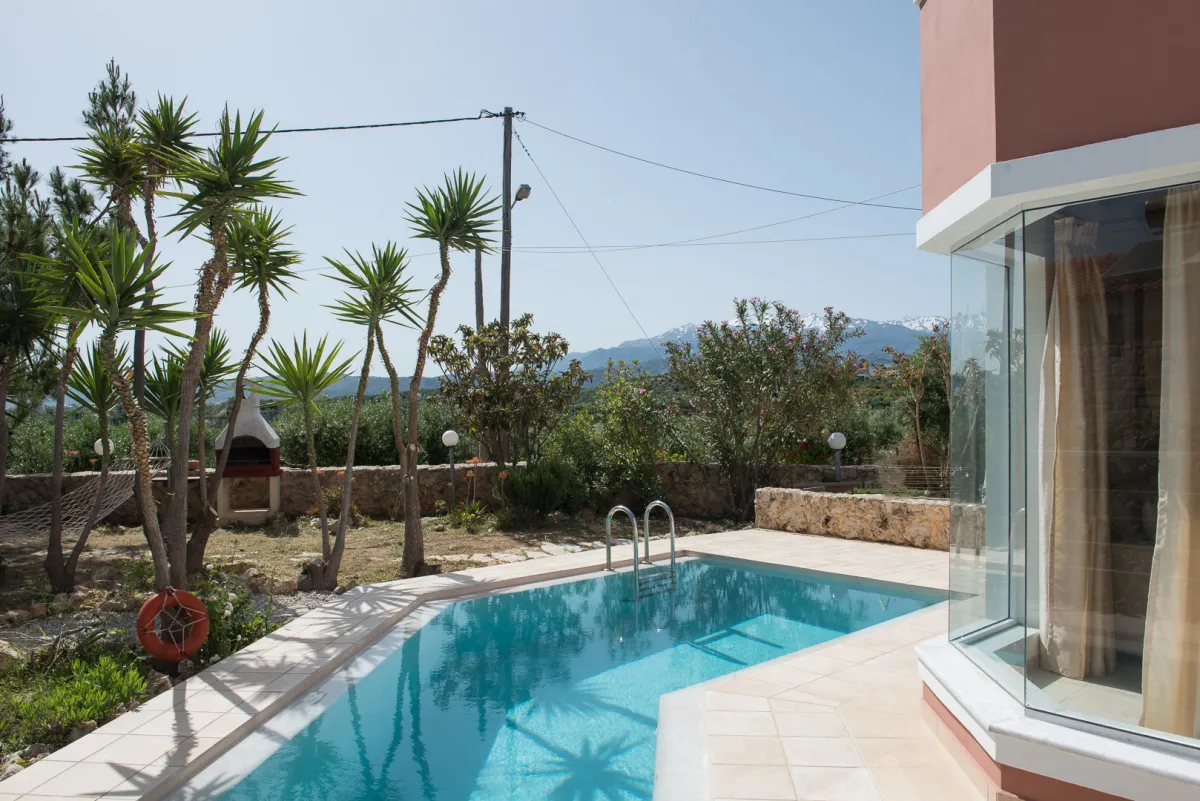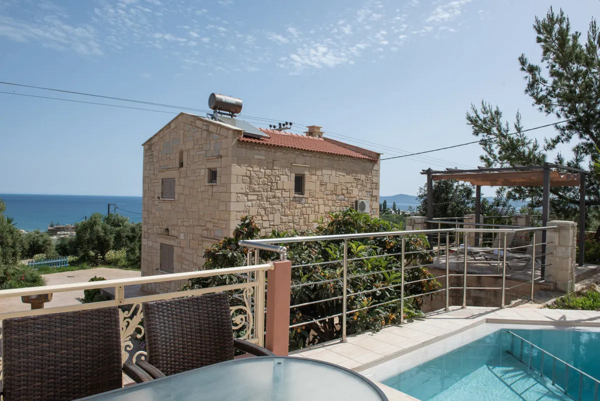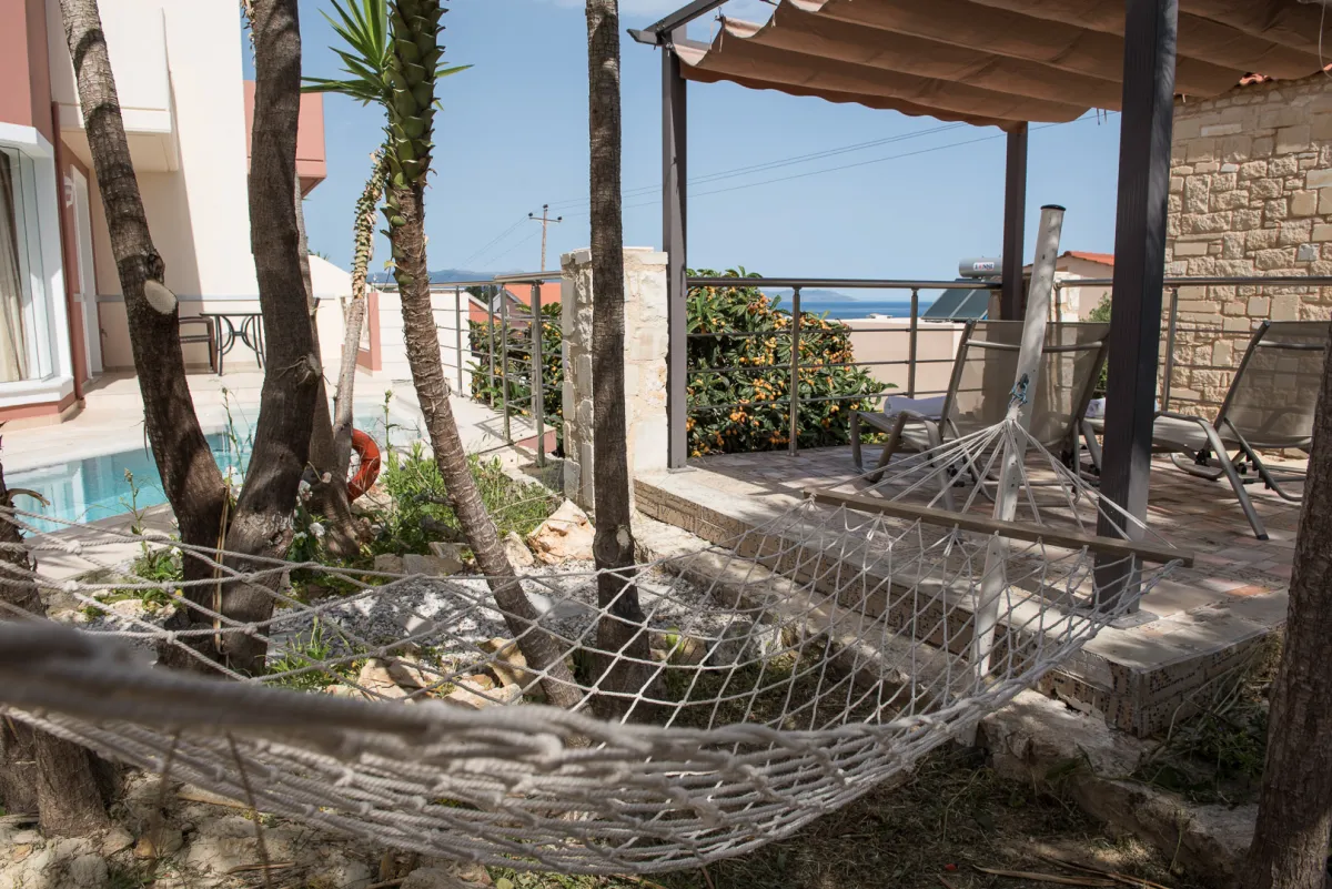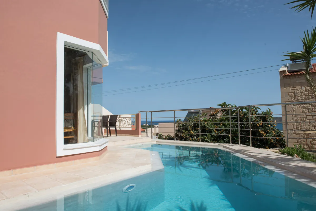 Reserve this comfortable villa in a sun-kissed destination honeymoon, perched in a peaceful hillside just outside the bustling seaside resorts of Stalos and Agia Marina overlooking Chania Bay with the long golden sandy beach stretches to the West of the island of Crete for many kilometers.