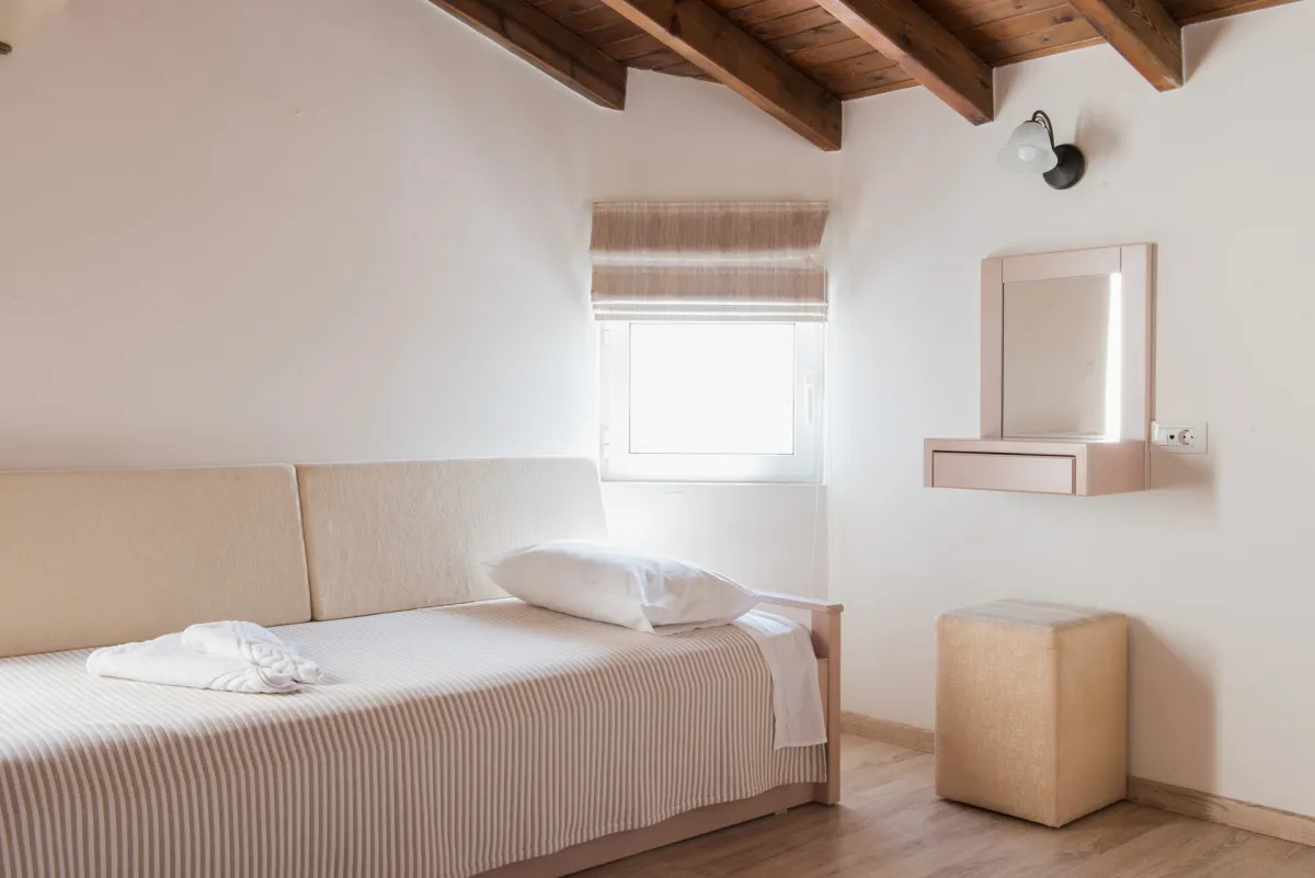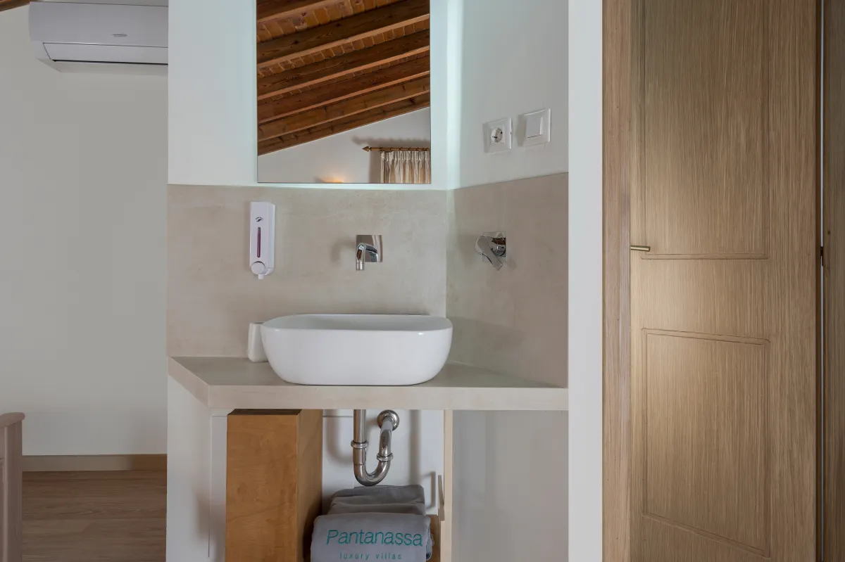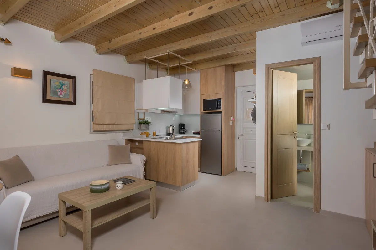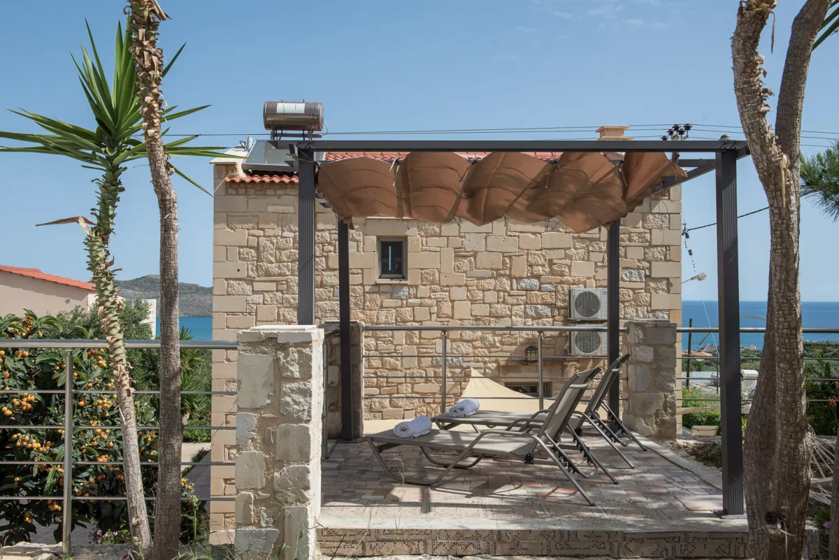 Villa Terpsichore is a single bedroom villa that enjoys a secluded location perched on a hill above the beach of Stalos and Agia Marina, 900m away from the warm waters of the Cretan Sea. It's an ideal hideaway for couples celebrating a honeymoon, an anniversary or just wanting to get away from it all and relax in style and comfort. The nightlife attractions in Platanias with open-air bars and dance clubs makes the villa also ideal for two couples and friends who wish to get an idea of Crete’s party spirit. The villa itself offers comfortable accommodation for small families or 4 adults. A private swimming pool sits in gardens overlooking the seaside. Few meters away from a BBQ and a shaded kiosk create a relaxing corner to feel the sea breeze for those warm summer evenings. Inside the villa there is a kitchenette, an open plan to the lounge, and a sofa that converts into a bed. The top floor's bedroom has an ensuite bathroom and views to the coastal landscape of Agia Marina.