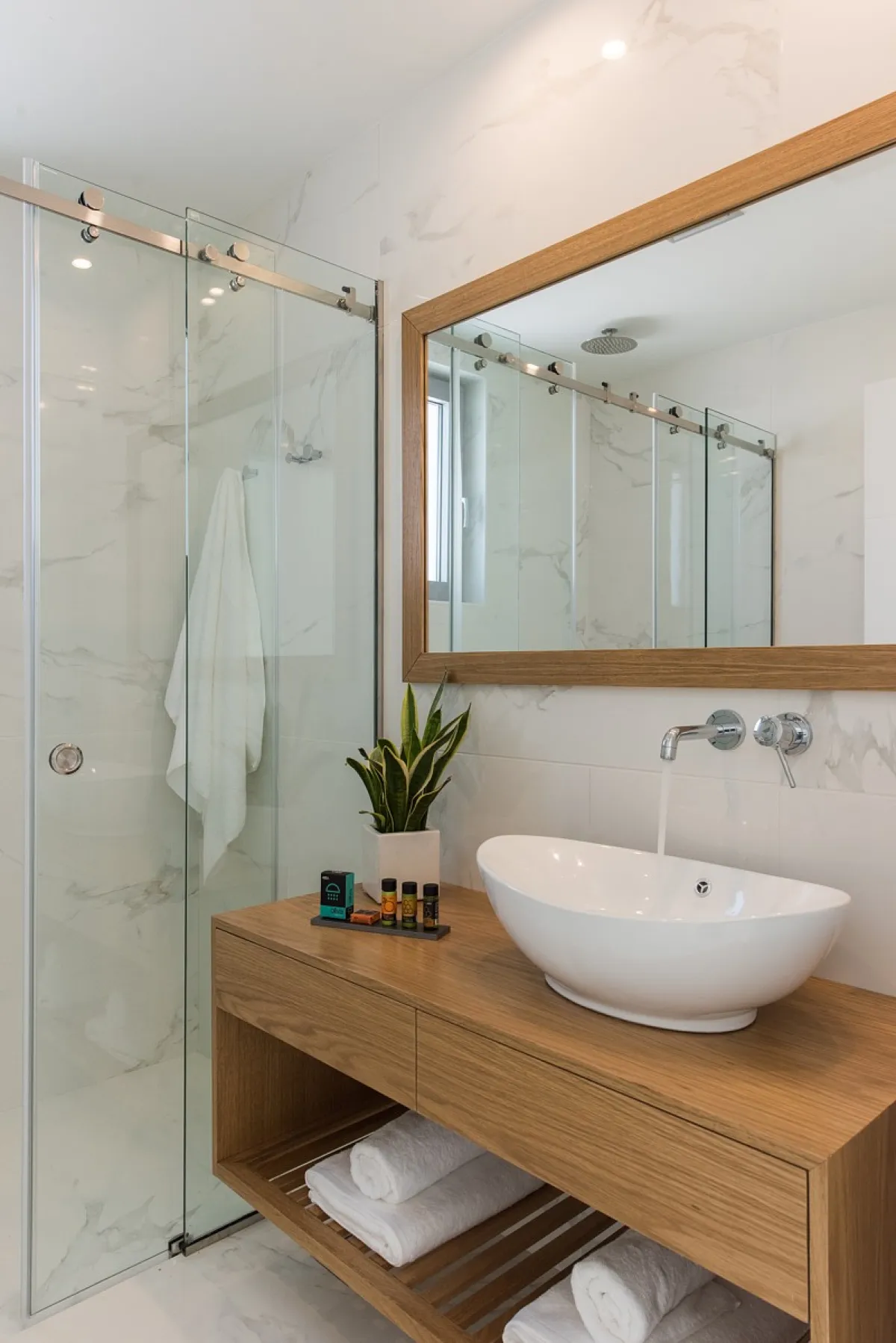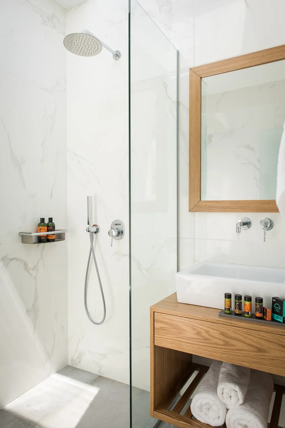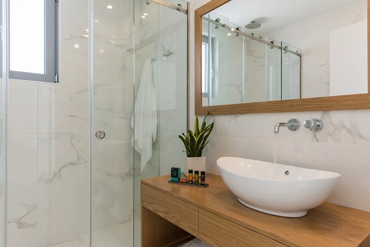 The Aleria villa has 4 deluxe bedrooms, 3 of them ensuite. Each bedroom is furnished with comfortable beds and fresh, stylish linens, as well as satellite TV and safe boxes. Each bedroom also has a private terrace with a sitting area and a separately-controlled A/C system. The 4 bathrooms (1 separate from the bedroom) are fully equipped and offer fresh towels and complimentary toiletries for the guests’ use. There is also an office at the villa accommodation and a well-equipped with its own bathroom facilities.