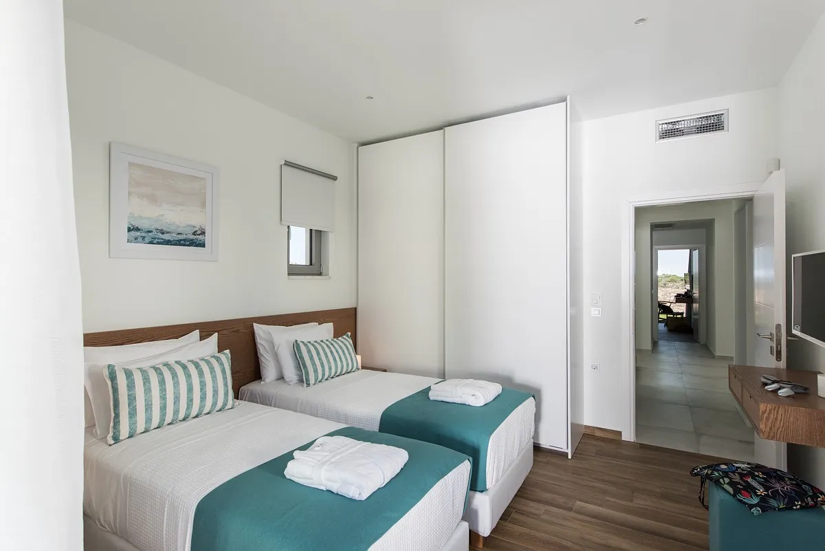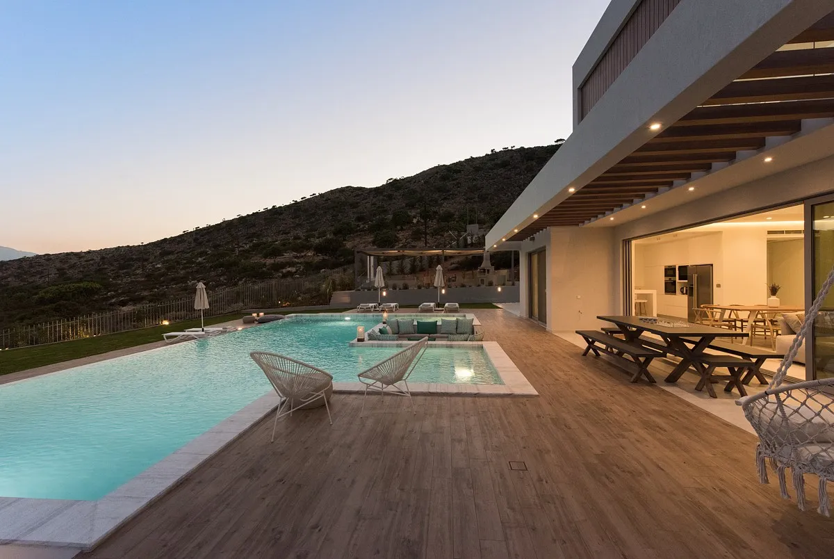 Aleria, this Crete luxury villa lies in the renowned holiday region of Chania, in the coastal village of Marathi, overlooking the sparkling waters of the famous Souda Bay. The modern style and light-infused design of the villa ensure it is the ideal spot to soak up the Greek sun and holiday ambiance.