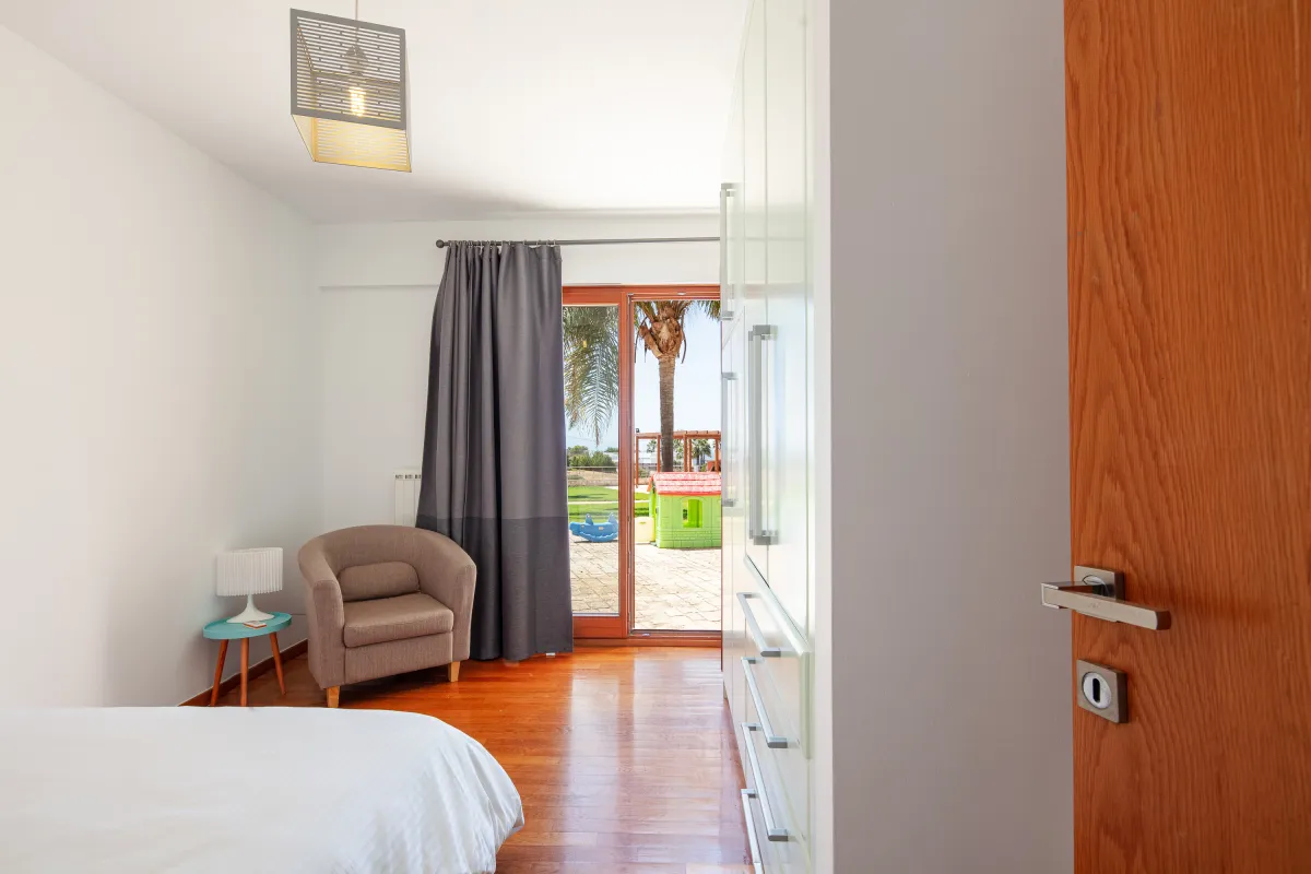 We spent 10 days here in August 18. The villa is how it looks for the most part, loads of space, great bbq area, football goal, swings, slide for the kids. The pool has two shallow ends (1m) so ok for our kids. The villa is actually two villas with 4 bedrooms each, although they both have entry / exits next to the pool. The kitchen in the second villa isn’t finished (so locked) but there is a frid... more