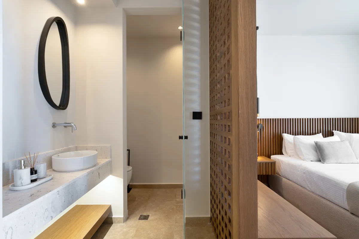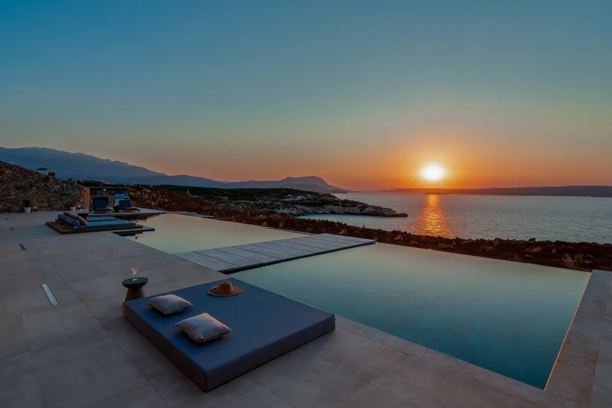 Arion Aesthesis Villa is a luxurious getaway located in Chania, Crete, where modern elegance meets Mediterranean charm. It is situated in a prime spot from which the sandy beaches, the Venetian Harbor and the historic old town of Chania are in close reach, providing serenity along with exploration.