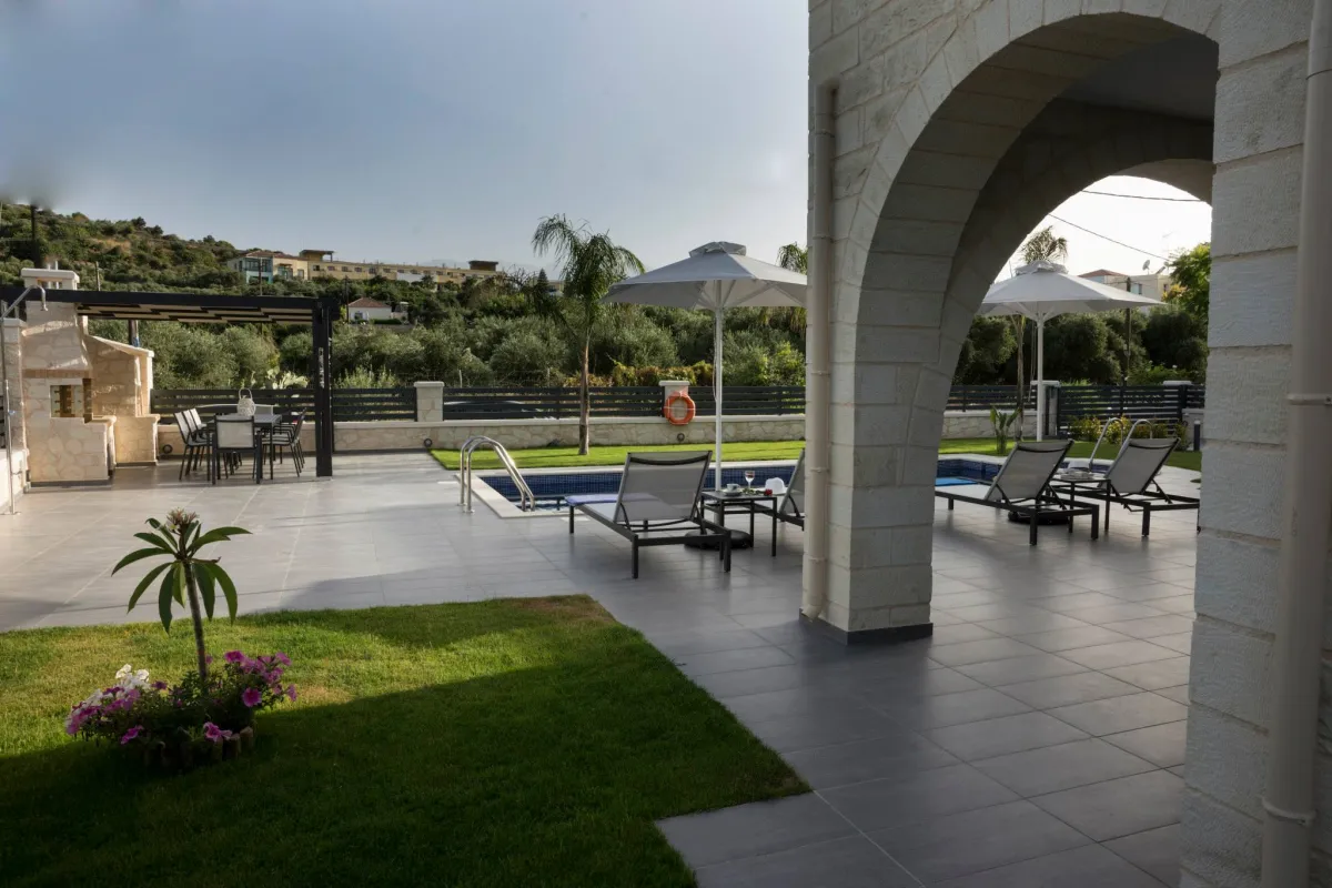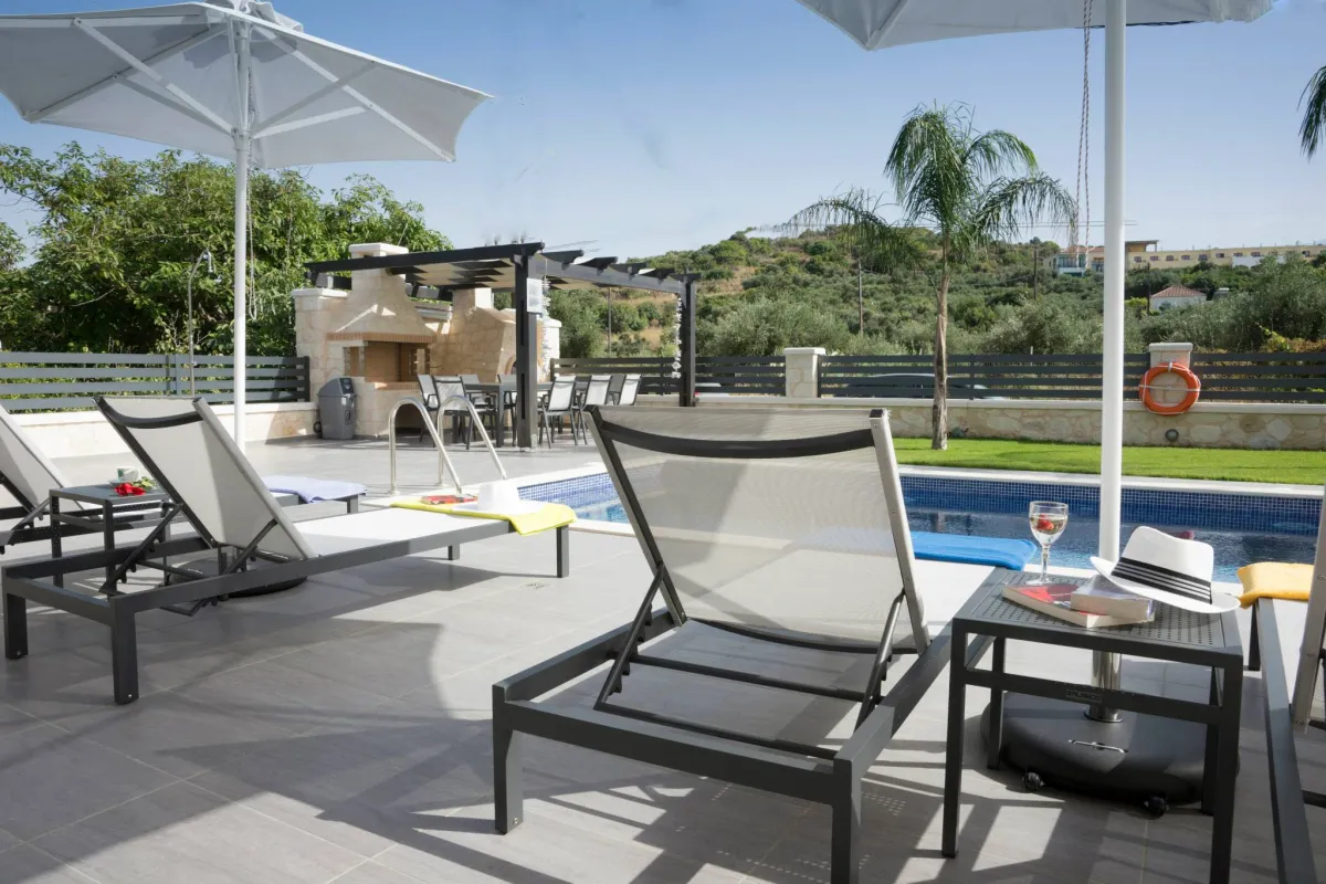 The villa is fantastically clean and new but maintains a relaxed Greek feel. It has everything you need and even games and some left over inflatables to enjoy.The kind and helpful hosts could not do enough to help. They provided lots of thoughtful extras and a generous welcome basket. We even had mosquito coils and washing tablets which were so useful.The location is excellent- the beach really sa... more