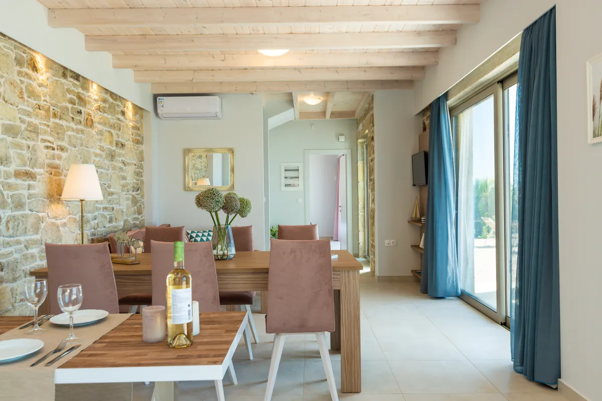 For large family, group of colleges or friends' reunion who seeks plenty of space, ambience and privacy, this is the right mansion at the right spot, the very west end of Crete. The sumptuously appointed 2-storey villa is located on the Bay of Falassarna. A long 45 sqm private swimming pool features sun beds for sunbathing provide unique moments of fun and relaxation. Spending time and feeling the breeze on the terrace's dining area is enjoyable especially while watching the sunset and the coming night in the Western Crete.