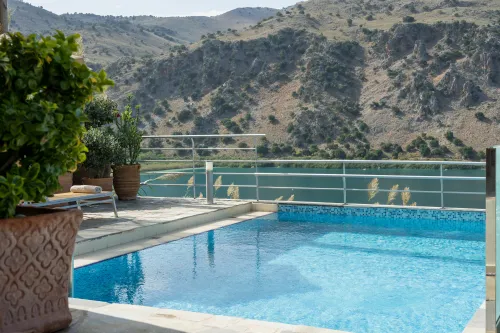 Ein sehr schönes Ferienhaus mit wunderbaren Blick auf den Kournas See und die dahinterliegenden Berge und auf das Meer. Ein schöner Pool. Zur Begrüßung gab es einen selbstgebackenen Kuchen von der Vermieterin. Während unseres 14 tätigen Aufenthalts wurde zweimal gereinigt Am Abreisetag konnten wir am Nachmittag sogar nochmals die Dusche benutzen. Ca. 10 Tavernen sind fußläufig erreichbar, teilweis... more