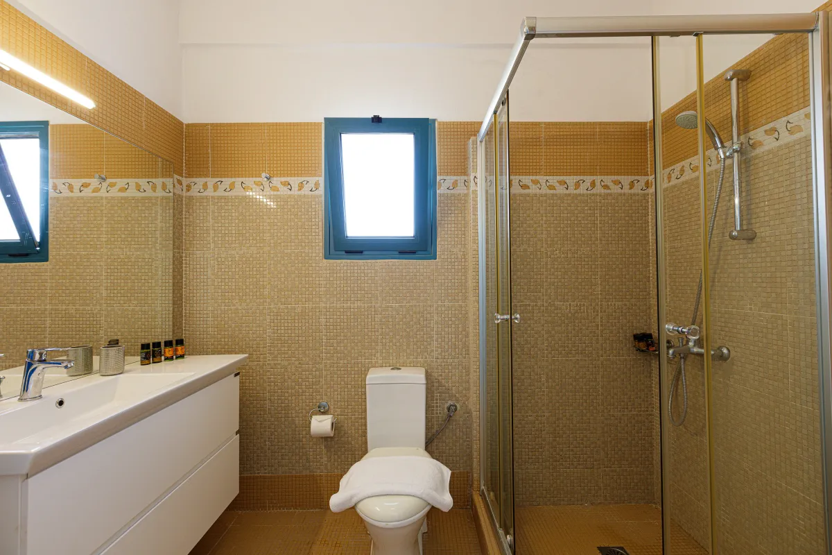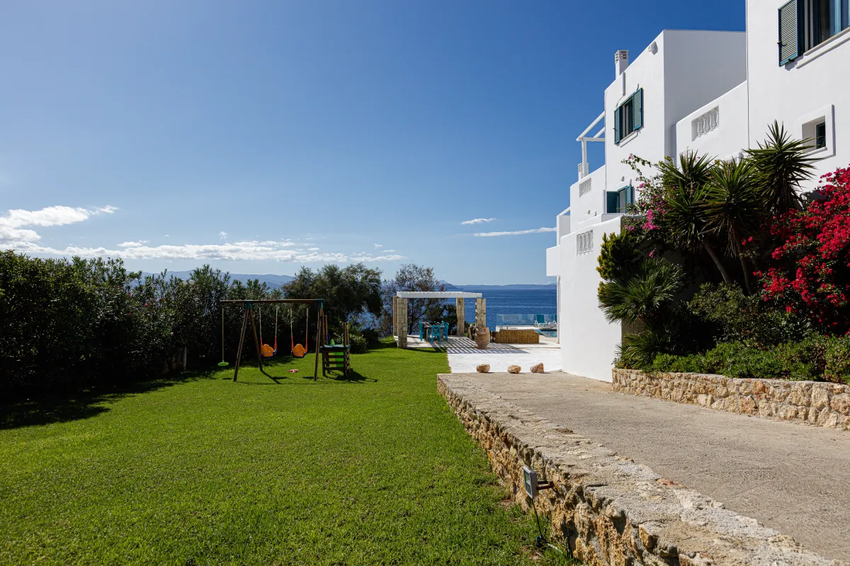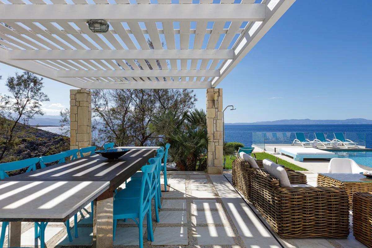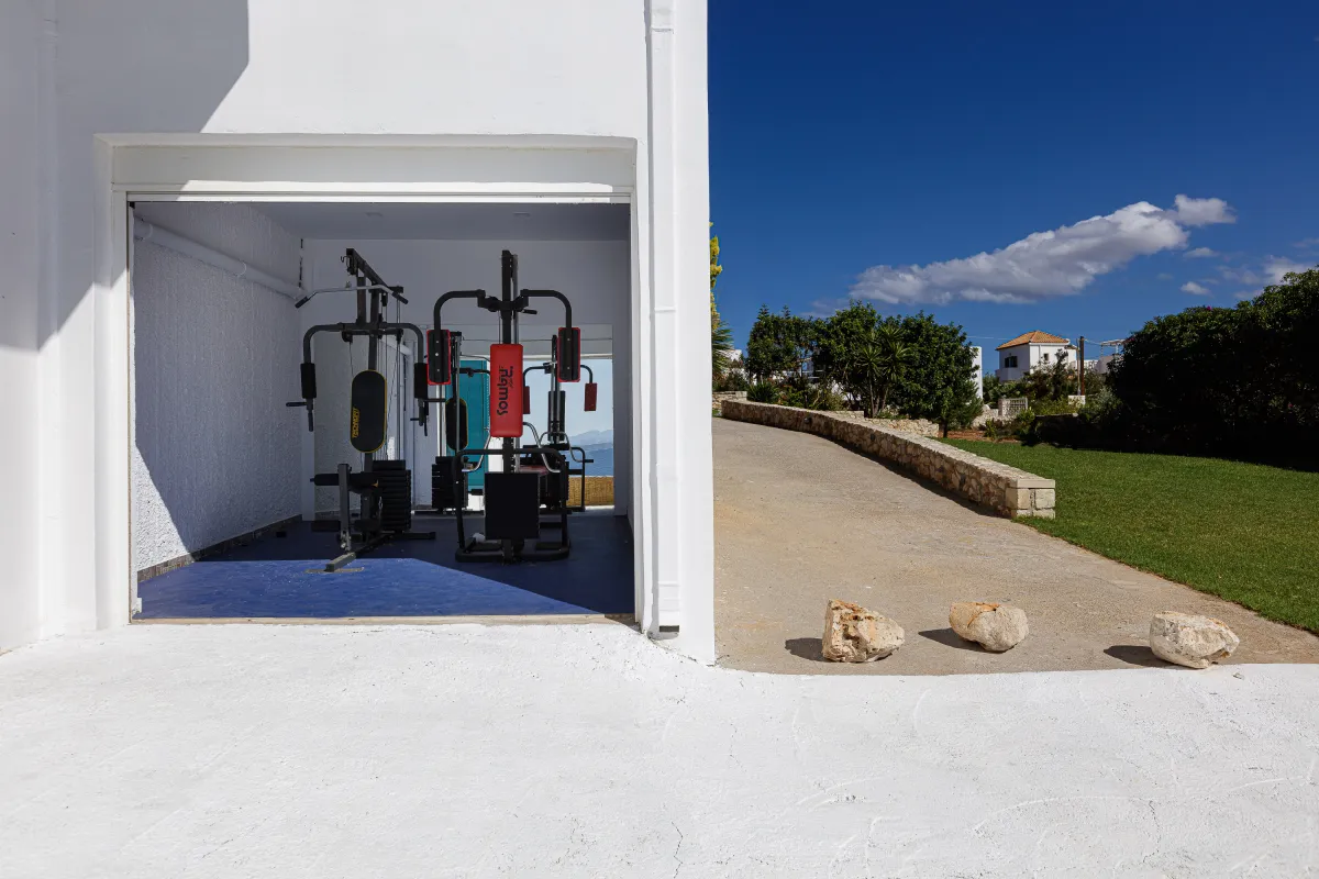 Villa Chrissi is situated northwest of Chania Prefecture at a magnificent coastal location called Tersanas. It sits at the top of a 3,000 sq. m. private hill planted with grass, flowers, bushes, herbs and other native plants; an idyllic location whatsoever. The villa is about 300 sq. M. m. and consists of six bedrooms, one gym with its own bathroom, one large kitchen and two living rooms. Every room of the villa has a satellite, plasma screen TV, whereas the living room near the kitchen and the one at the ground floor have two 3D televisions. Outside, there is a shaded pavilion and a BBQ area. There is plenty of space for five to six cars to park. Wireless Internet access is for free, while you will also be given a cell phone with a Greek number for national calls. Should you have any special requests about every aspect of your trip just send us an email.