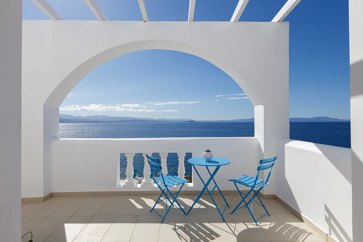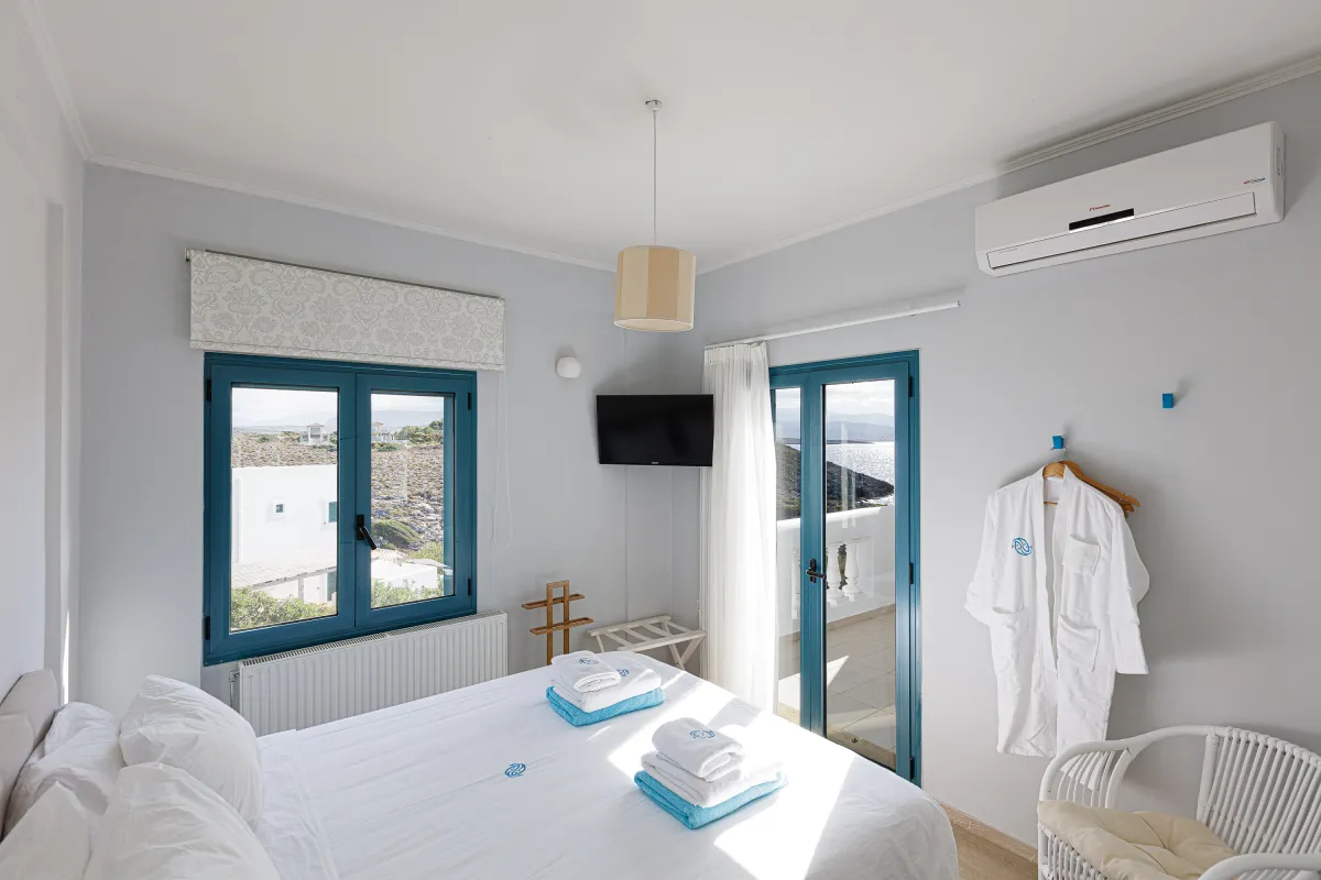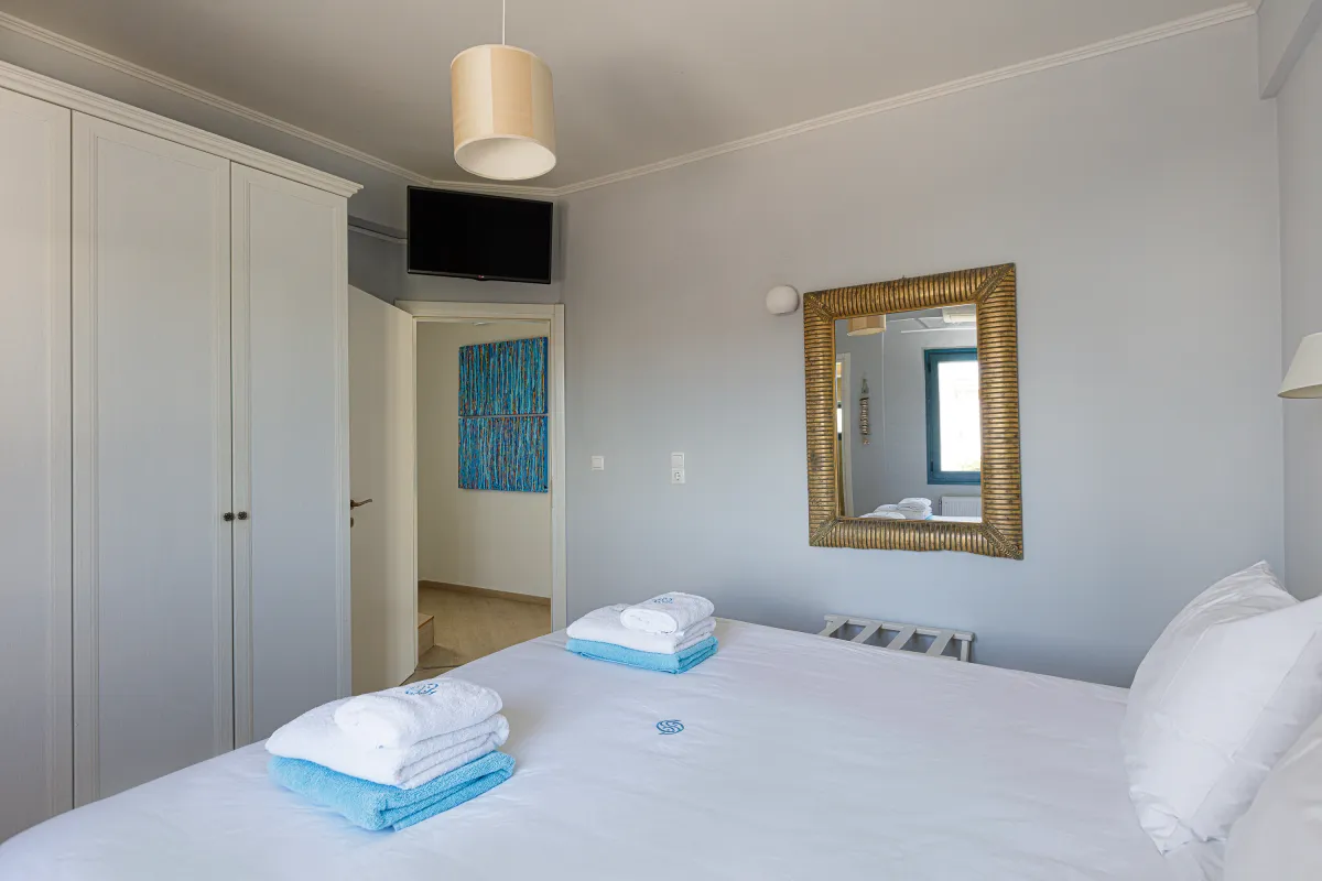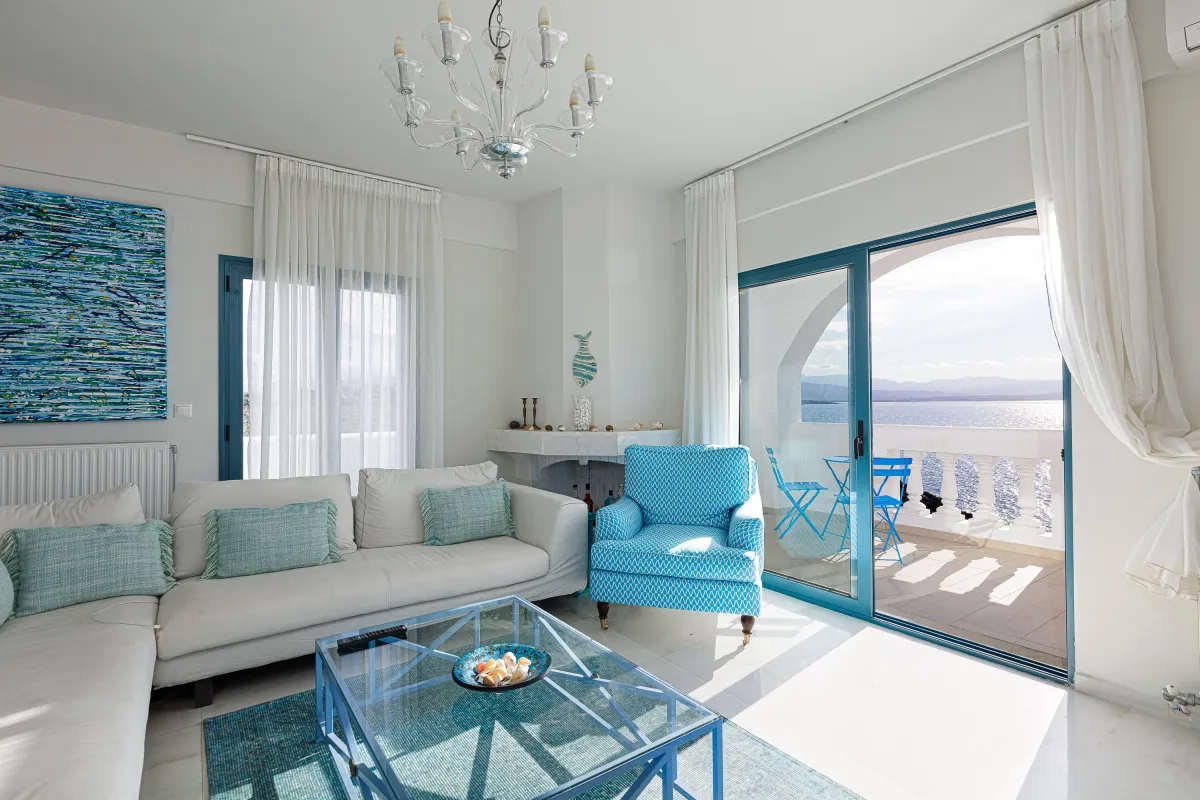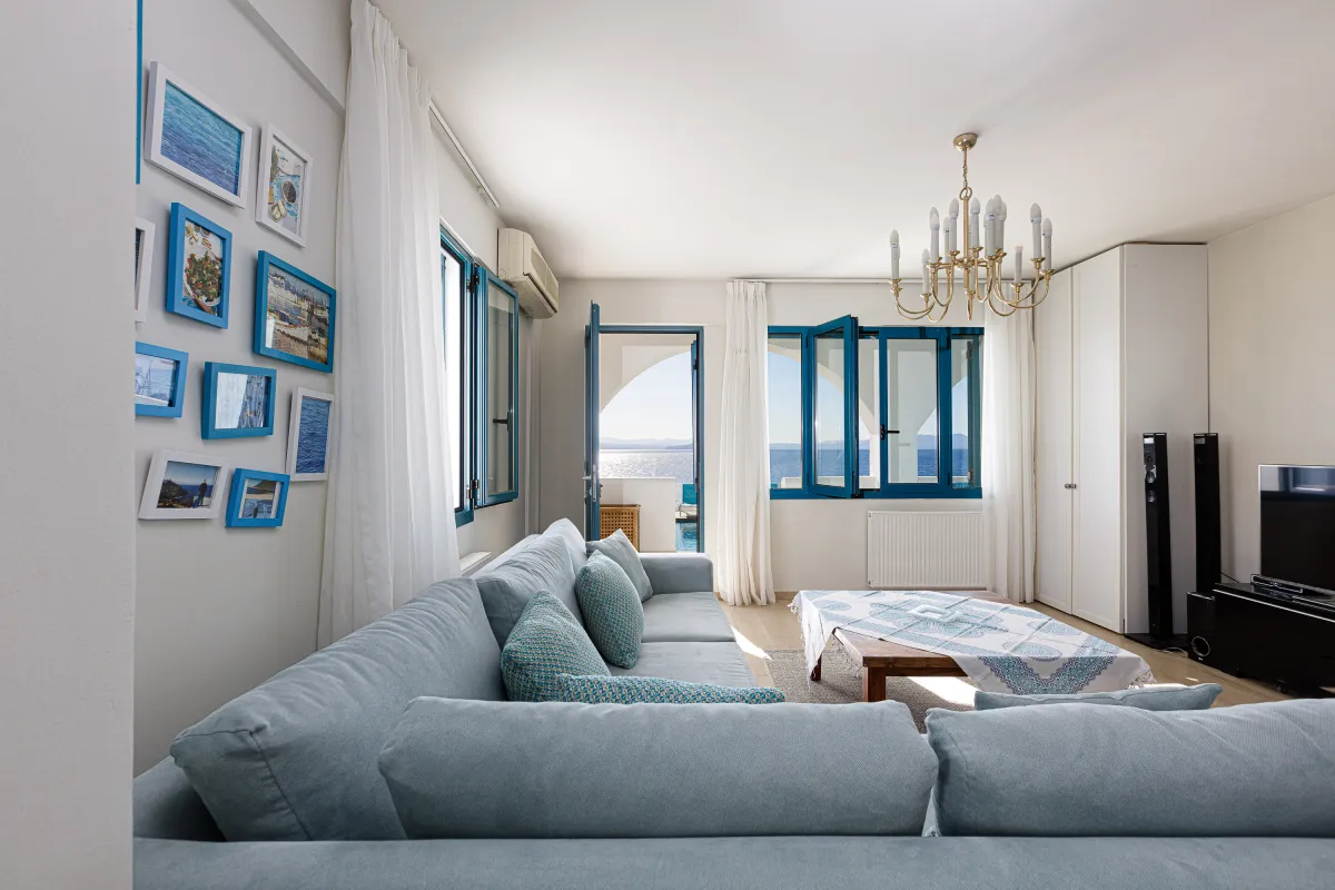 Villa Chrissi is situated northwest of Chania Prefecture at a magnificent coastal location called Tersanas. It sits at the top of a 3,000 sq. m. private hill planted with grass, flowers, bushes, herbs and other native plants; an idyllic location whatsoever. The villa is about 300 sq. M. m. and consists of six bedrooms, one gym with its own bathroom, one large kitchen and two living rooms. Every room of the villa has a satellite, plasma screen TV, whereas the living room near the kitchen and the one at the ground floor have two 3D televisions. Outside, there is a shaded pavilion and a BBQ area. There is plenty of space for five to six cars to park. Wireless Internet access is for free, while you will also be given a cell phone with a Greek number for national calls. Should you have any special requests about every aspect of your trip just send us an email.