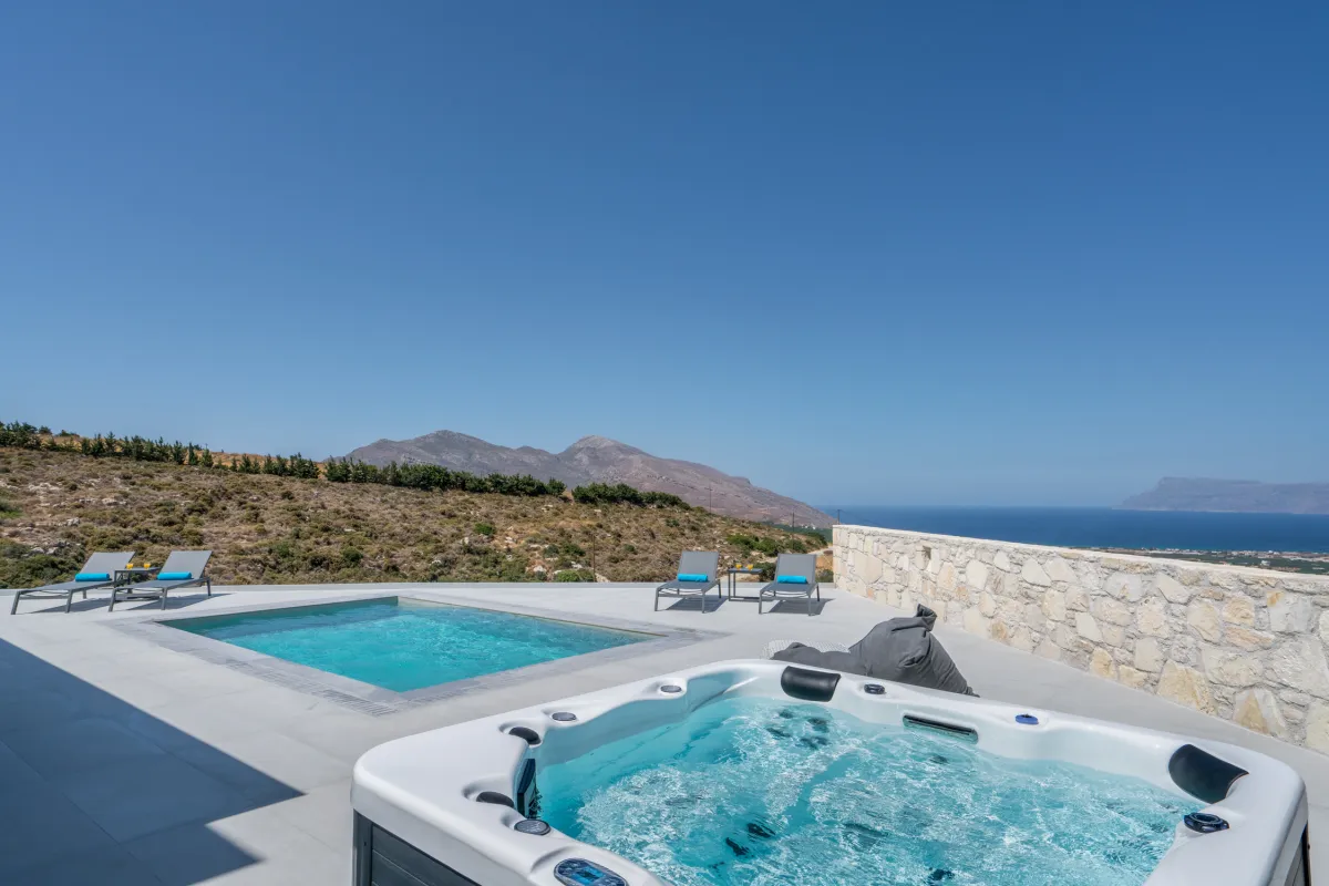 This Crete luxury villa is in the renowned holiday region of Chania, near the town of Kissamos. The holiday accommodation is perfect for family and friends to settle in and revel in the splendour of the Greek coast.