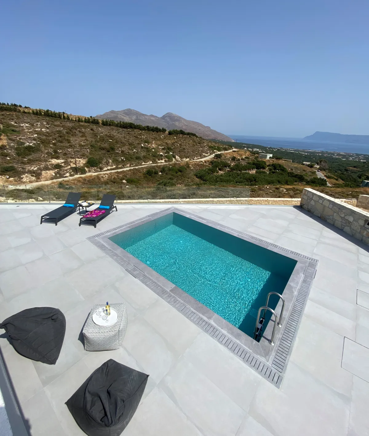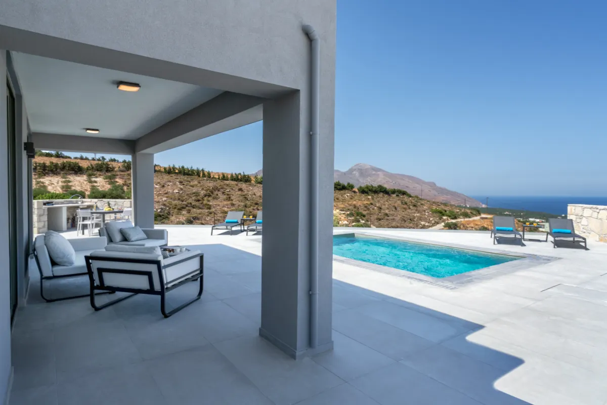 Cretan Aura is in Chania, between Falassarna and Balos, on the resort Island of Crete. Although the modern holiday rental is close to many popular beaches, restaurants, and supermarkets, the Cretan Aura villa is also the ideal spot for a private luxury vacation.