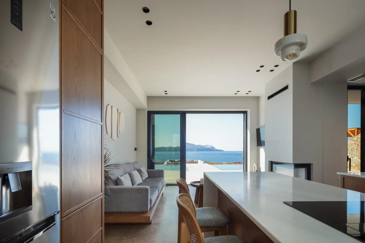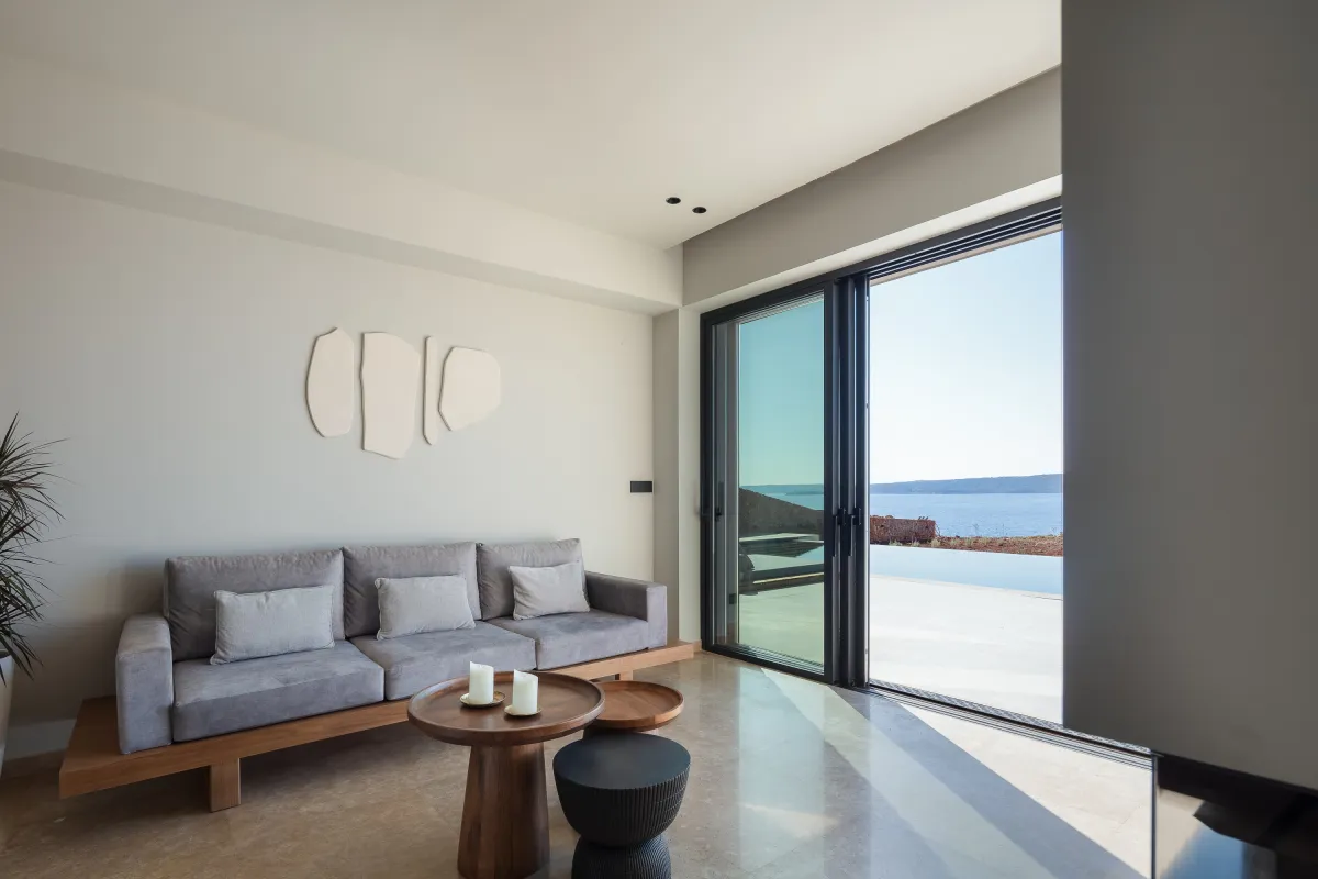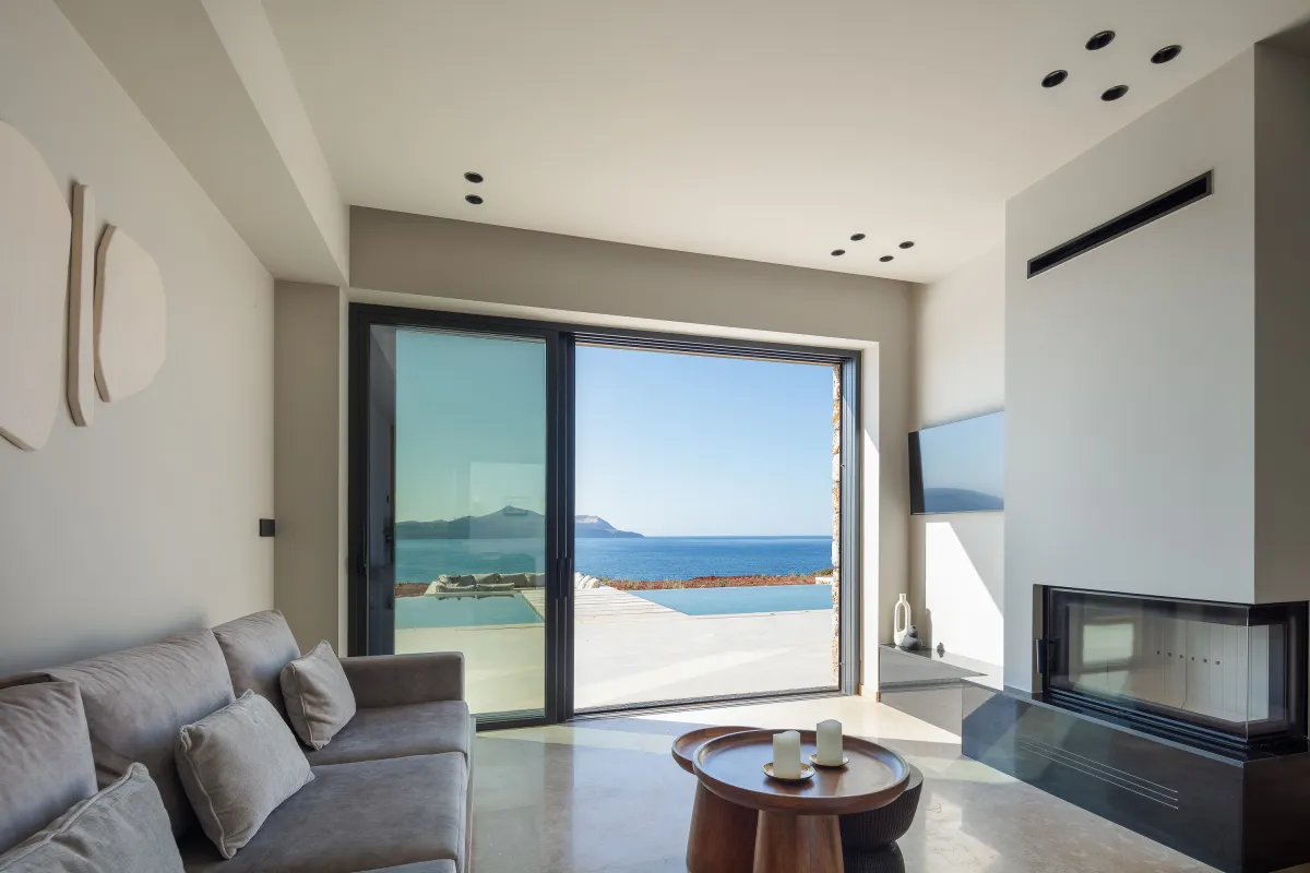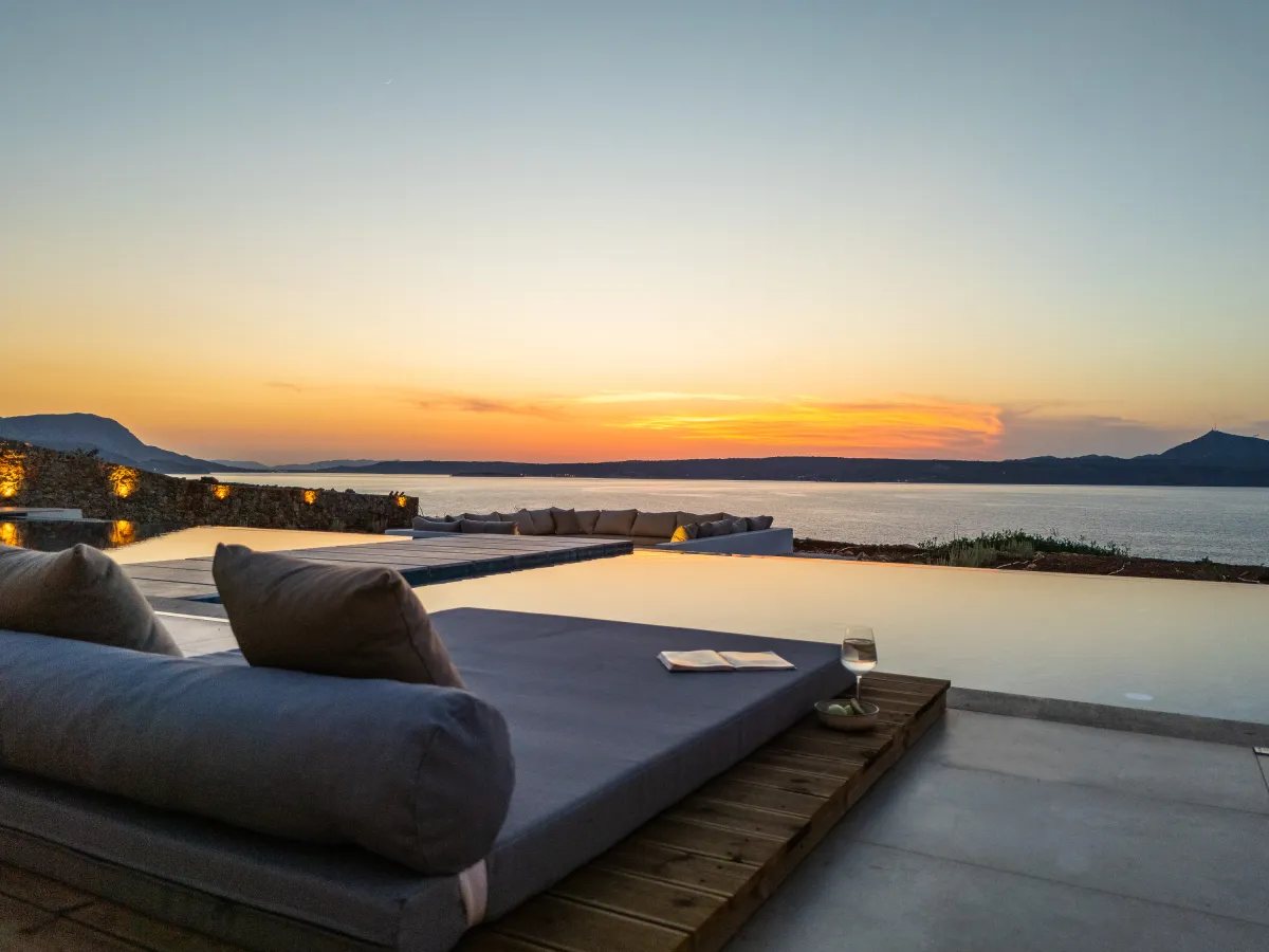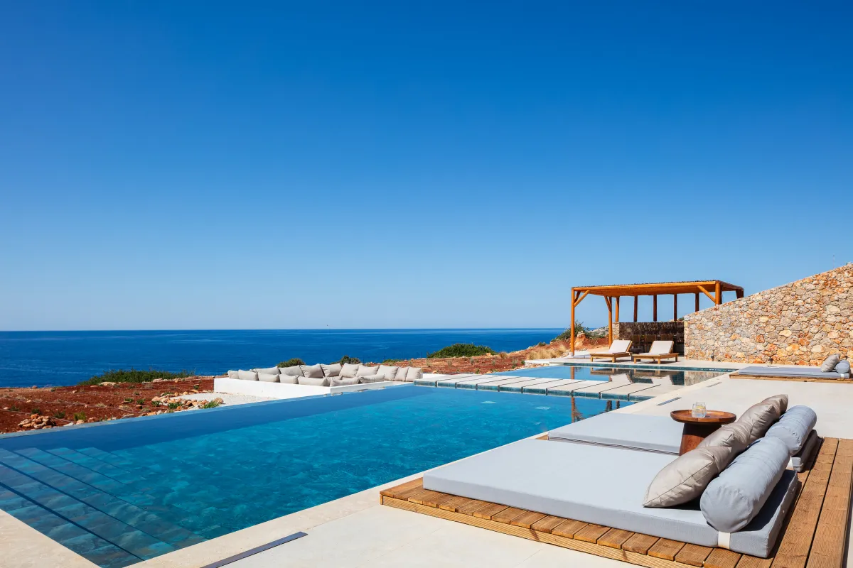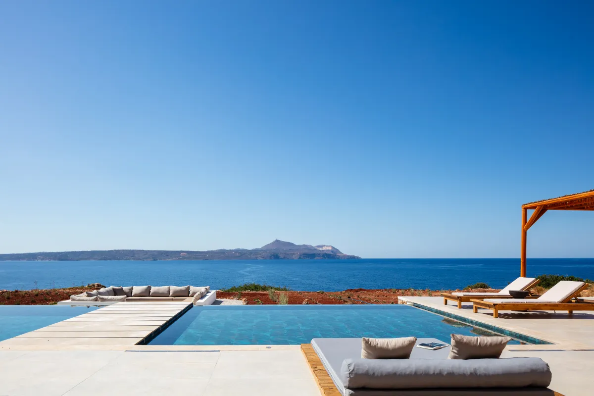 Dionysos Boutique Villa, located near Chania, offers an exclusive escape with unparalleled luxury and breathtaking views. This exquisite villa features a large heated pool and a heated kid’s pool that seem to merge with the endless blue of the Aegean Sea, creating a serene atmosphere perfect for relaxation. Guests can enjoy stunning panoramic sea views and mesmerizing sunsets from the villa's spacious terraces and outdoor living areas.
