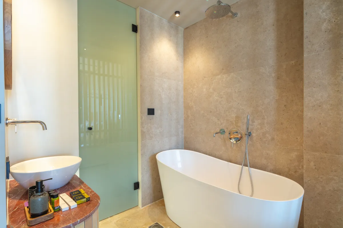 In addition to its refined living spaces, the villa also features a tranquil sauna room, ideal for soothing the senses after a day of exploration.