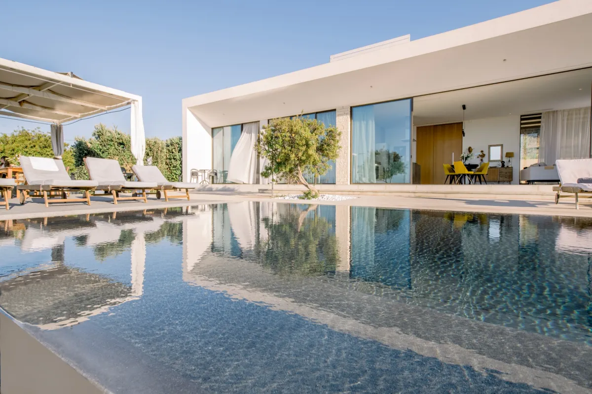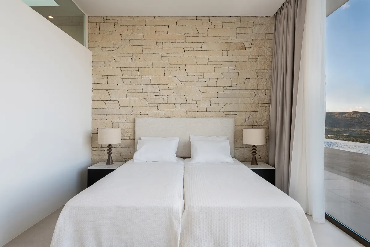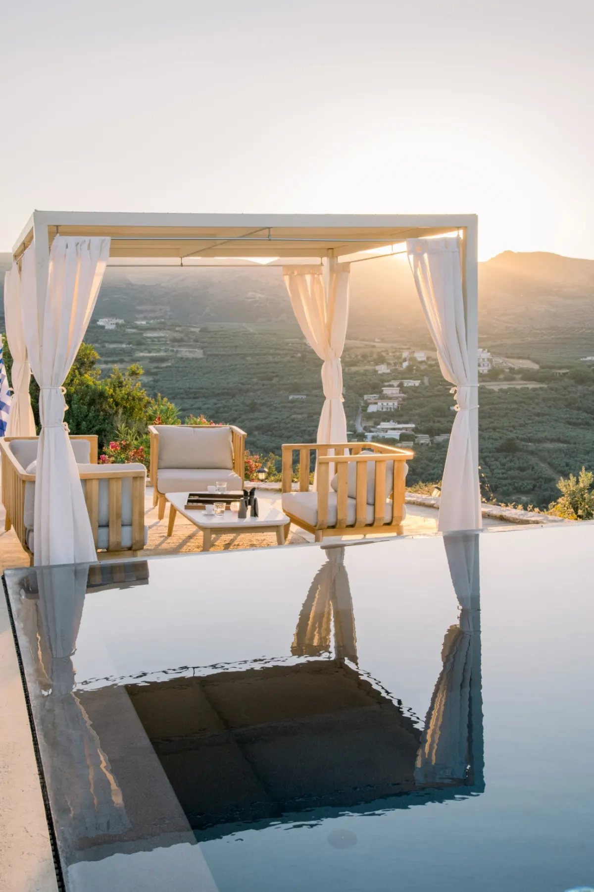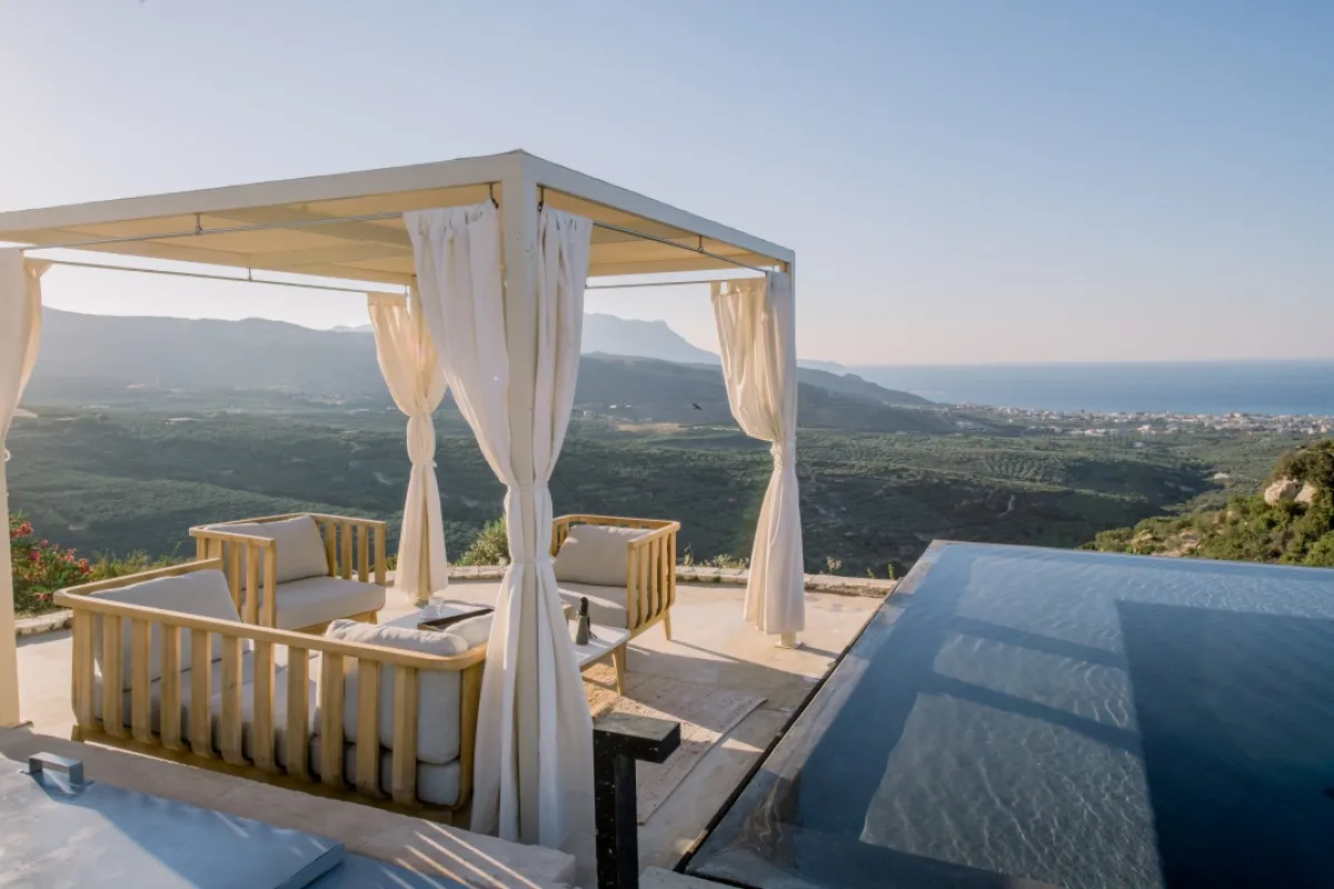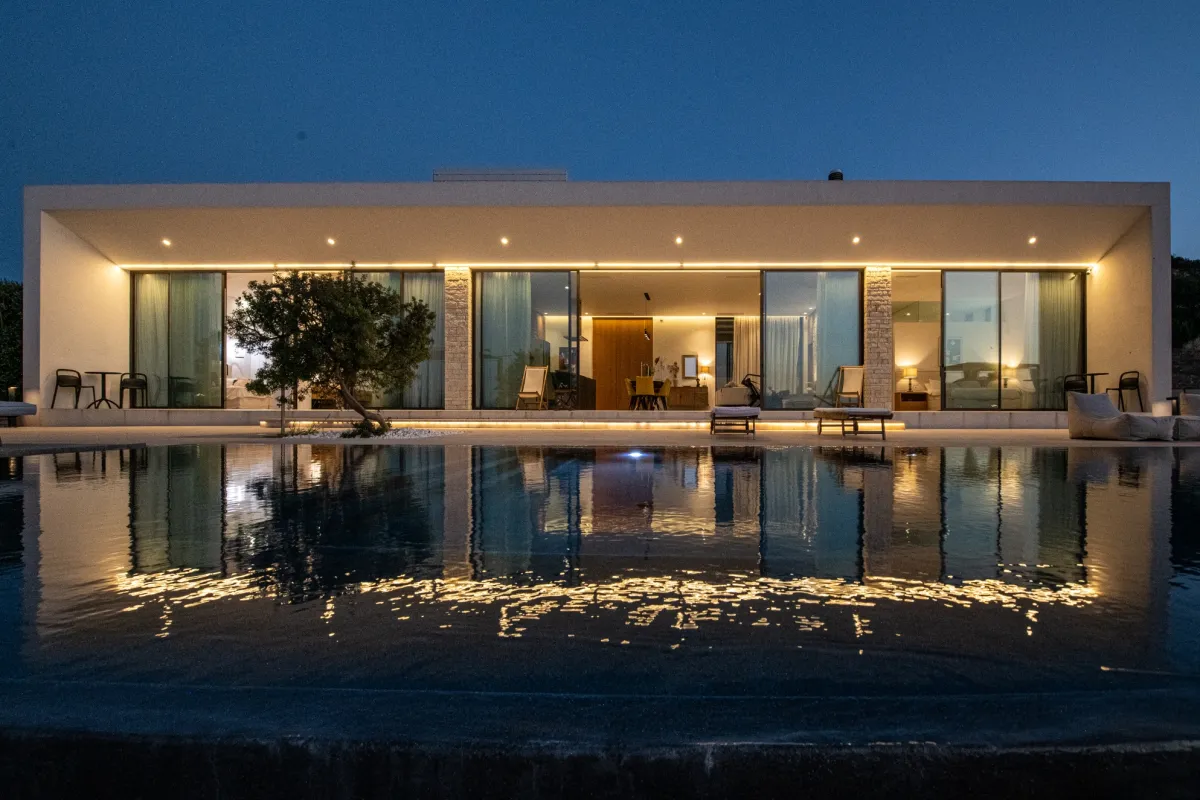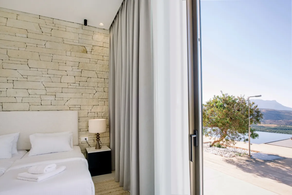 This is a highly impressive and beautiful modern villa set in a superb position, with a fantastic view of an olive grove valley below, with mountains on both sides and the coast around Kissamos beyond. The outside of the villa is lovely, with floor to ceiling windows across the entire front elevation, overlooking a gorgeous, large infinity swimming pool overlooking a view which can only be descri... more