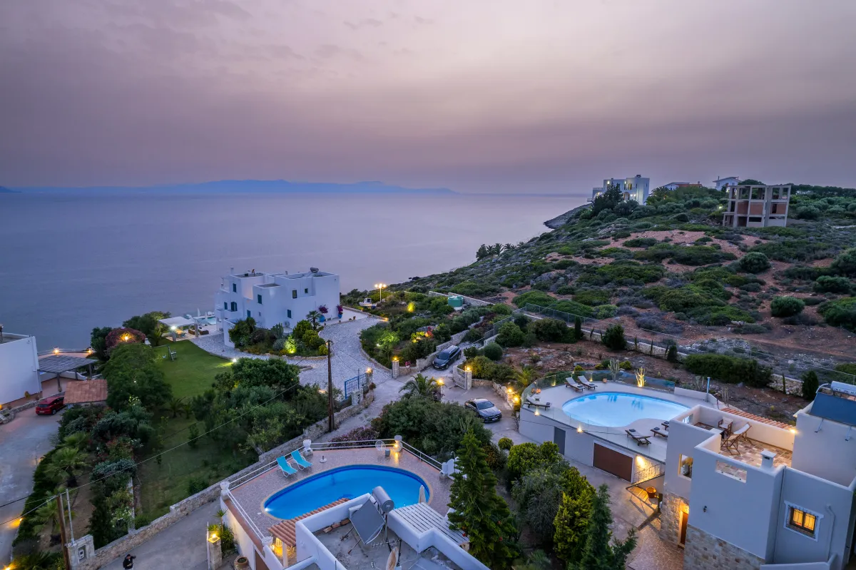Villa Irida is nestled in the seaside village of Tersanas on the Akrotiri Peninsula, just minutes from Chania town, Crete. Only a short drive from Tersanas Beach, Stavros, Loutraki, and Marathi, as well as local tavernas and supermarkets, the villa combines convenience with tranquility. It is an ideal choice for an exclusive and refined Cretan getaway by the sea.