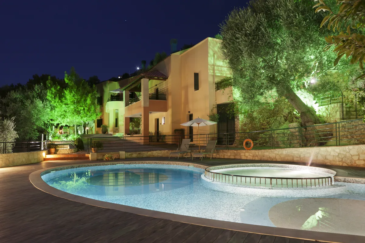 We were a group of 15 (7 adults, 8 kids between 6 - 12yrs) and stayed across the 4 residences that make up Agathes residence. We really enjoyed the houses, the pool, location - everything worked really well for us. Bedrooms were spacious and clean, good bathrooms (and water pressure) in all properties. Maria's taverna is a 10 min walk up the hill, and Maria makes fantastic home-made food (for both... more