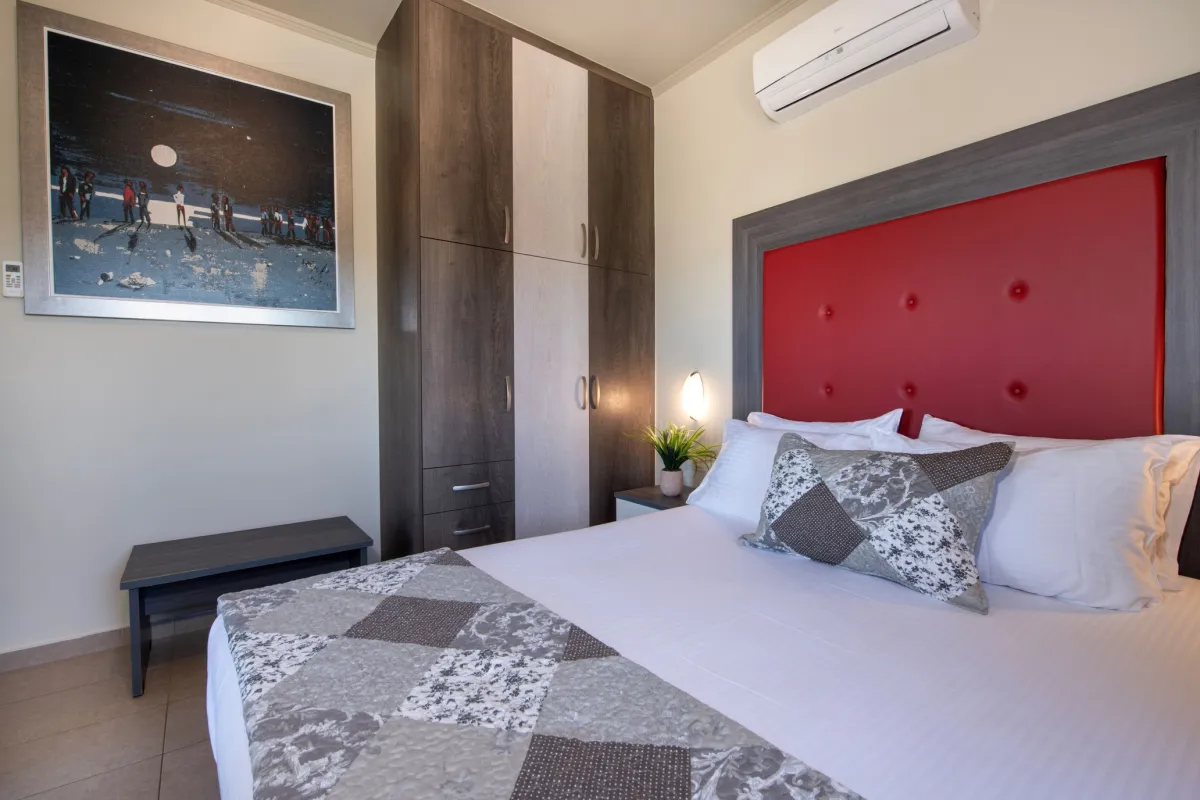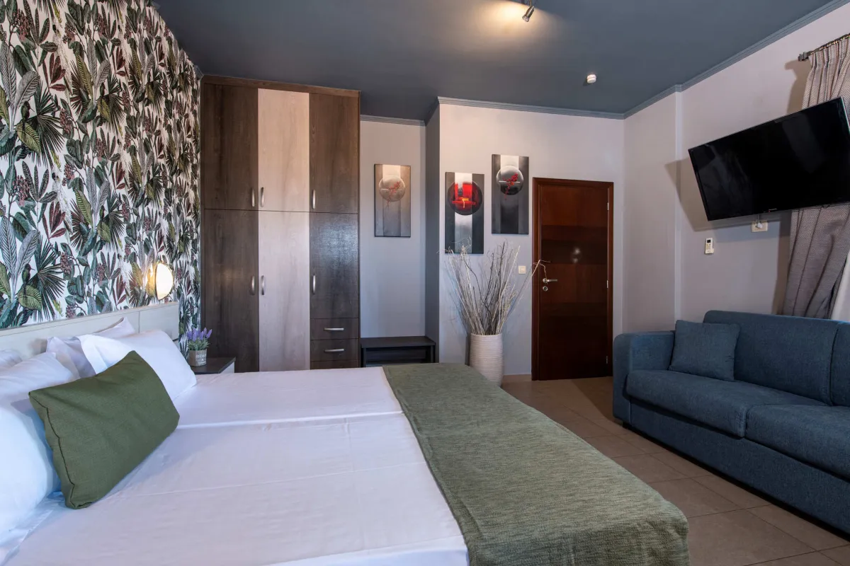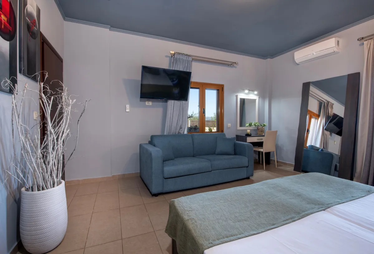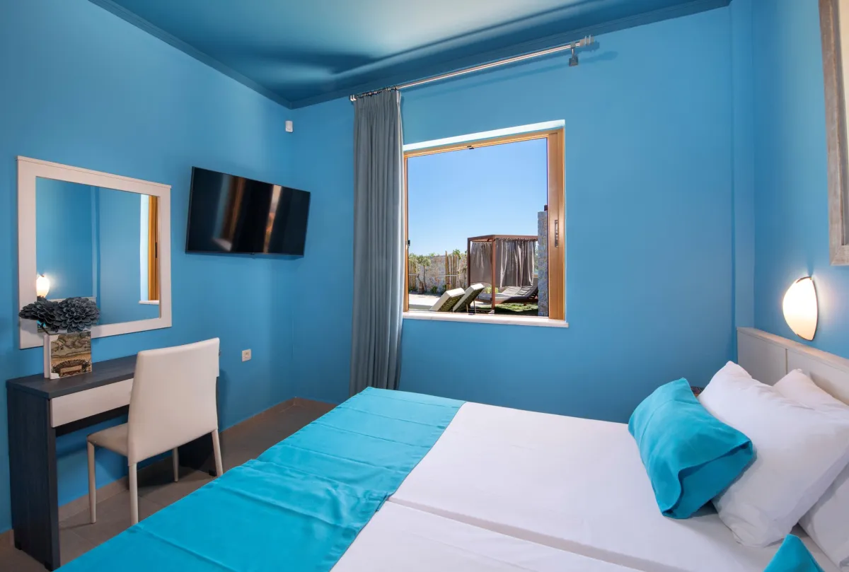 Drift across the serene swimming pool, looking up to see blue skies and the beautiful greenery hanging overhead, and enjoy your ultimate space for summer relaxation. Escape to your own quiet piece after a day exploring the island and gather at the alfresco set to enjoy a family re-union dinner while the sun sets. This luxury property is designed to make the most of Crete’s warm weather and laid-back atmosphere.