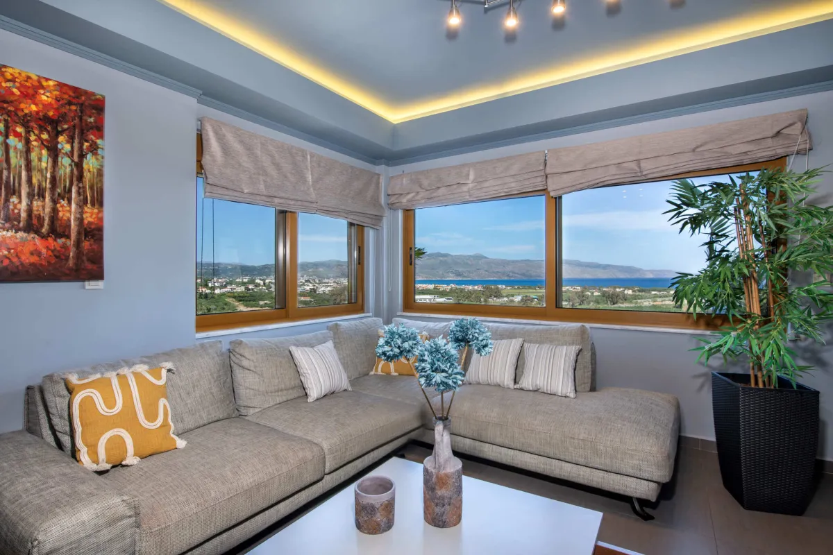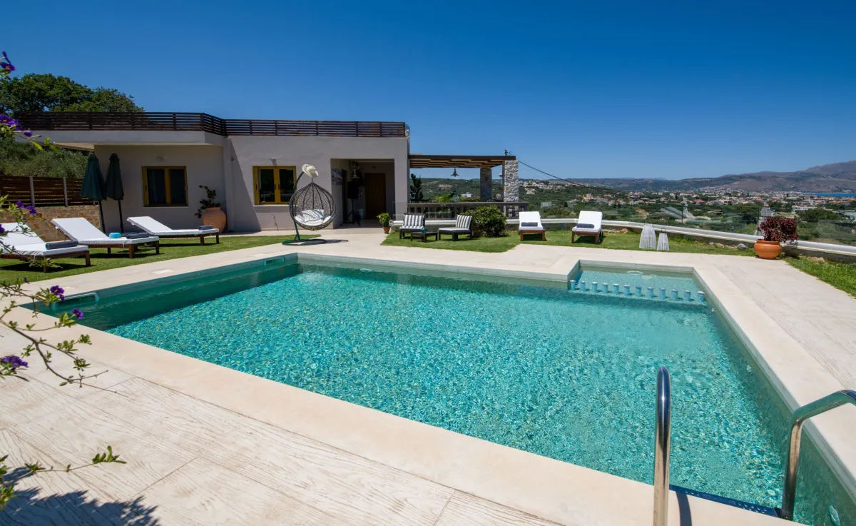 Lady Dafni Villa is covering an area of 200 m2 in an elegant outdoor environment of over than 500 m2, which can accommodate up to 10 guests. A large terrace and a living room overlooking the pool and the fertile area of Maleme will make your holiday an unforgettable experience in one of the best areas of Crete. This vacation villa retains the charm and style of a retreat, furnished with a high touch of taste and quality materials. An outdoor heated private swimming pool offers a calm environment to relax in idyllic surroundings. You can not go wrong with a holiday break in Chania.