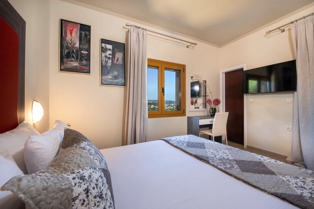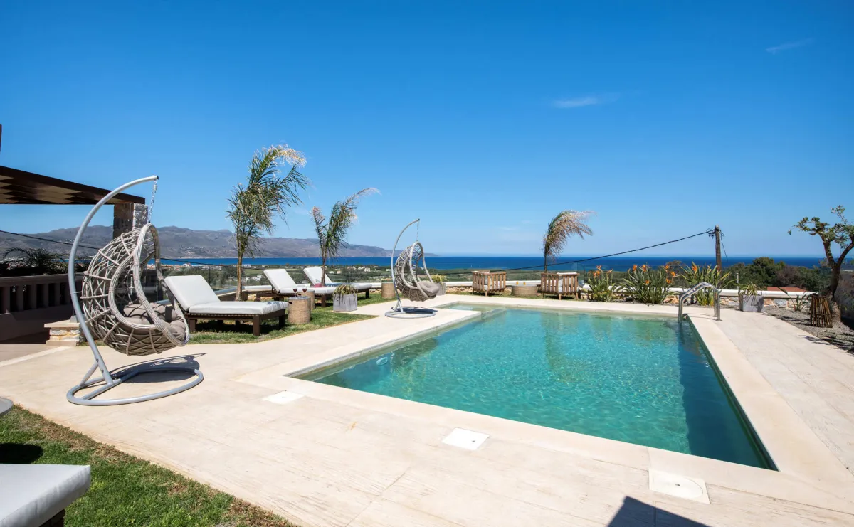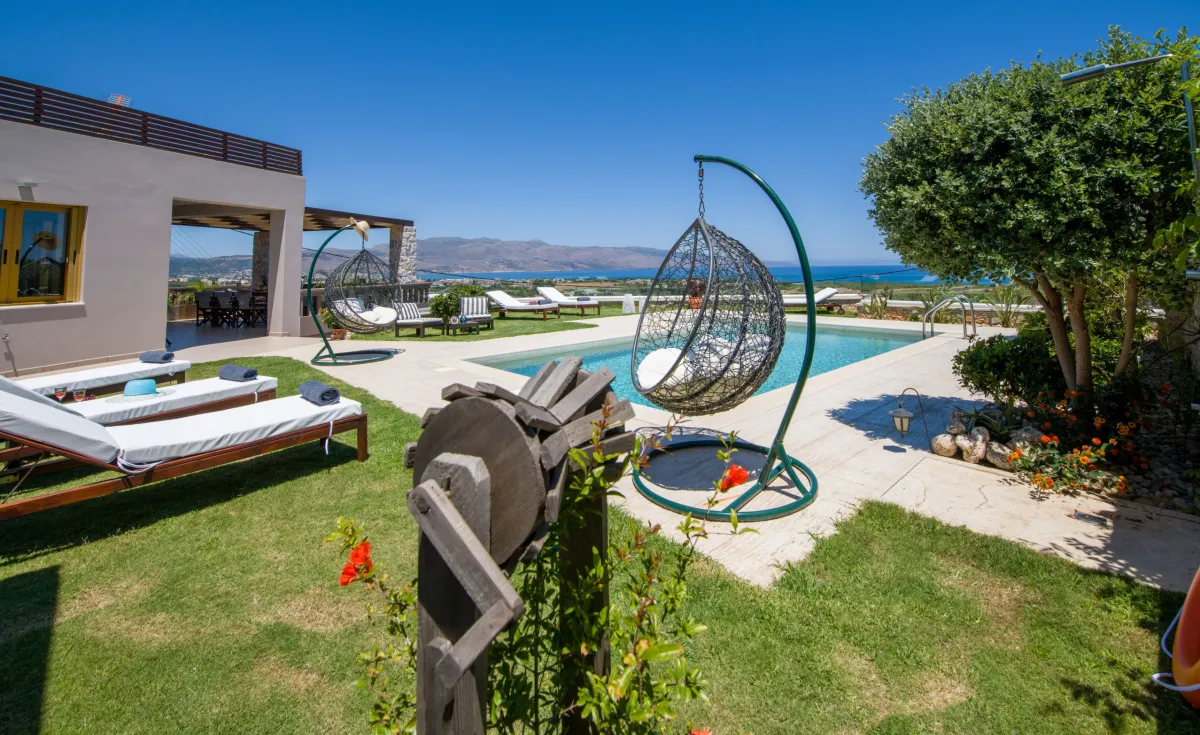 Enjoy every kind of comfort and privacy in this Cretan holiday maisonette, housed within the lush nature of the area of Maleme looking over a garden with a luminous swimming pool, where not only does it offer amazing views, but this villa also has quick access to the characterful city of Chania, famous beachfront resorts and the exotic beaches of western Crete Falassarna and Balos.