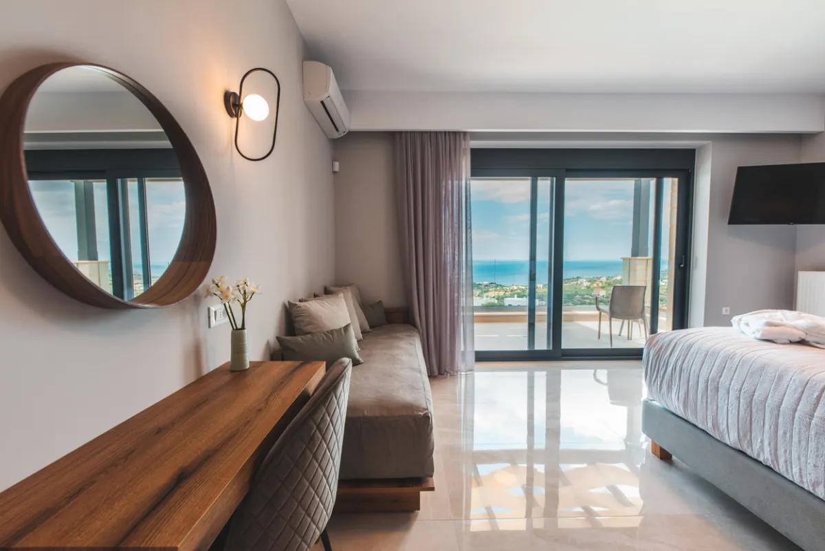 Villa Marevista is an exclusive private holiday rental, situated on the northwest coast of Crete, one of Greece’s trendiest resort islands. While this idyllic villa is near to a few splendid beaches, restaurants, and supermarkets, the luxurious Villa Marevista is also a great place to retreat to for a secluded, private vacation.