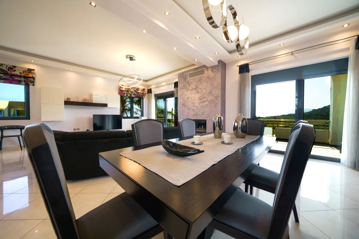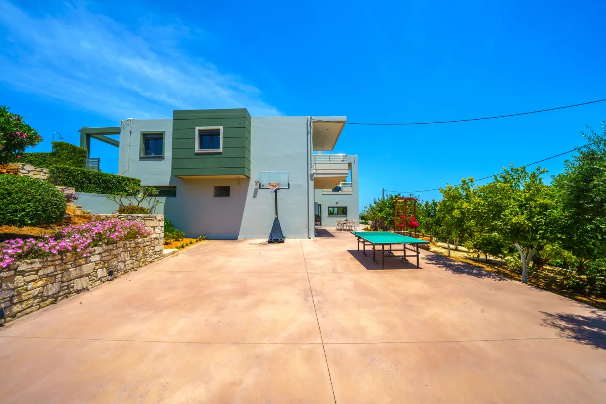 This was one of our favorite stays. The villa is amazing and has everything. The pool and outdoor space was great and we enjoyed an amazing 360 degree view along with a peaceful and quiet surrounding. Location is great and everything is nearby. The hosts are amazing and let us pick their fruits and sent us off with a nice Cretan bottle of Olive Oil.