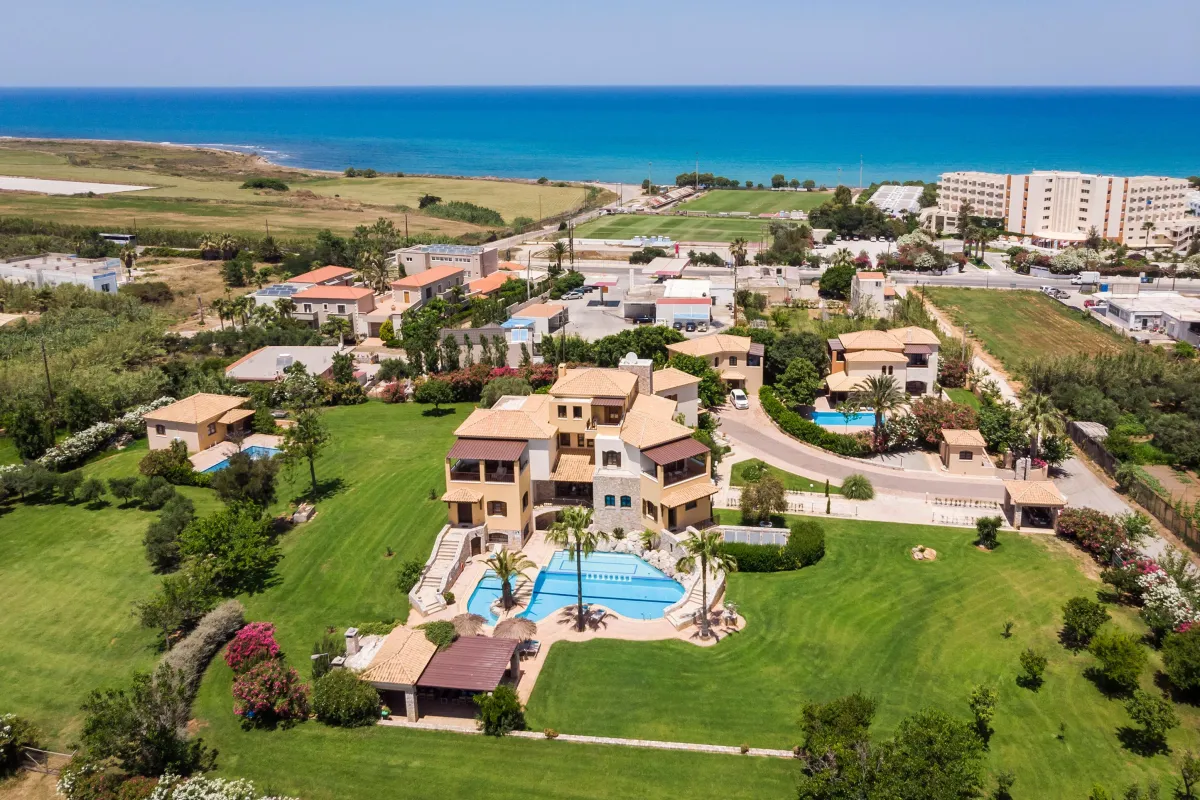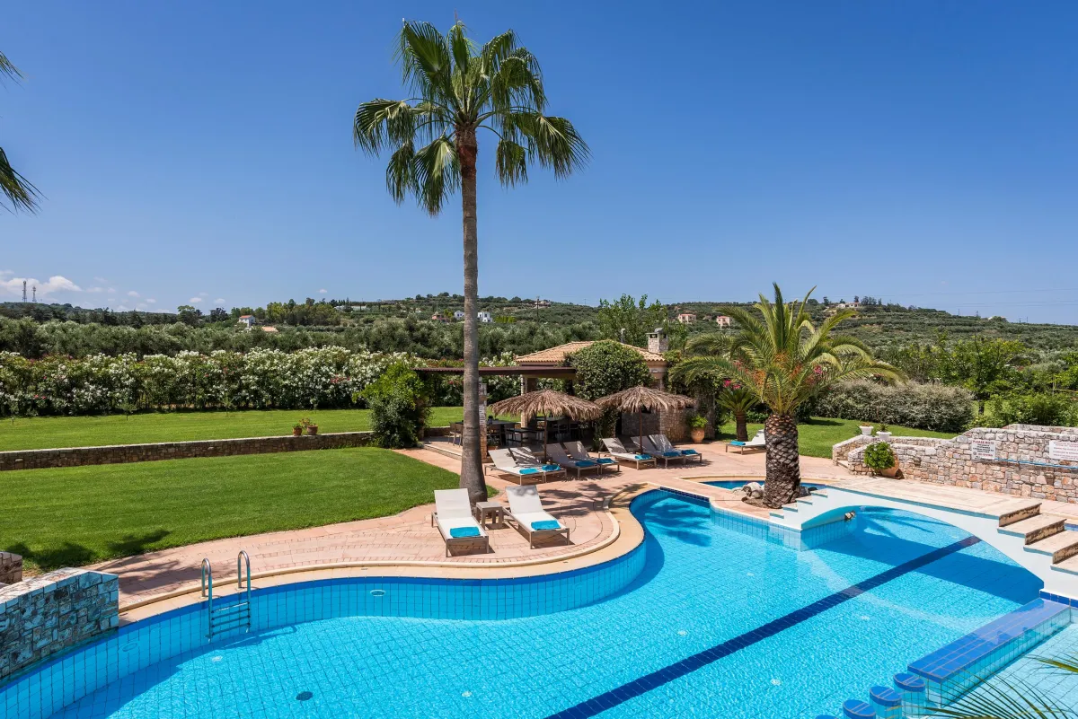 Nestled in a peaceful private grove, near to the golden sand beaches of Platanias and other significant natural beauties of western Crete, "Natali" villa is built in five semi-levels insuring infinite space for convenience and peace of mind. Surrounded by a 4000m2 of garden area with swimming pool, palm trees and shades, the villa aesthetic is a combination of modern serenity and welcome traditional sensation featuring antique furniture, rich colours and intimacy within the space.