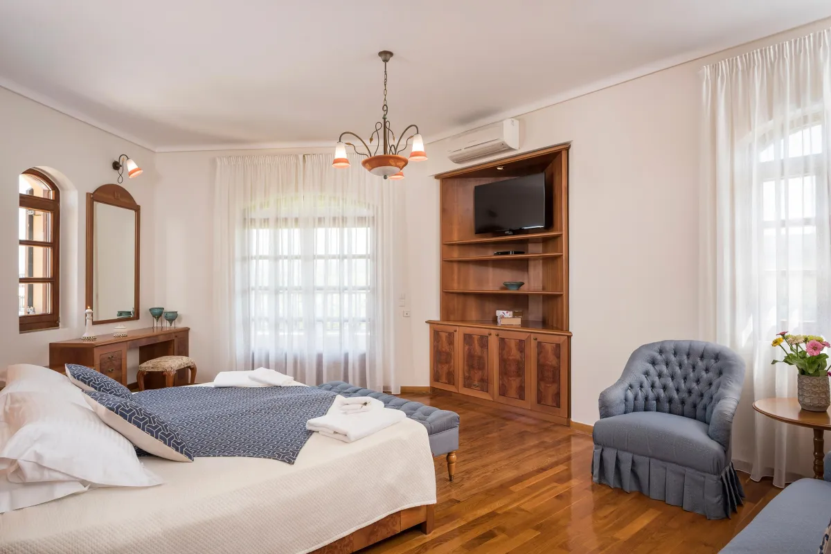 Rich in everything that you could ask for your relaxation, the service is a guarantee to cater your needs. it is ideal for large family or group of people as it hosts 9 bedrooms with parquet and 8 bathrooms, including extra beds when needed, in a space of 900m2. It is also suitable for physically challenged persons using a wheelchair. The huge indoor space as well as the lush garden area are perfect backdrop for exceptional celebrations, weddings and events.