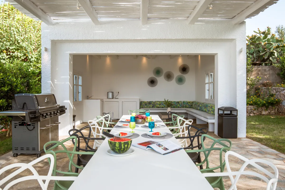 Outdoors, it is a true summer: the open-air setting features a sizeable swimming pool with salt water systems next to a BBQ and dining area shaded by a pergola. All around, there are gardens full of native trees and plants.
