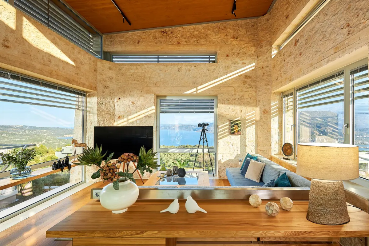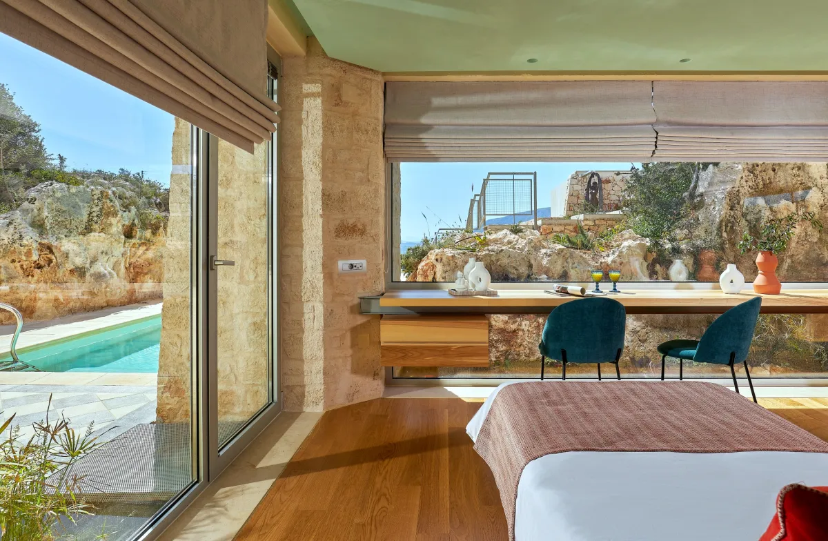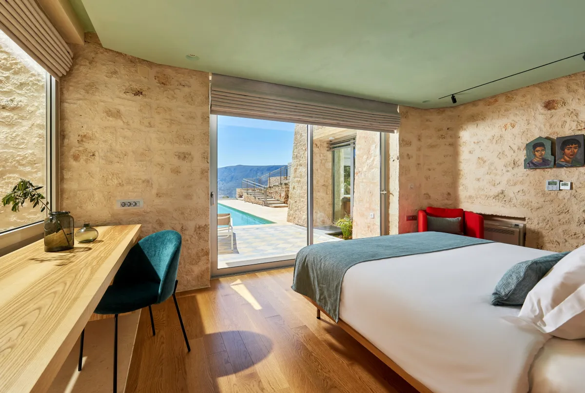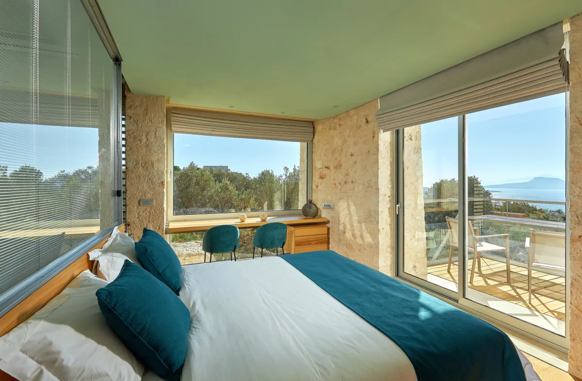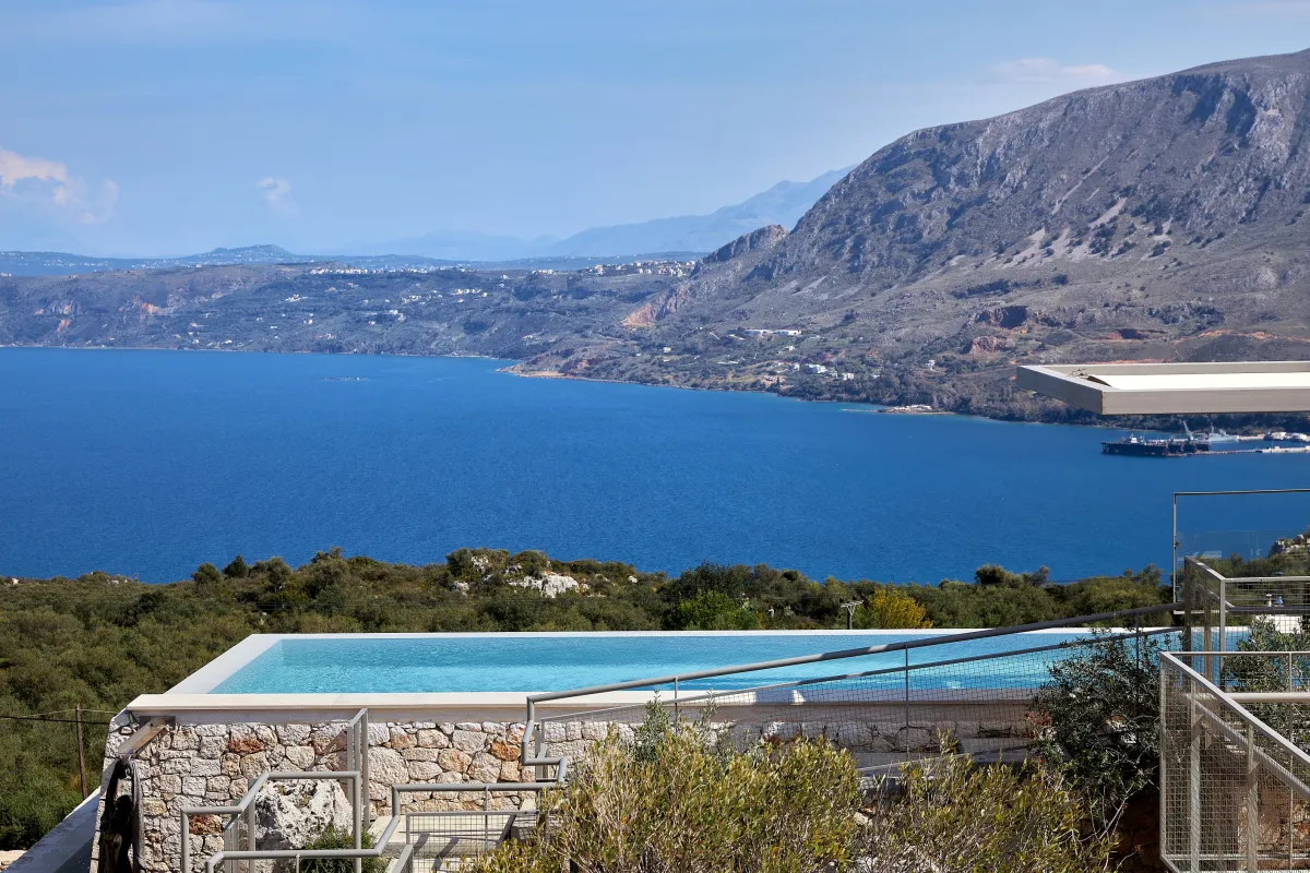 This Crete luxury villa complex is on the cliffs overlooking Souda Bay, between the Akrotiri peninsula and Cape Drapano. Its contemporary combination of stone, wood, glass, and metal creates a New York-Swedish charm, surrounded by a Cretan olive grove. Olives and Thyme Retreat can accommodate 12 guests in luxury and style.