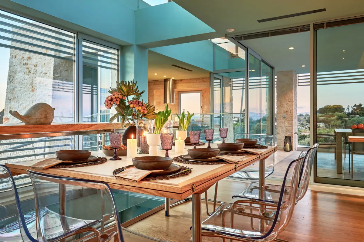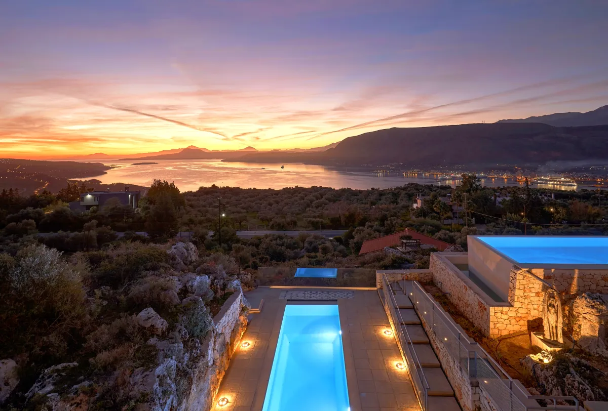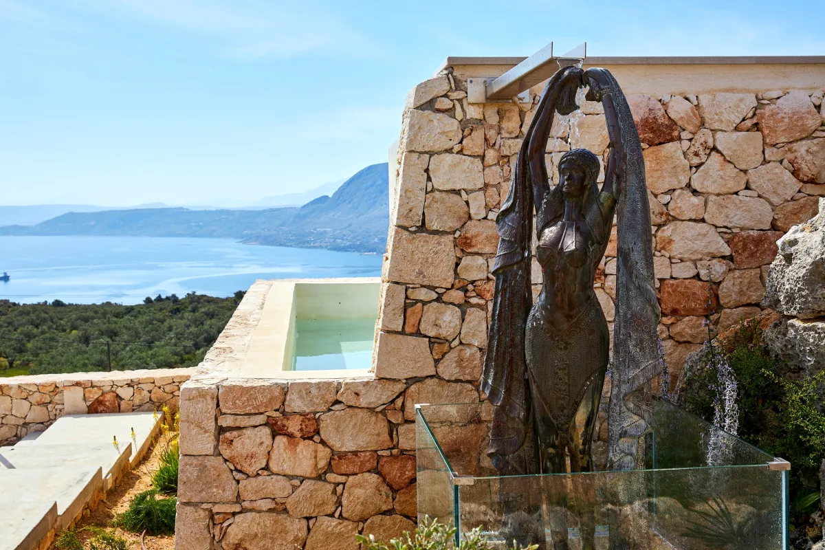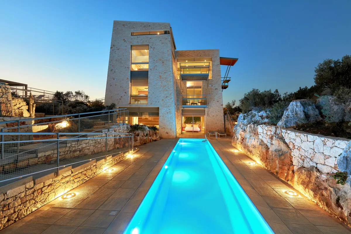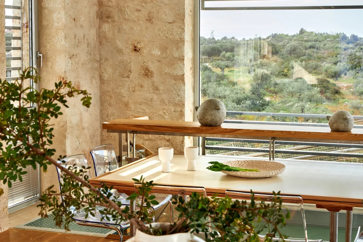 This Crete luxury villa complex is on the cliffs overlooking Souda Bay, between the Akrotiri peninsula and Cape Drapano. Its contemporary combination of stone, wood, glass, and metal creates a New York-Swedish charm, surrounded by a Cretan olive grove. Olives and Thyme Retreat can accommodate 12 guests in luxury and style.