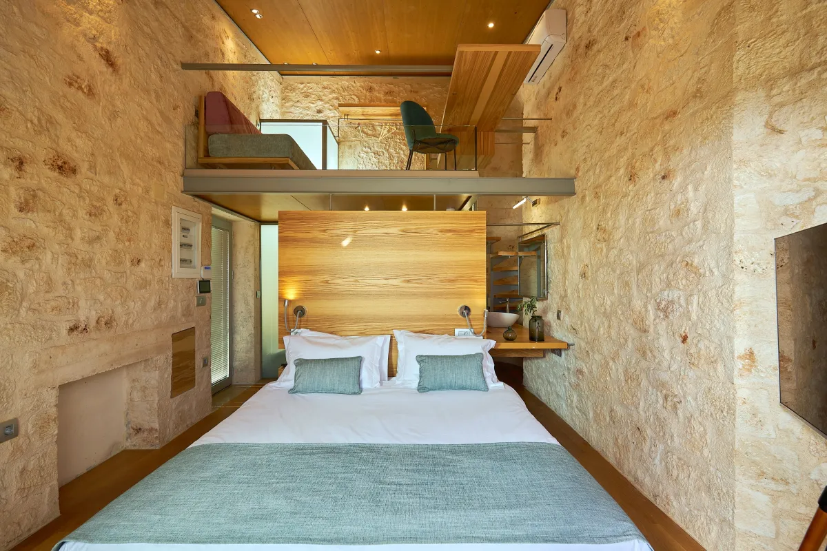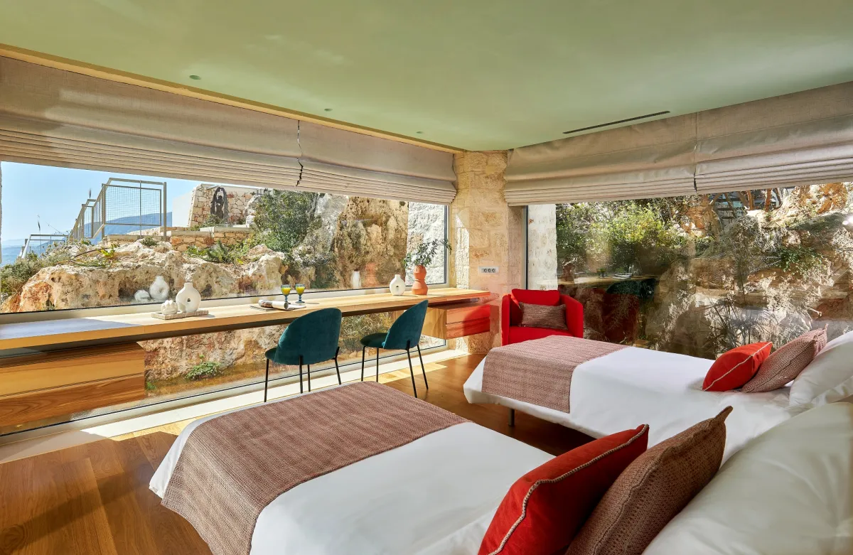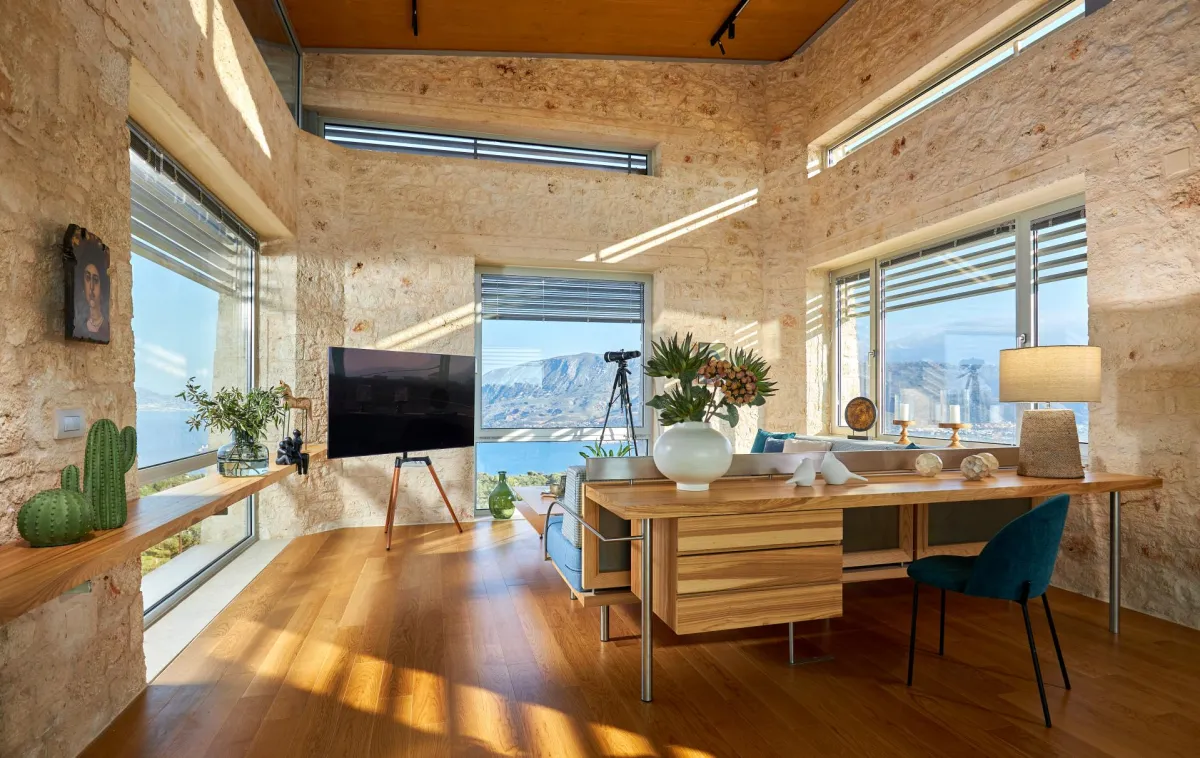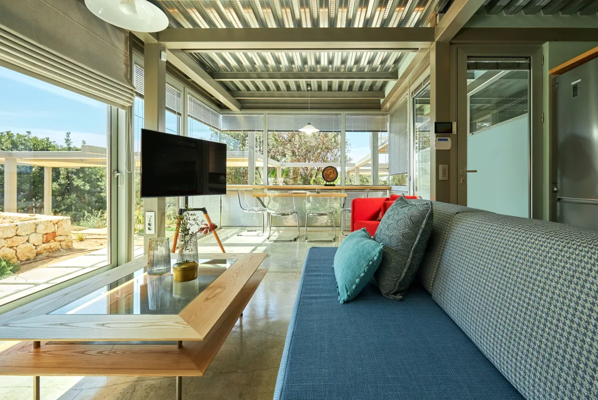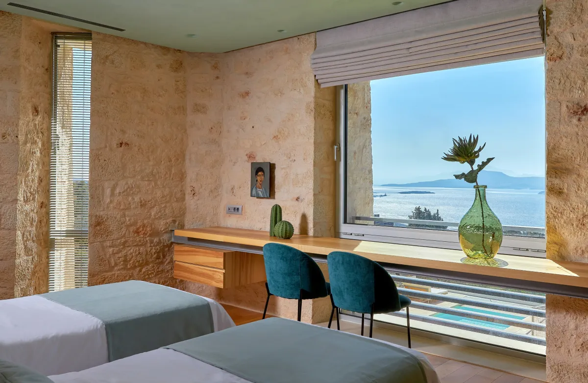 This Crete luxury villa complex is on the cliffs overlooking Souda Bay, between the Akrotiri peninsula and Cape Drapano. Its contemporary combination of stone, wood, glass, and metal creates a New York-Swedish charm, surrounded by a Cretan olive grove. Olives and Thyme Retreat can accommodate 12 guests in luxury and style.