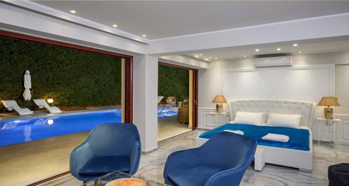 See herebeautiful villa in a quiet location, very well equiped, immaculately cleaned and the hosts could not do enough for us to make our stay perfect from when we arrived until we left. Whilst you need a car to get around and see things the local taxi our host recommended made it so easy to go to shops or into Chania which is a beautiful town, as a group of 10 this was so important. Would strongly reco... more