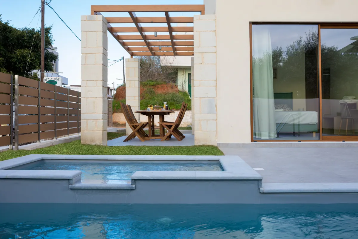 Built to a very high standard, and generally very well equipped. The sunbeds would benefit from cushions, as would outside chairs. Pool is only a plunge pool, but this was as described. On the plus side off road parking is included.