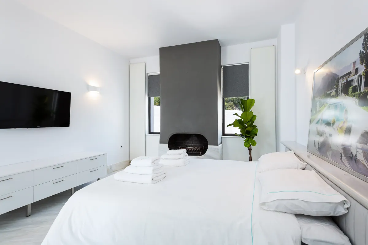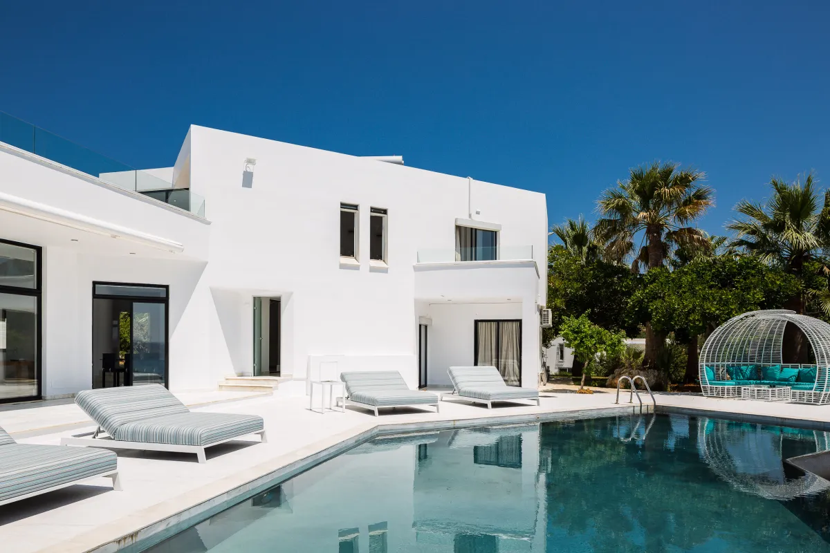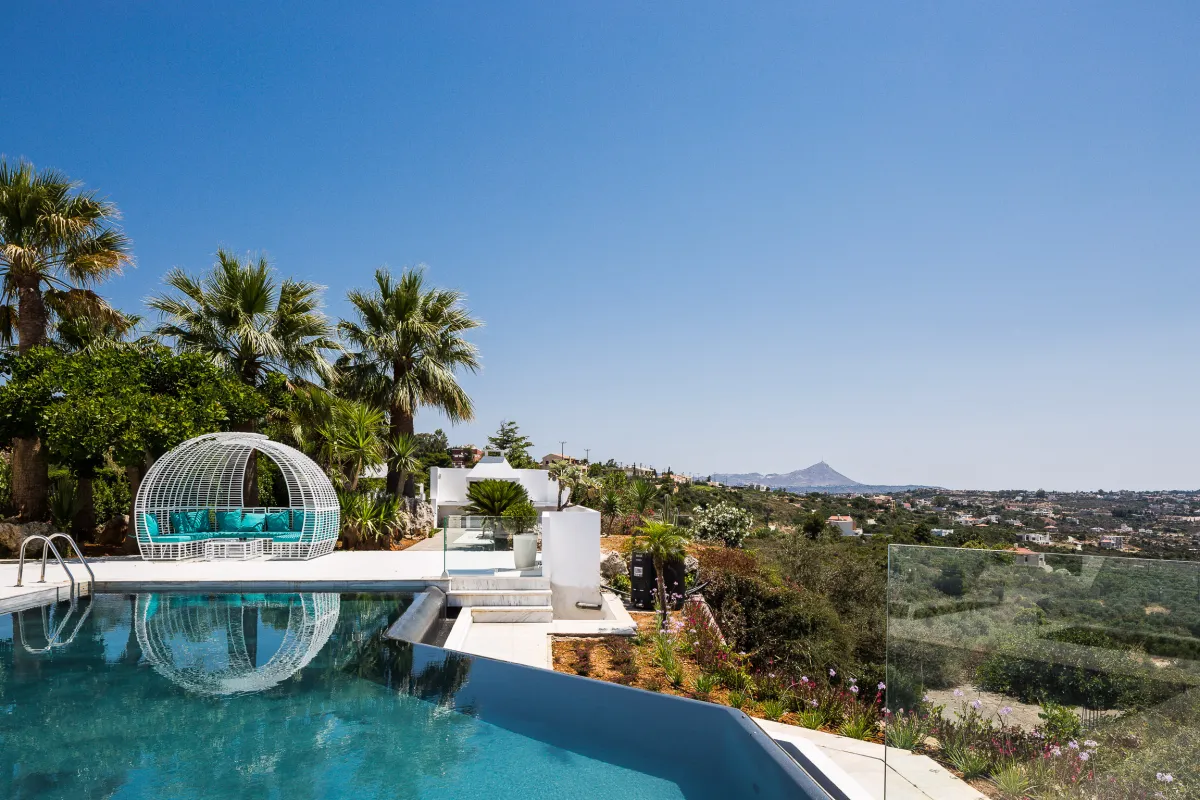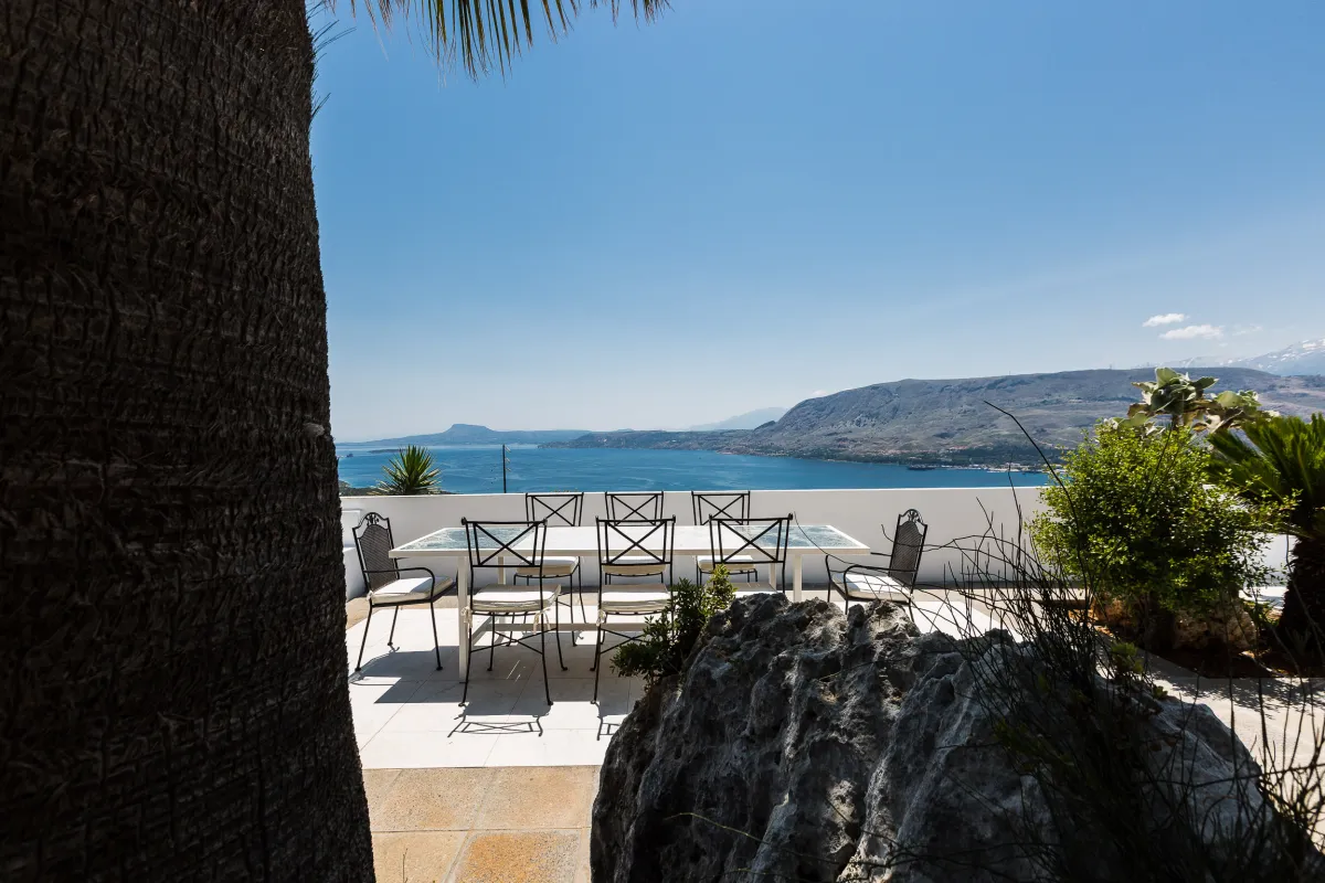 Paul's Mansion has five bedrooms all with king size beds and their own bathrooms paired to the style of each bedroom, while the master bedroom is an exemplar of its kind with a big bathroom, a walk in closet and access to a balcony with a Jacuzzi. The fresh white palette interior reflects neutrality and subtle sophistication, while the total layout of the mansion makes for an easy family holiday with children of all ages. An infinity pool, a Jacuzzi and a terrace of sun-worship bring the style and comfort on the outdoor living space where you can admire the panorama of the entire Souda Bay, inspiring both relaxation and excitement. Enjoy the loungers and al fresco dining or pour yourself a cool cocktail and relish the Cretan breezy summer evenings that feel like a celebration. Amid the striking combination of sea and mountain backdrops in western Crete, this villa will give you the best luxury vacation experience or fairytale venues, offering amazing photography options for your portraits and group shots, with the wonderful backdrop of the proud White Mountains, so that all the elements of the contradictory sceneries of the resort island of Crete can be enjoyed in sheer luxury.