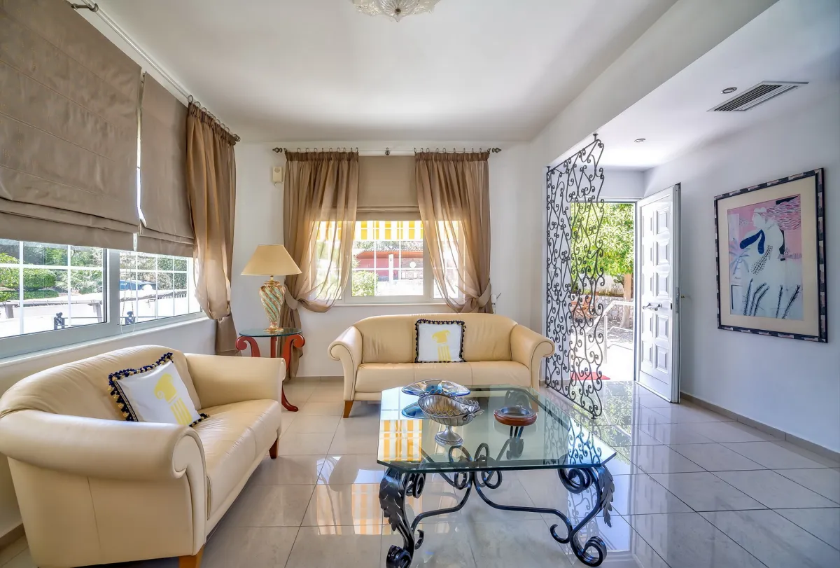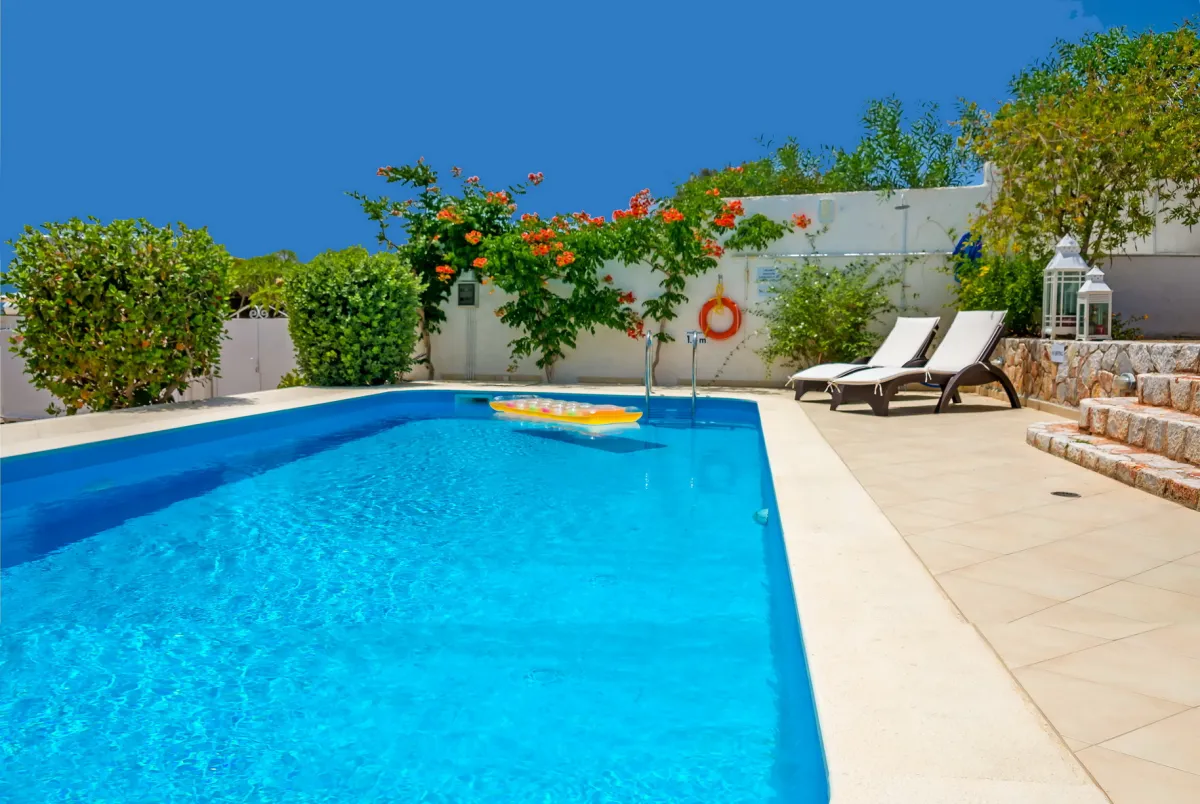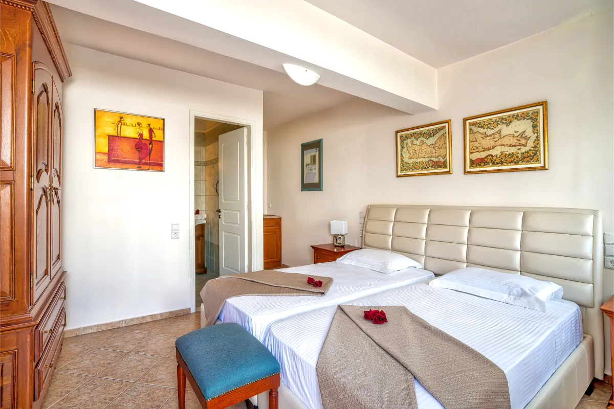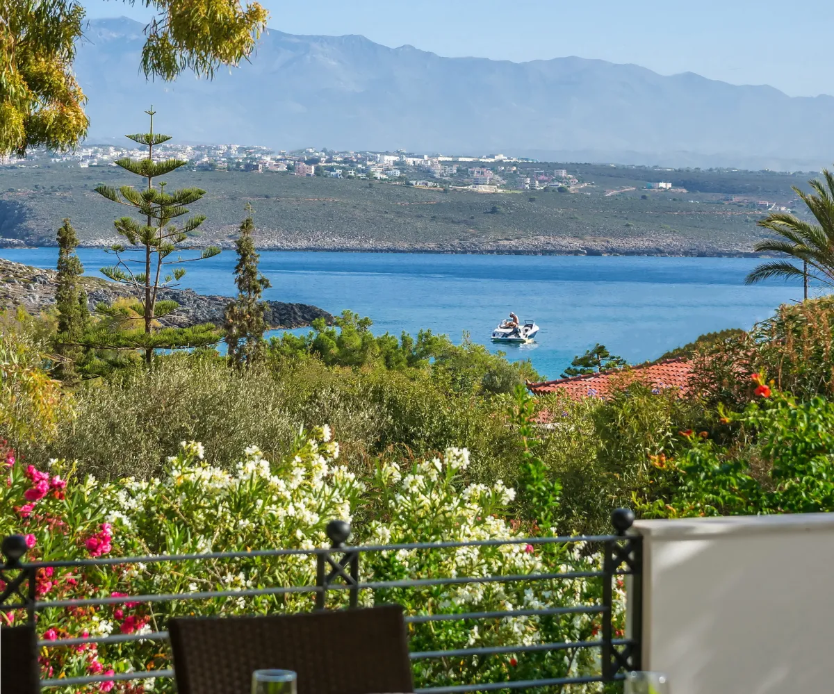 Plumeria Flower Villa is a beautiful vacation villa located just a few meters from the sea, with direct access to the small sandy beach of Tersanas, on Akrotiri Cape and very close to shops, taverns and Chania airport. This comfort private house near Chania offers unique accommodation either for couples seeking privacy, for a family holiday or for a group of friends. The house has been completely reformed in a chic luxury design using a comfortable style of furnishings and decoration. It consists of a beautiful living area with an open sea-view on most of its perimeter; Four bedrooms on separate levels of Plumeria Flower Villa are elegantly decorated with attention to detail, ready to accommodate in comfort up to 8 guests. The living and dining area feature classic furniture and a fireplace, as well as a very well equipped kitchen. There is a marble floor throughout the house that enhances the rooms to stand out as distinct and unique. There is also a gym as well as massage treatments, at an additional cost. A big terrace is combined to the impressive swimming pool (separate kids pool) inside a large beautiful, fragrant, colorful garden (separate kids playground) with incredible view to the mountain and the sea, offers a pleasant and relaxing flow of indoor and outdoor living with privacy and tranquility. All this and you can walk to the beach of Tersanas, known for its calm waters and brilliant sunsets. It’s time to take advantage of all this beauty of Plumeria Flower Villa and treat yourself to a real holiday in Crete!