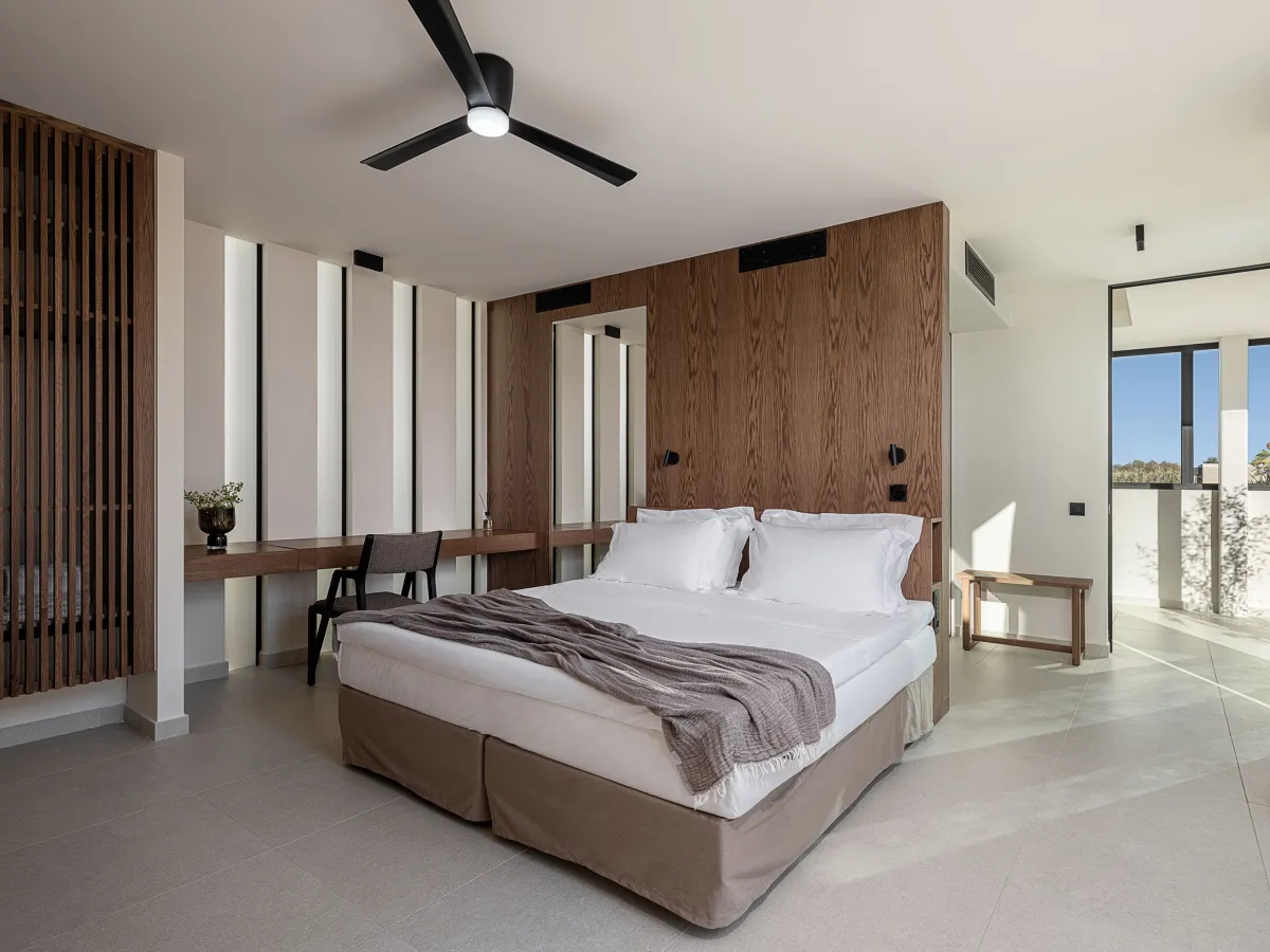 Villa Pnoe Alas offers three beautifully designed bedrooms, each with a queen-size bed, air conditioning, a safe, and hotel-quality linens. The first-floor master suite enjoys a private en-suite bathroom and raised views, with space for a baby cot if travelling with young children. One of the bedrooms features a wheelchair user-friendly en-suite bathroom, providing enhanced accessibility without compromising on style. The two ground-floor bedrooms also feature satellite TVs and access to a communal balcony with refreshing outdoor vistas. Each room includes a dressing table that doubles as a convenient workspace, and both ground-floor bedrooms offer an extra armchair bed suitable for an additional guest. Premium bathroom amenities, such as shampoo, conditioner, bathrobes, pool towels, and hairdryers, are provided for every guest.
