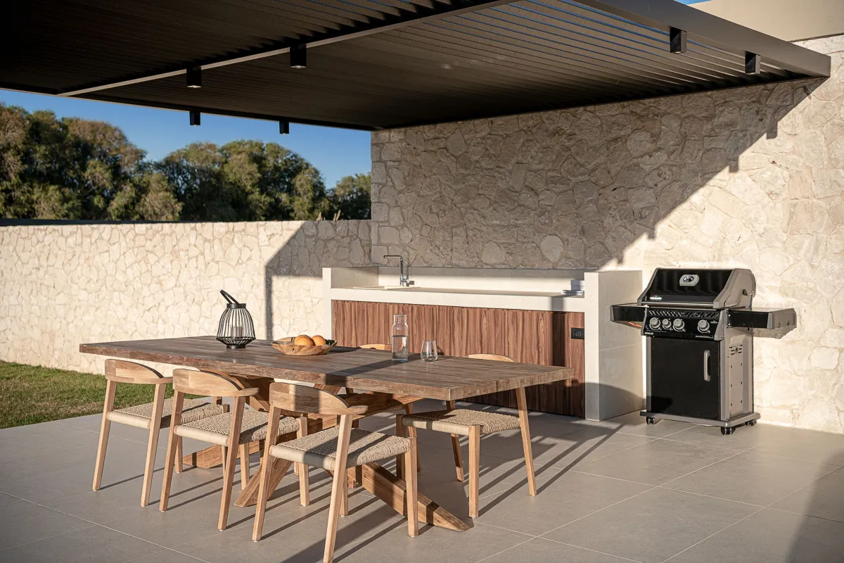 Step outside to discover a stylish seafront oasis. The villa features a stunning 19 m x 4 m heated private pool (with a shallow children’s section), surrounded by six sunbeds and two umbrellas for leisurely afternoons in the sun. A built-in BBQ, gas grill, and outdoor dining table make al fresco meals effortless, while the outdoor seating areas invite guests to watch the sunset over the water. An outdoor shower adds convenience after a swim, and secure private parking for up to three cars (with one additional roadside space) means stress-free arrivals no matter the time of day (or night).