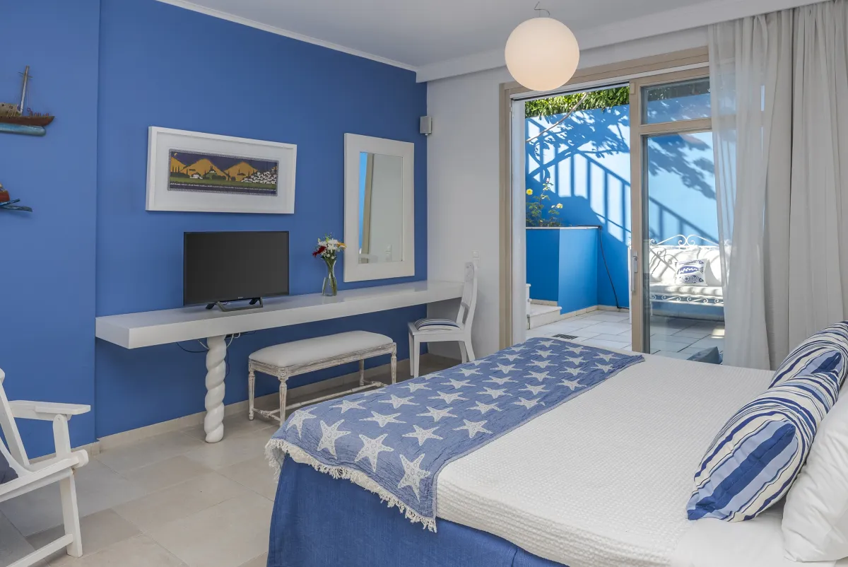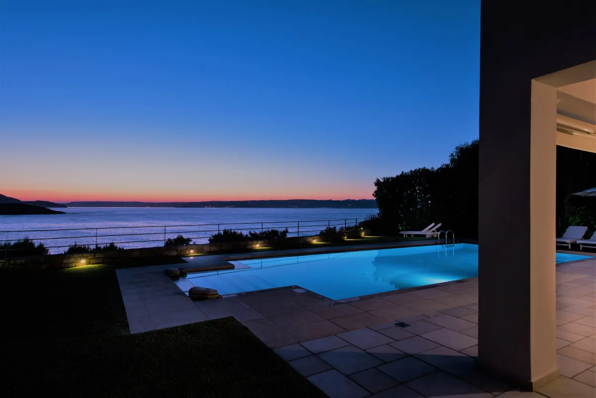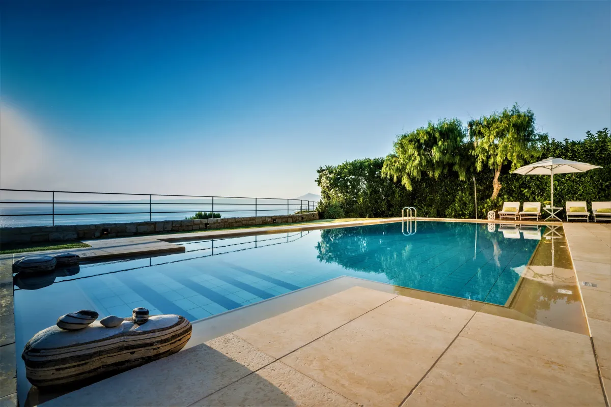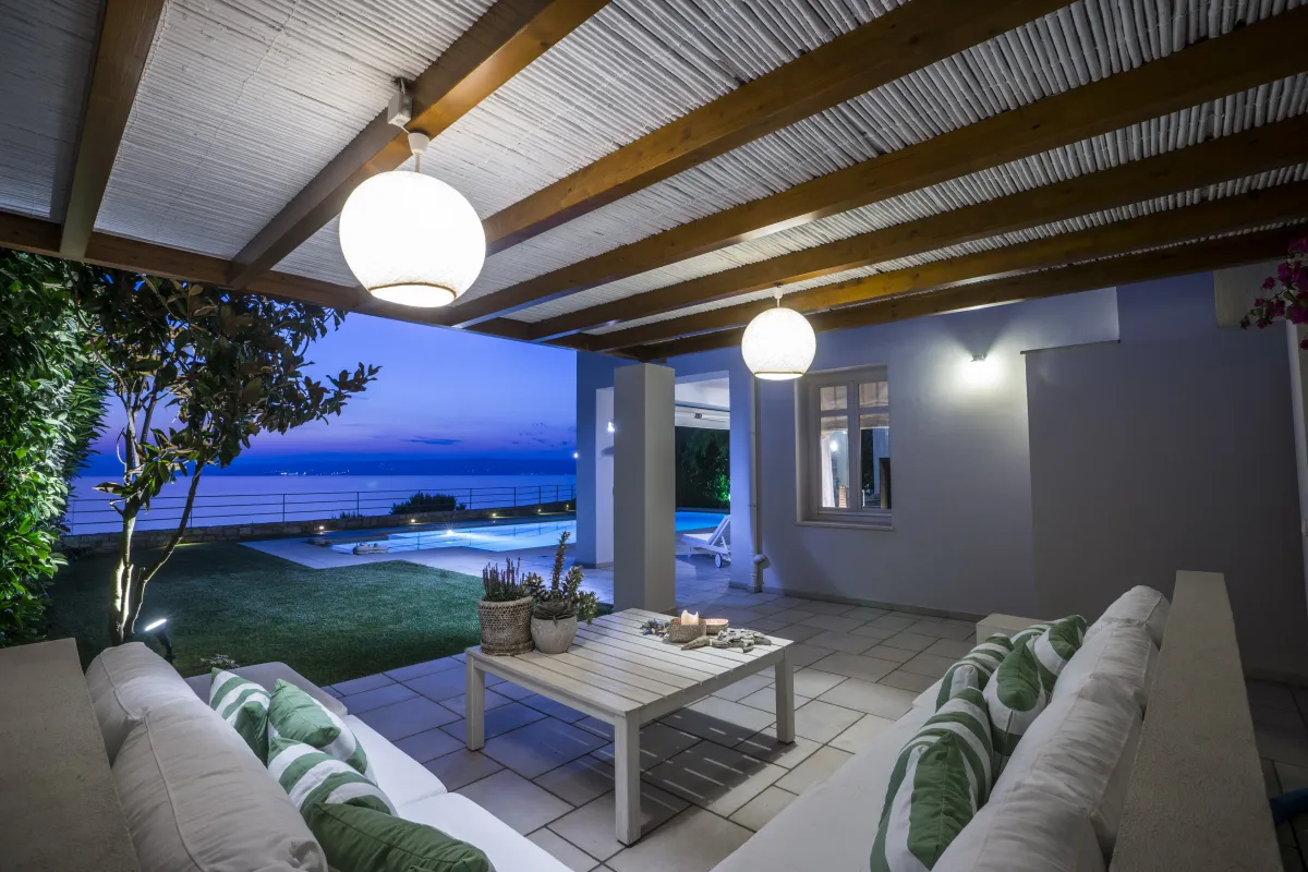 Guests will delight in the majesty of their surroundings at the luxurious Ammos Villa holiday accommodation. The private villa offers an expansive outdoor terrace including a large, heated swimming pool and comfy seating. There is a dining table and chairs for outdoor dining and a fully equipped charcoal barbeque. There is also private parking and 24-hour security on the premises.