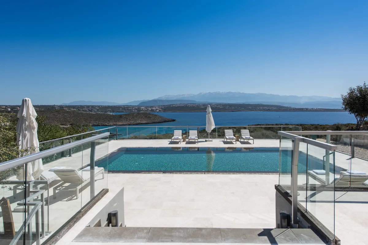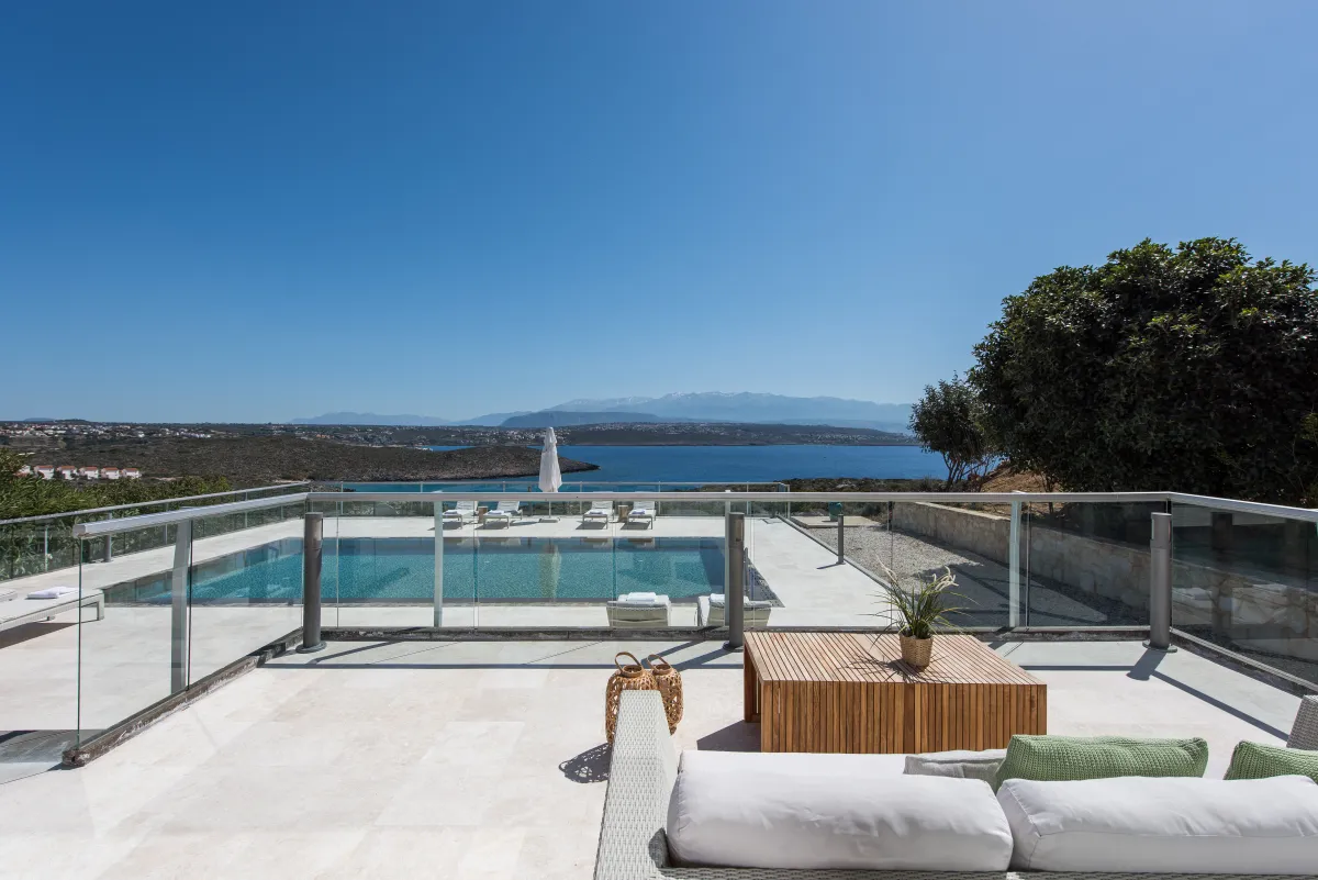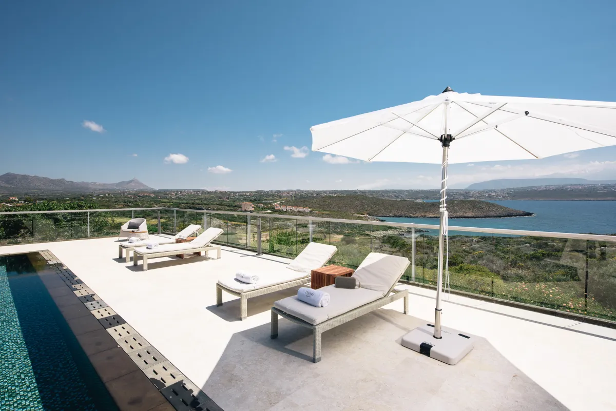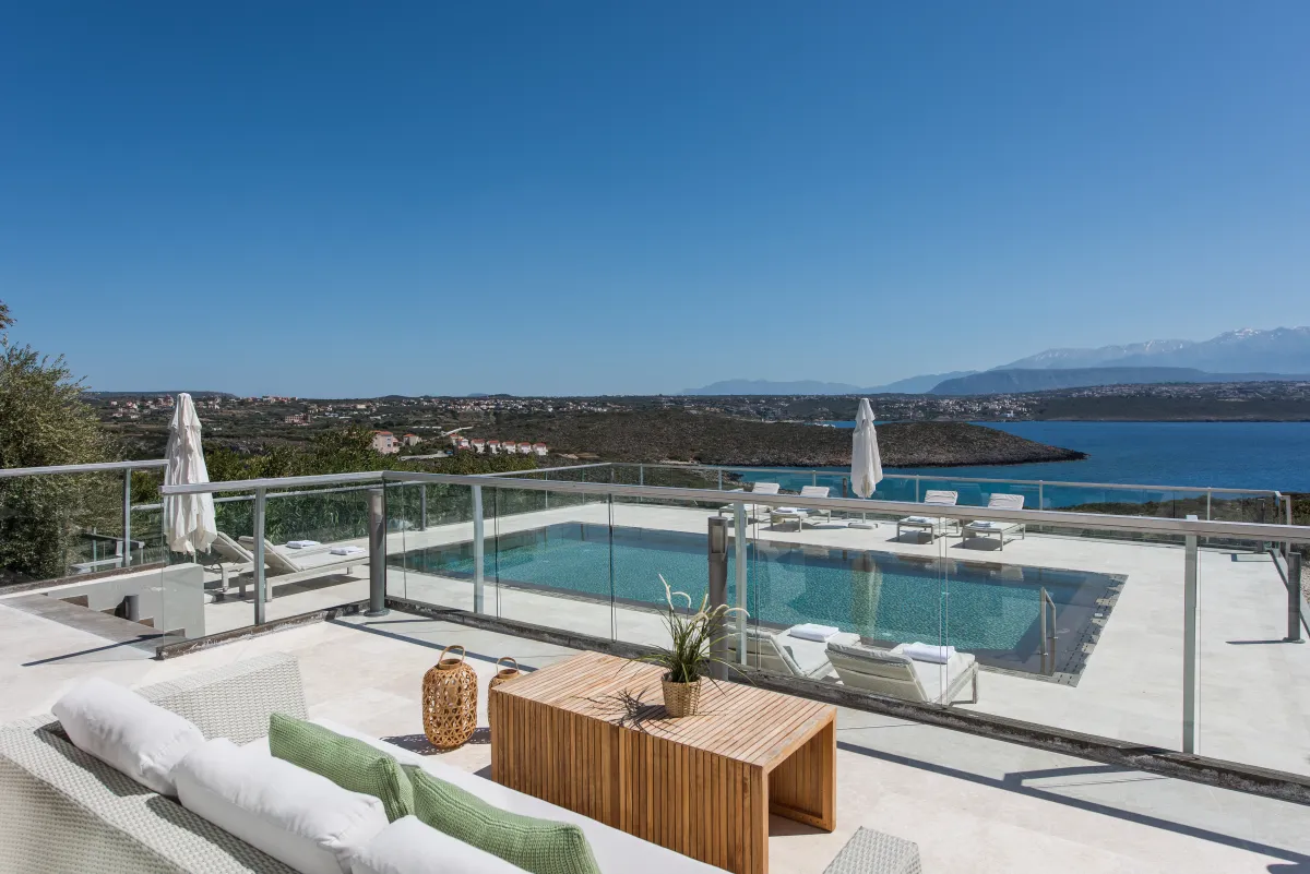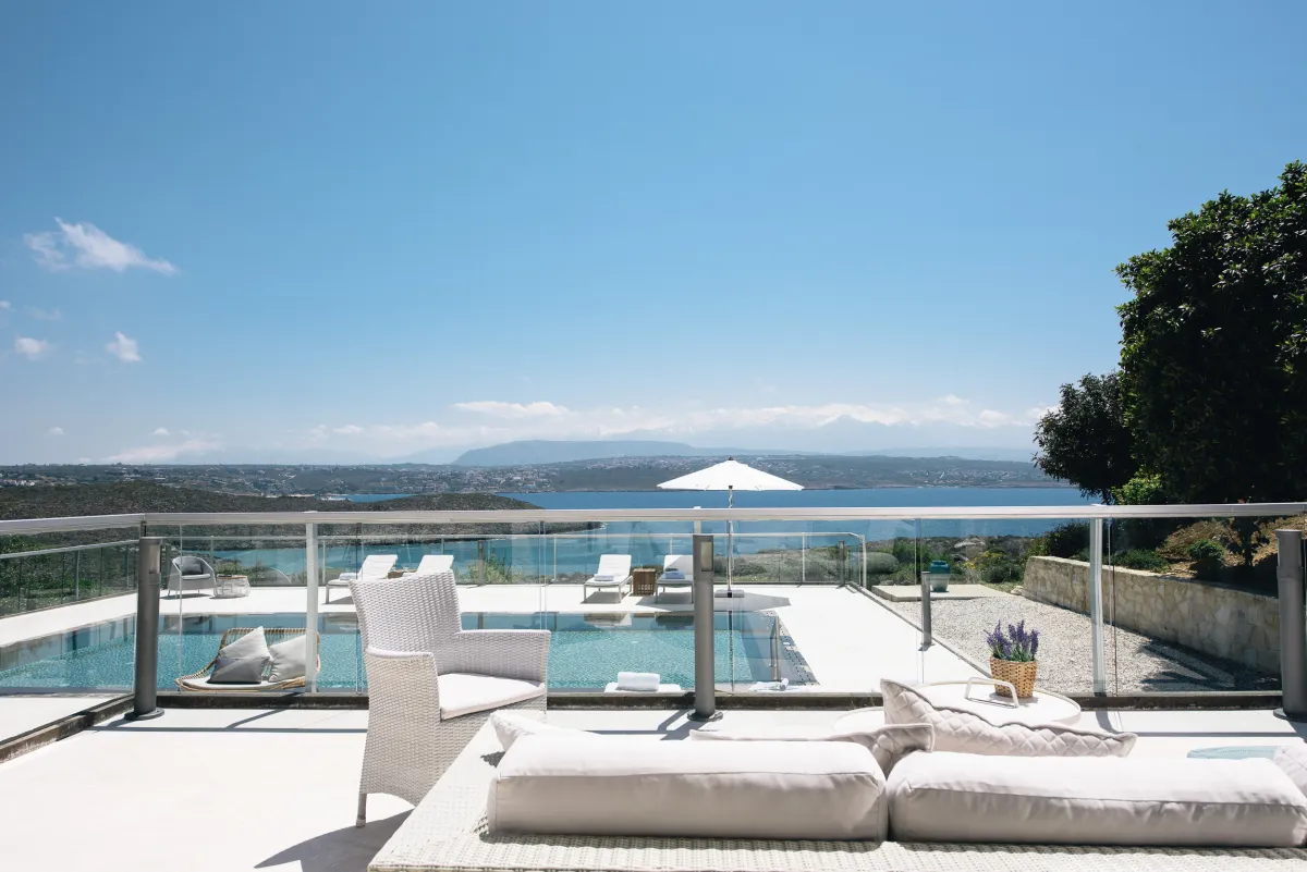 The Sea Crete Villas form a luxury villa complex in Crete, Greece. Formerly known as Divine Villas, these Crete vacation villas are on the Akrotiri Peninsula in the popular resort area of Chania, in the seaside village of Kalathas. The property is secluded and peaceful, making it the ideal location for a relaxing holiday with family and friends. Seafront 2 is the most isolated of the 4 villas, ensuring peace and quiet for weary holidaymakers.