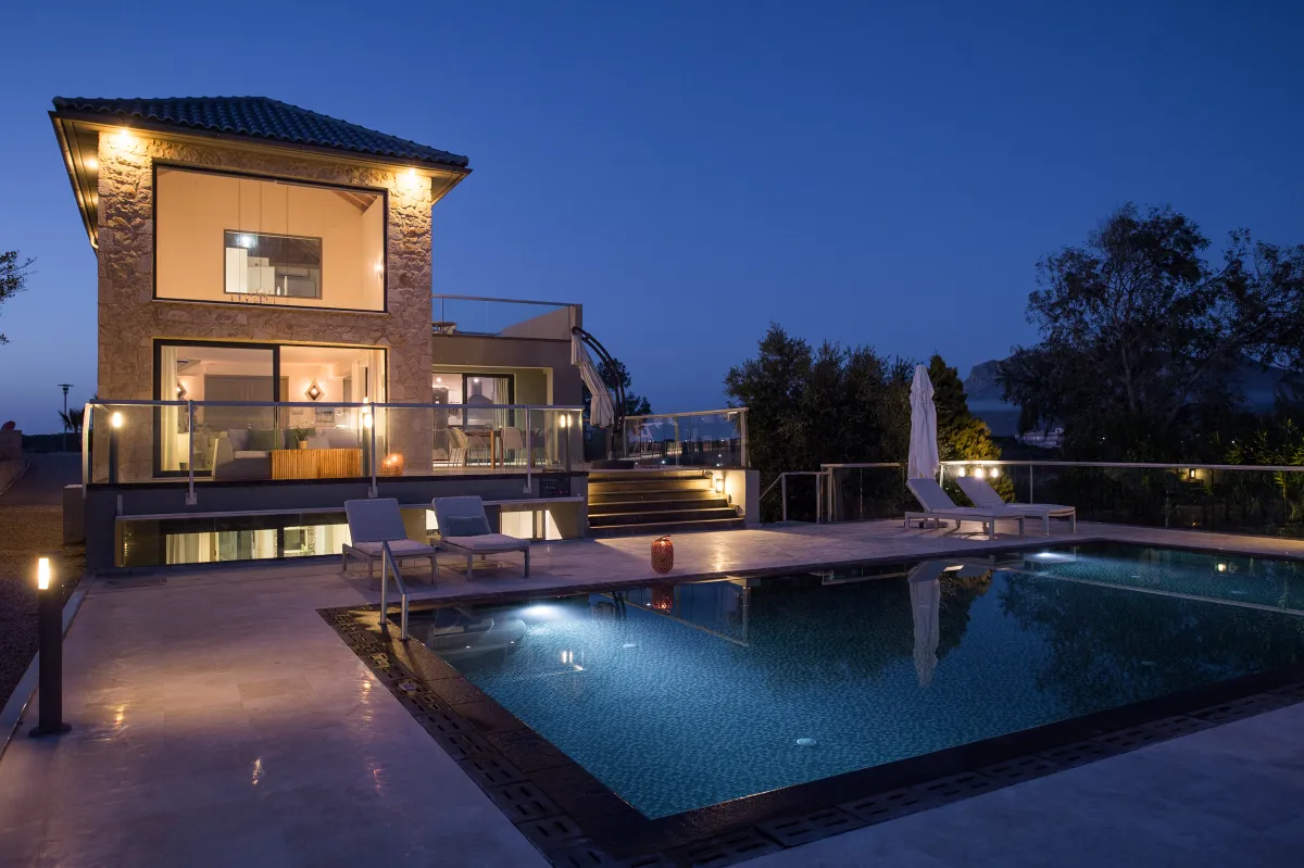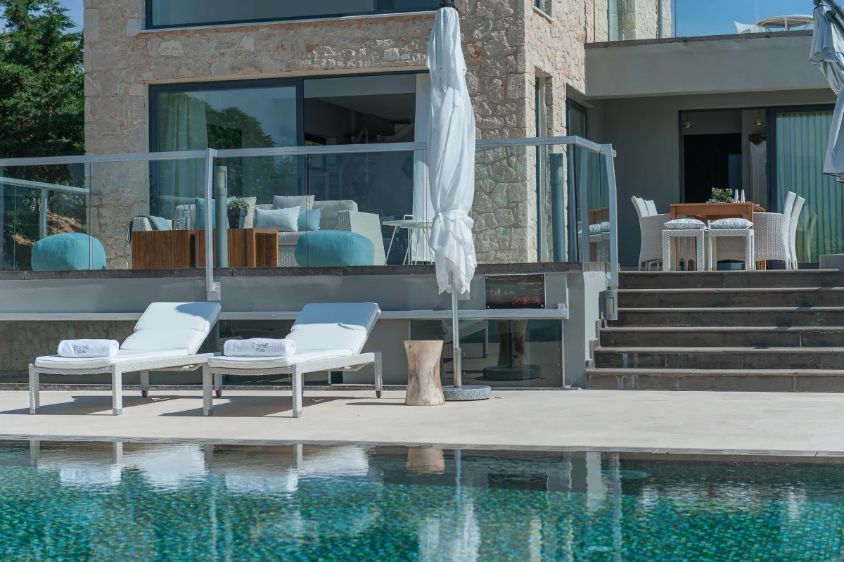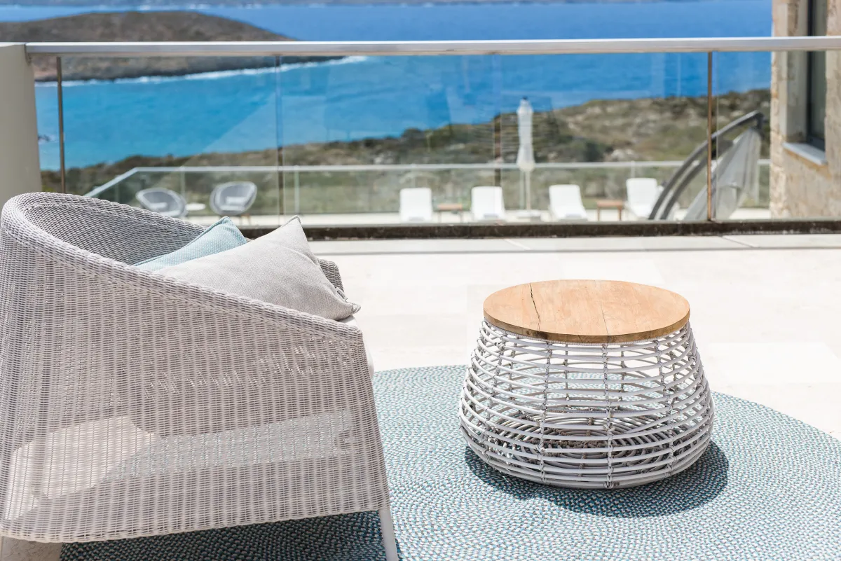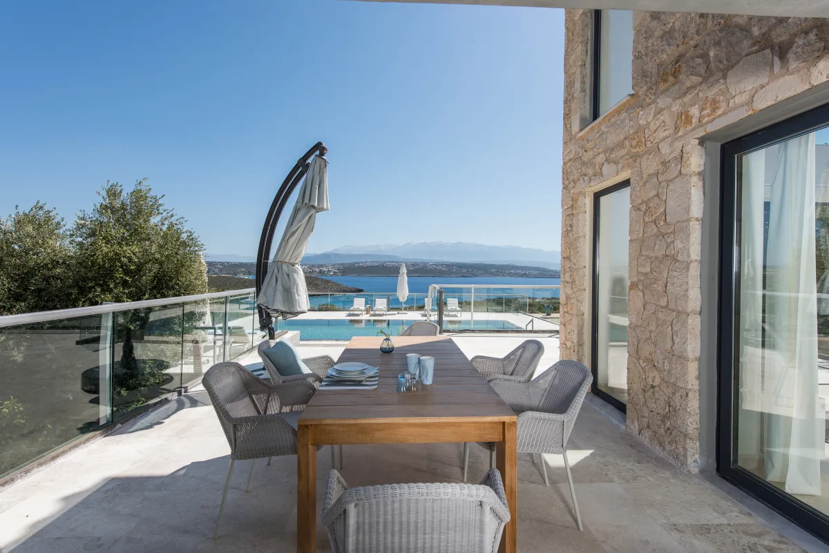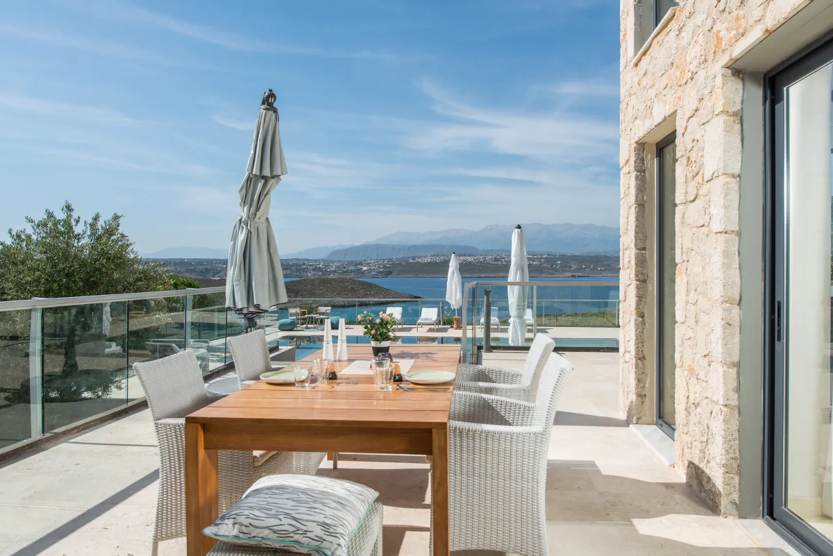 The Sea Crete Villas form a luxury villa complex in Crete, Greece. Formerly known as Divine Villas, these Crete vacation villas are on the Akrotiri Peninsula in the popular resort area of Chania, in the seaside village of Kalathas. The property is secluded and peaceful, making it the ideal location for a relaxing holiday with family and friends. Seafront 2 is the most isolated of the 4 villas, ensuring peace and quiet for weary holidaymakers.