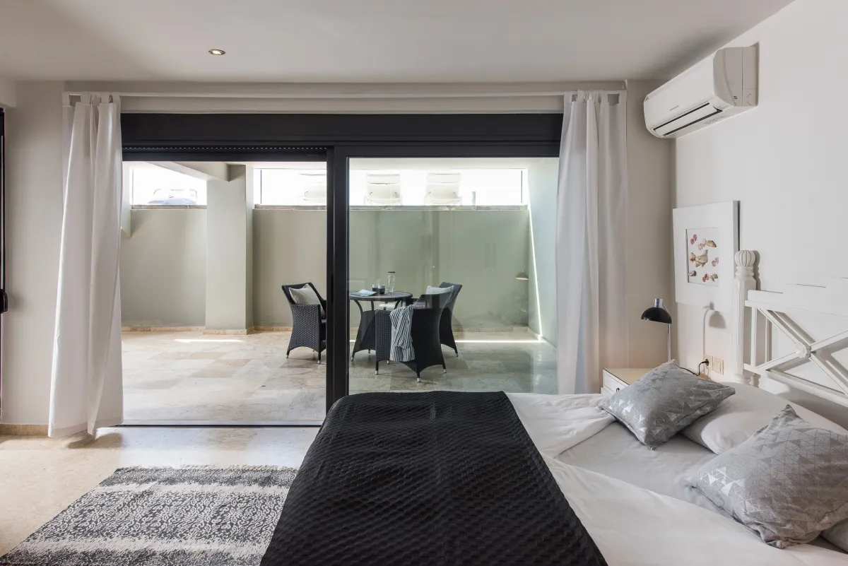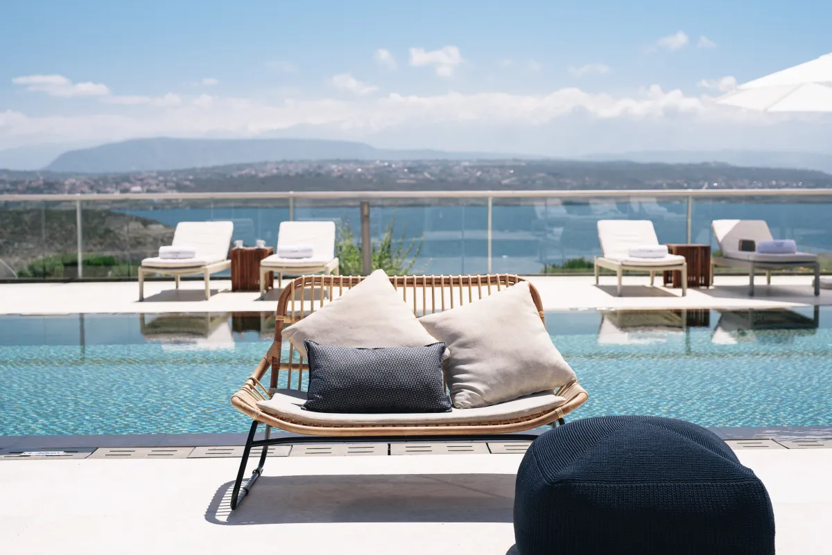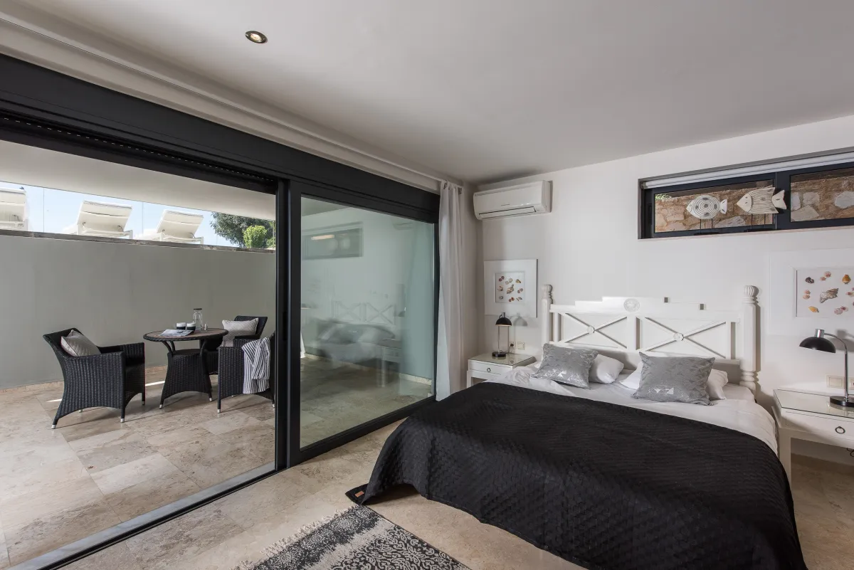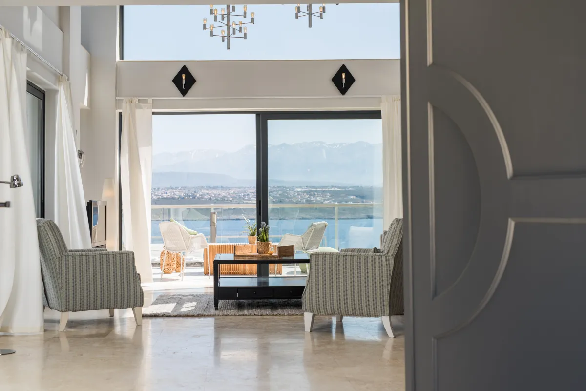 The Sea Crete Villas complex is on the resort island of Crete, in Kalathas, near Chania. The sophisticated vacation accommodation is close to various trendy beaches, restaurants, and shops, but Seafront 2 is also the ultimate retreat for a secluded luxury holiday.