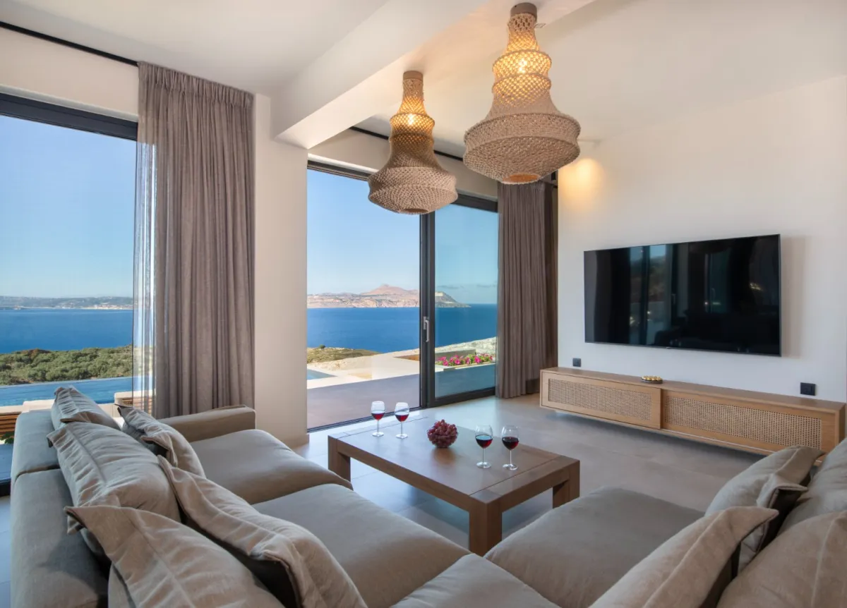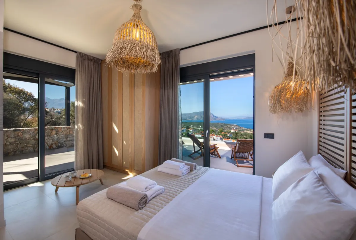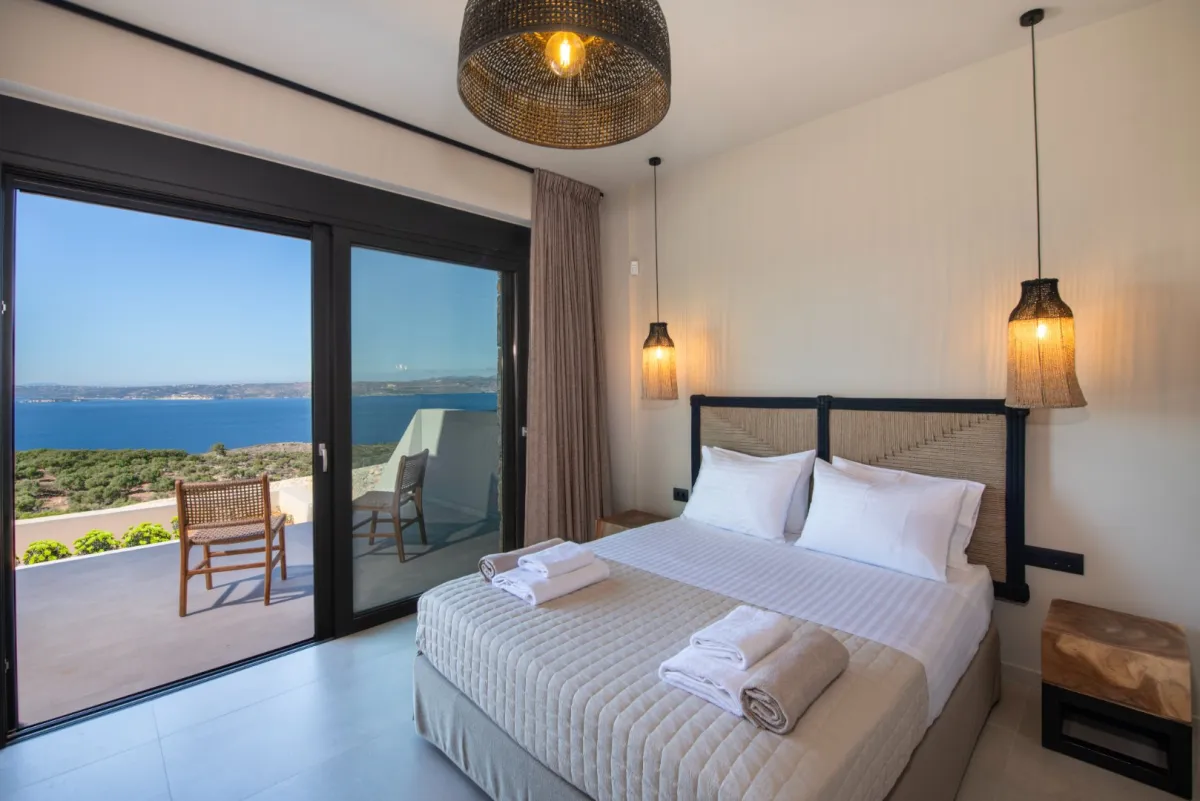 Each bedroom is designed for comfort with quality beds, air conditioning, and blackout curtains for restful nights. Guests can enjoy private terraces with seating, offering panoramic sea views.