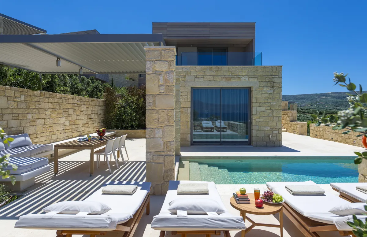 The Youphoria Villa Oneiro is situated above the quaint Cretan village of Agios Georgios in Chania, a fashionable holiday destination in Greece. The stylish villa is near to a few magnificent beaches, restaurants, and shops. The luxurious Villa Oneiro is also a lovely place to peacefully unwind on a restful, private vacation.
