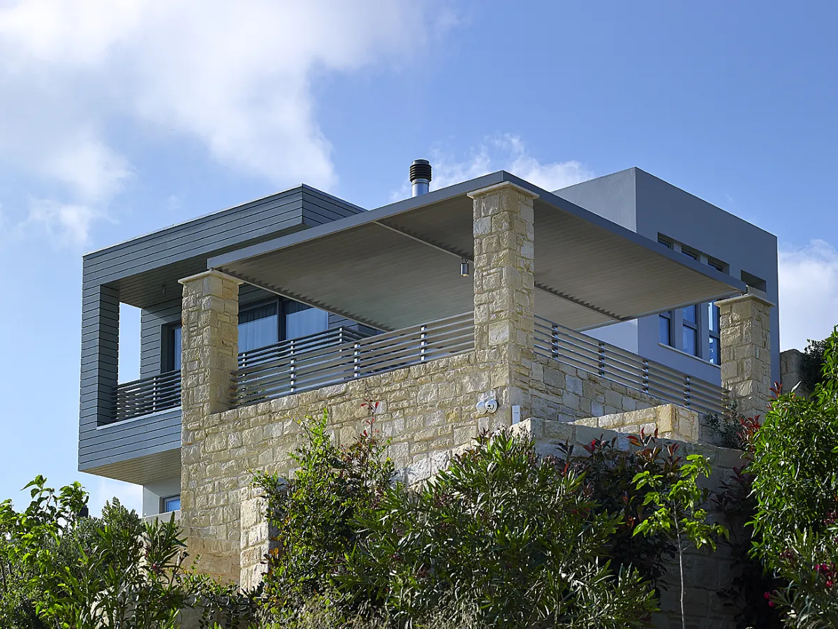 The beautiful Villa Symphony in Chania can accommodate up to 5 people and is the perfect destination for a relaxing, carefree and luxurious vacation in Greece. The luxury villa's secluded location guarantees privacy, but there are various vacation attractions close to the rental property. The private luxury villa offers a tasteful, elegantly furnished living space with ample seating for guests. Amenities include a flat-screen TV, DVD player, stereo, satellite TV, free Wi-Fi, telephone and adjustable air conditioning to ensure a comfortable stay. The Symphony Villa is equipped with an elegant and modern kitchen with all the necessary appliances. A full laundry room is also available on site. The villa offers daily housekeeping (except Sunday) with bed linen and towels changed twice a week. There is also an elegant open plan dining room with ample seating for guests. The luxury villa has 1 master bedroom and 1 guest bedroom, each with en-suite bathroom and king-size beds that can be separated. There is a sofa bed in the living room if needed. The rooms have a private balcony, air conditioning and a safe that guests of the villa can use. Slippers, bathrobes and toiletries are provided. The immaculate outdoor area is home to an infinity pool overlooking the Gramvousa and Spatha peninsulas. Set in a tranquil garden, there is an outdoor entertainment area with barbecue and dining area, as well as casual seating. There is parking space for 2 cars at the Holiday Villa Symphony.